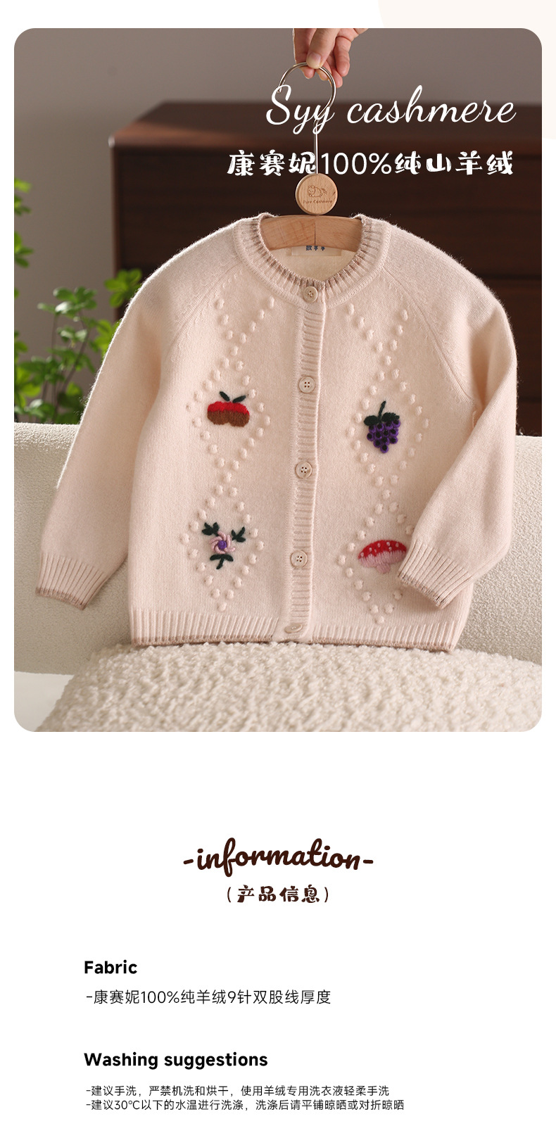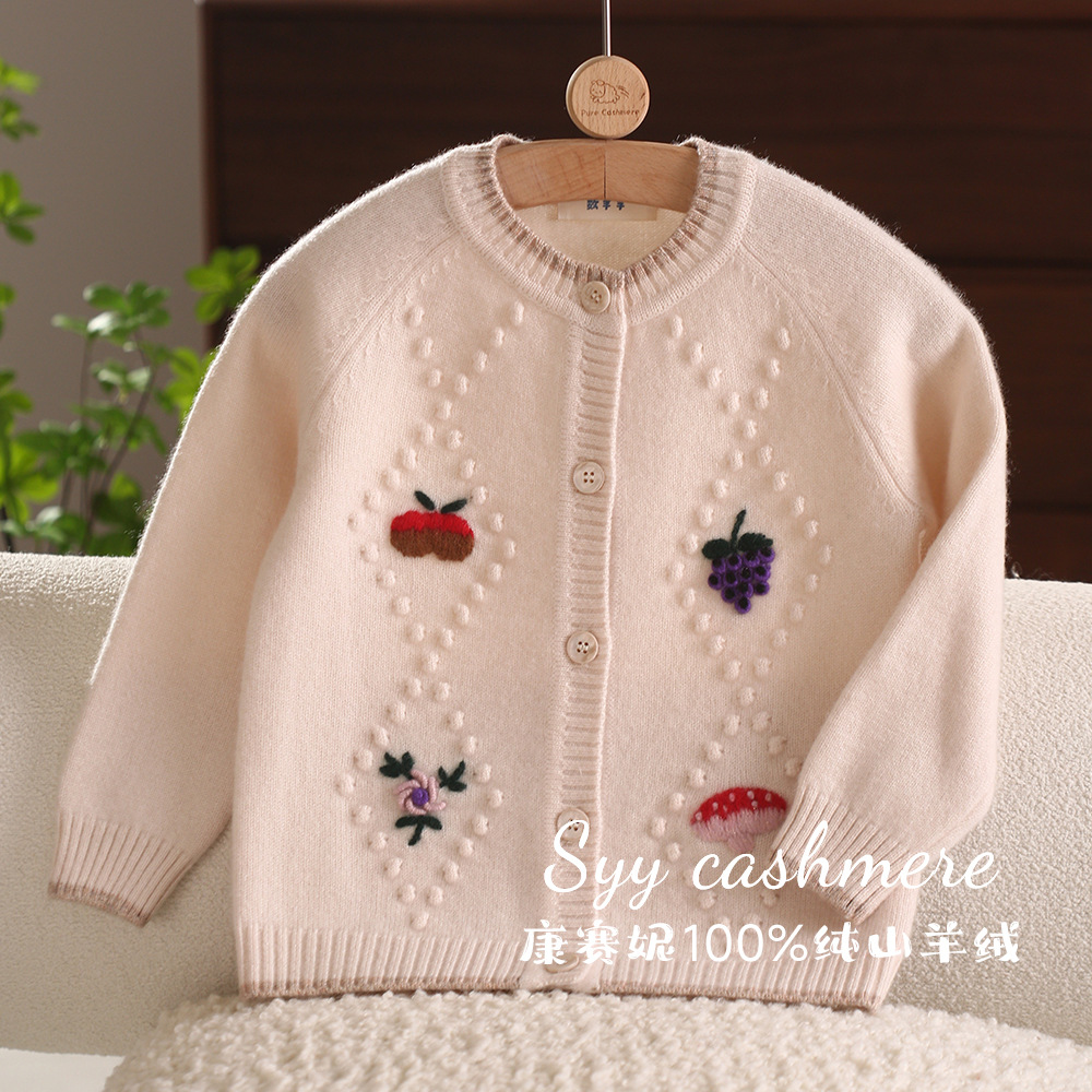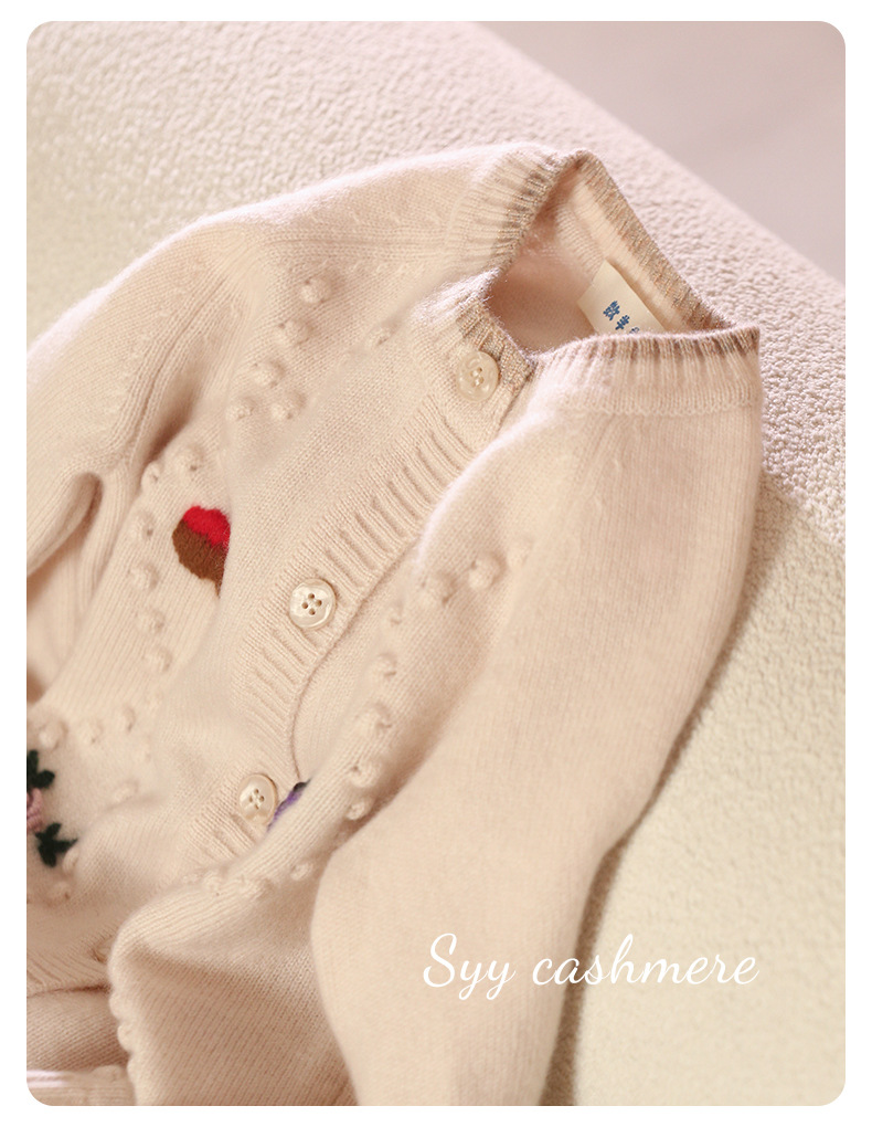 양과 양의 수 Consaini 100 순수 캐시미어 소녀 아기 달콤한 자수 스웨터 카디건
