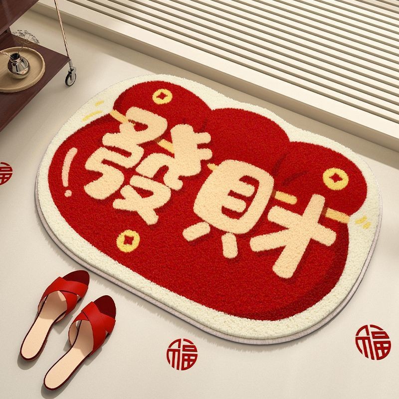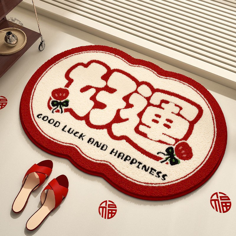 새 빨간 새해 모조 캐시미어 바닥 매트 흡수성 먼지 방지 발 매트 모양의 침실 거실 카펫 입장 문 발 매트