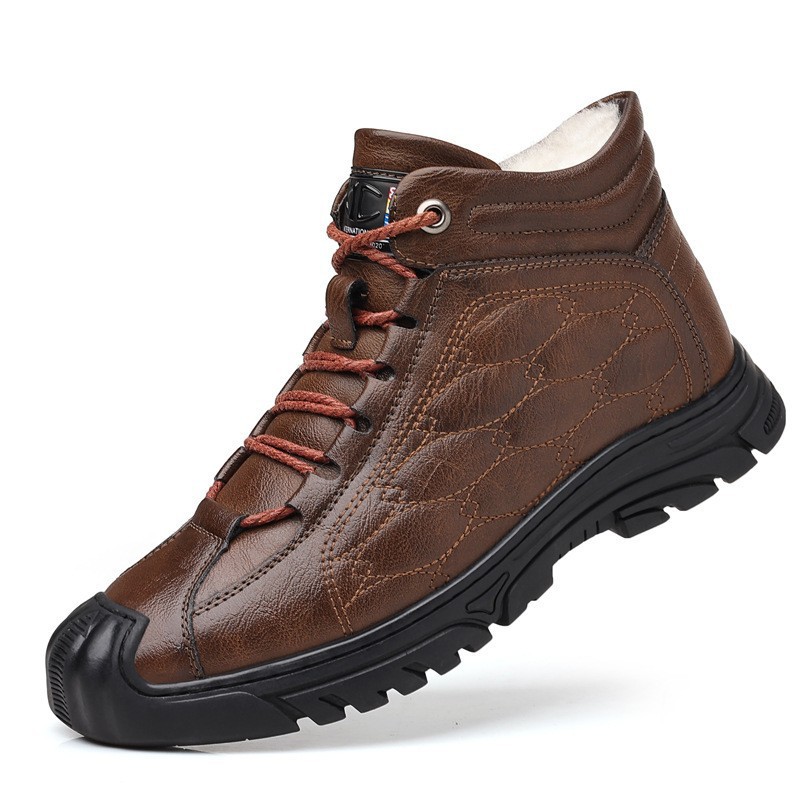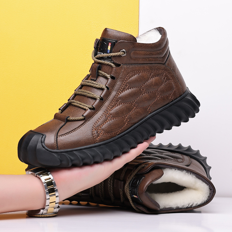 면화 남성 겨울 기모 따뜻한 캐주얼 가죽 신발 남성 야외 등산 스노우 부츠 미끄럼 방지 아빠 신발 남성 2027