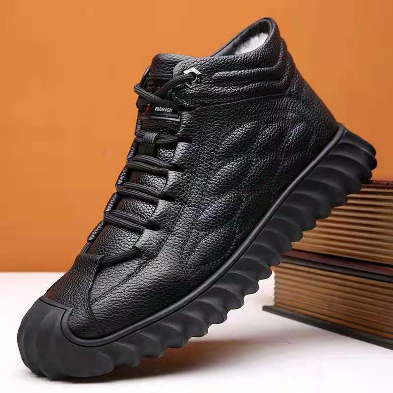 면화 남성 겨울 기모 따뜻한 캐주얼 가죽 신발 남성 야외 등산 스노우 부츠 미끄럼 방지 아빠 신발 남성 2027스토어 가기