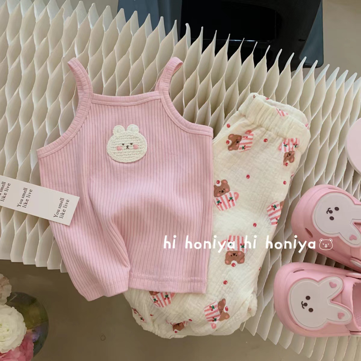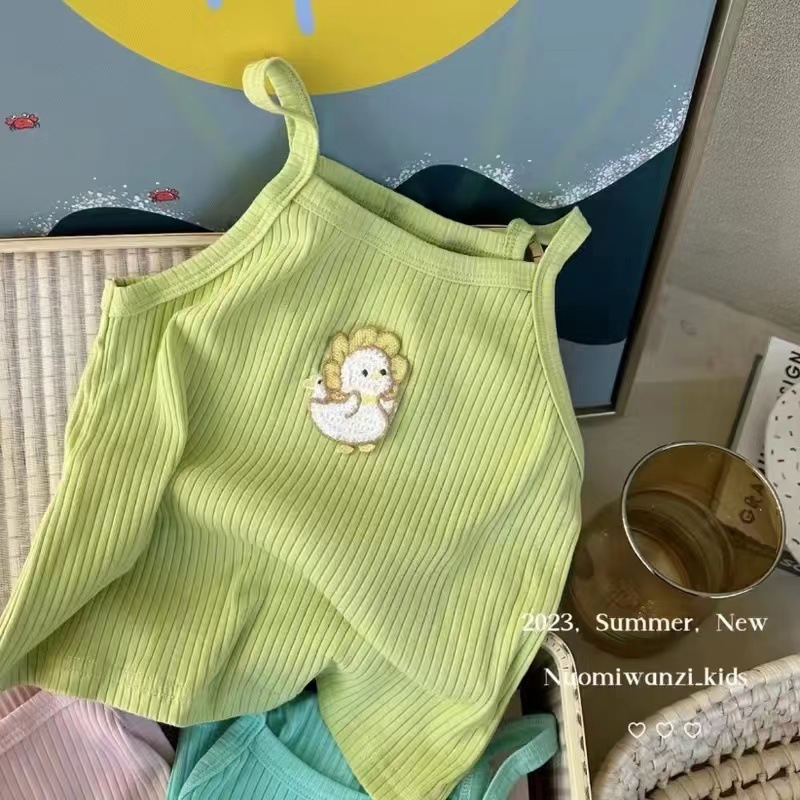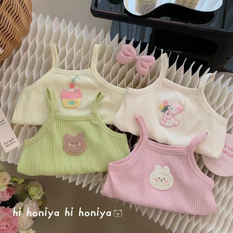 女童吊带夏装新款韩版可爱宝宝卡通马卡龙色背心弹力亲肤小童上衣