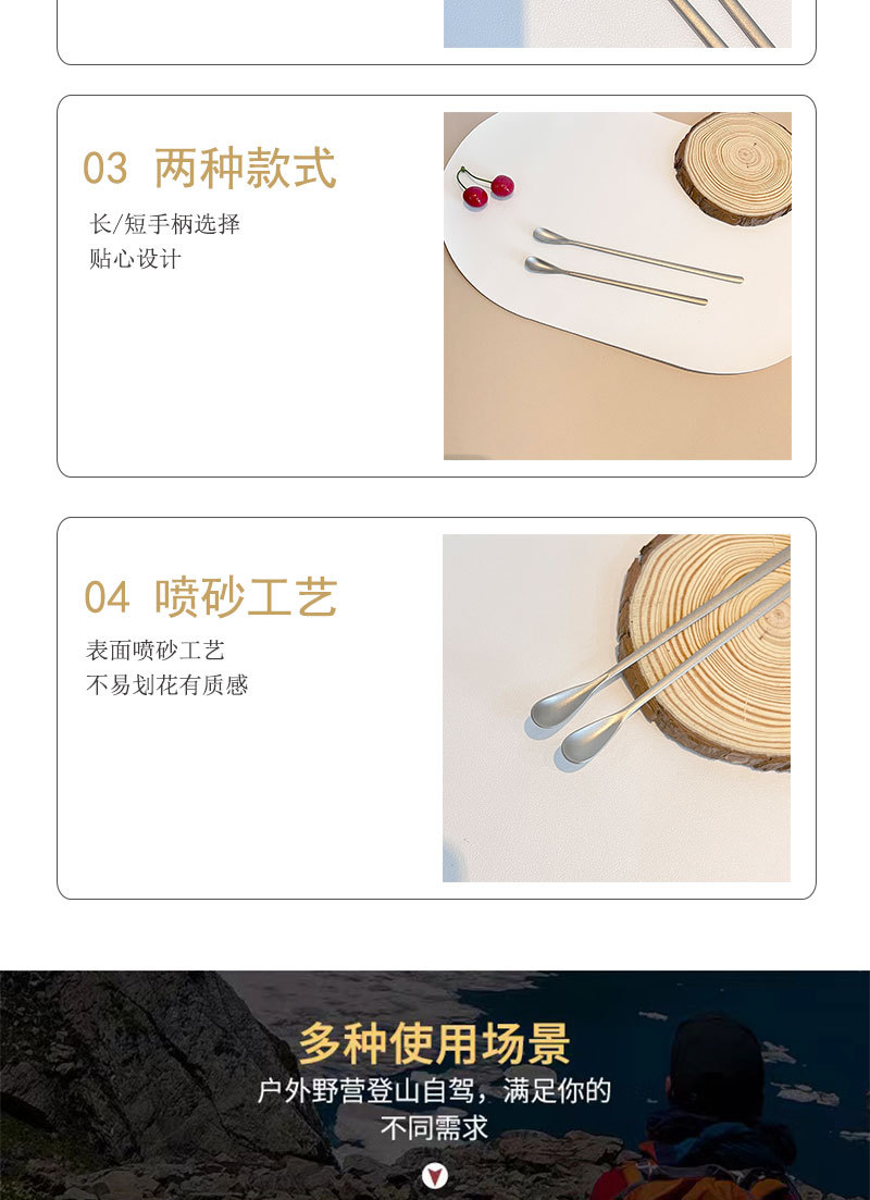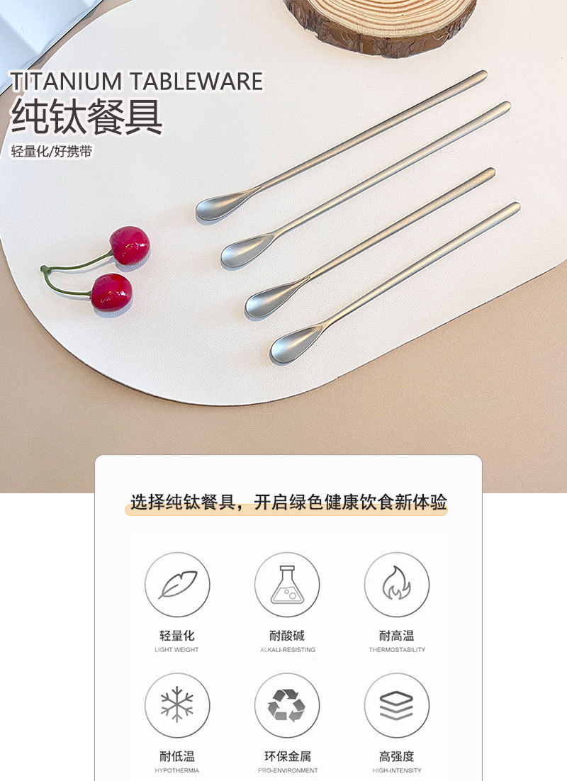 인터넷 축하 순수 티타늄 혼합 스푼 야외 가정용 긴 손잡이 디저트 스푼 케이크 스푼 여행 울트라 라이트 휴대용 식기 아이스크림 스푼