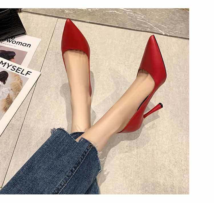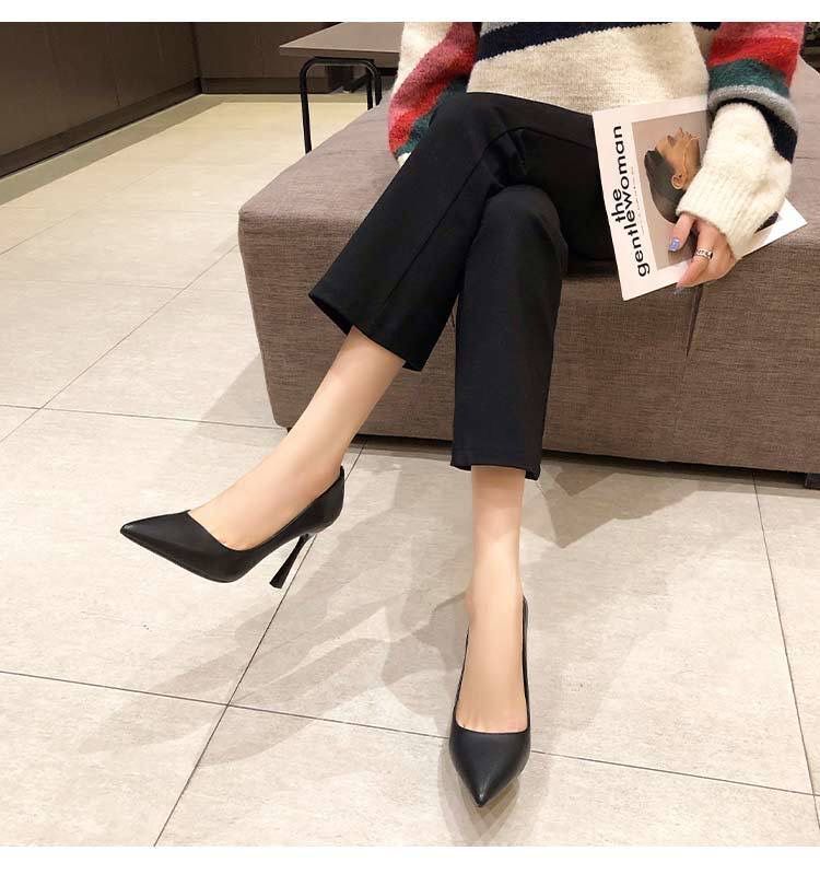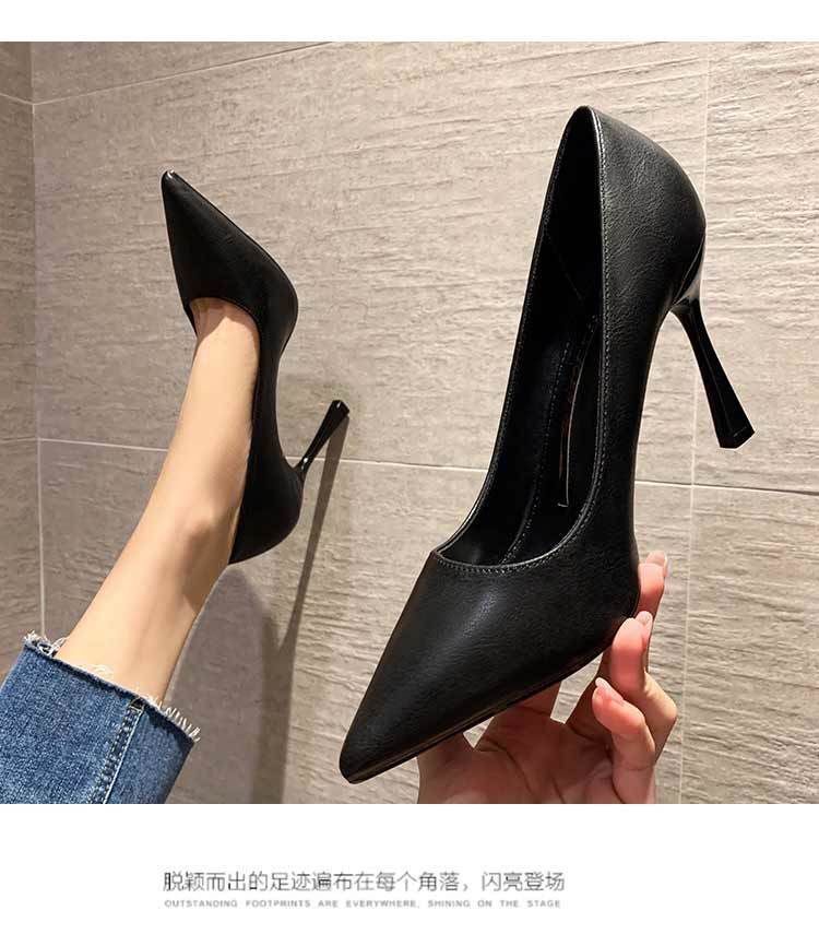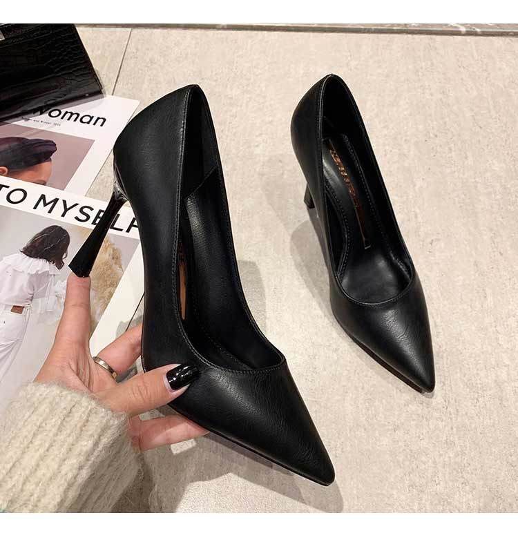 프렌치 스타일 누드 컬러 하이힐 여성용 얇은 굽 2025 봄 여름 신상 다용도 뾰족코 구두 직장용 가죽 구두 중간 굽스토어 가기