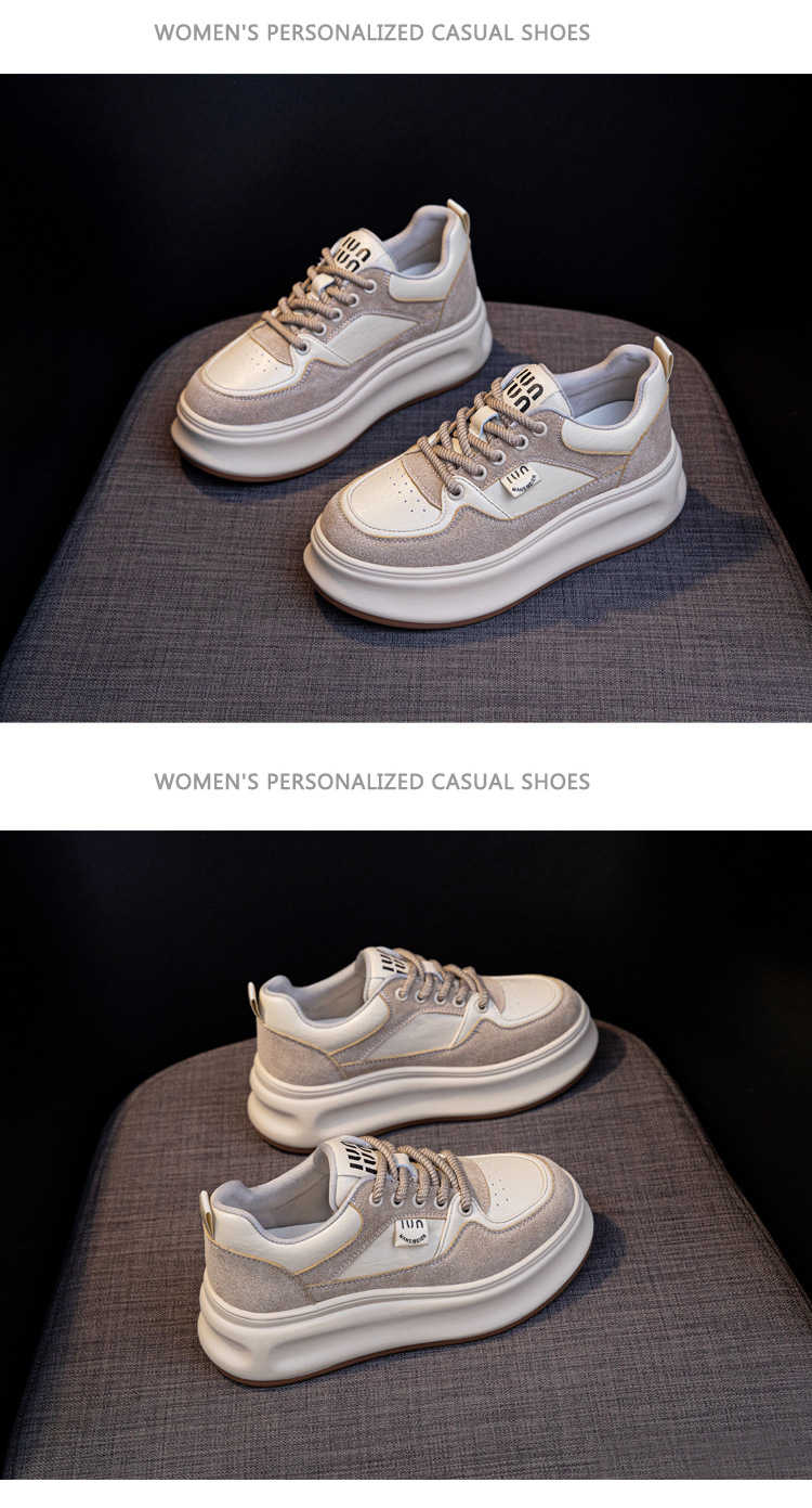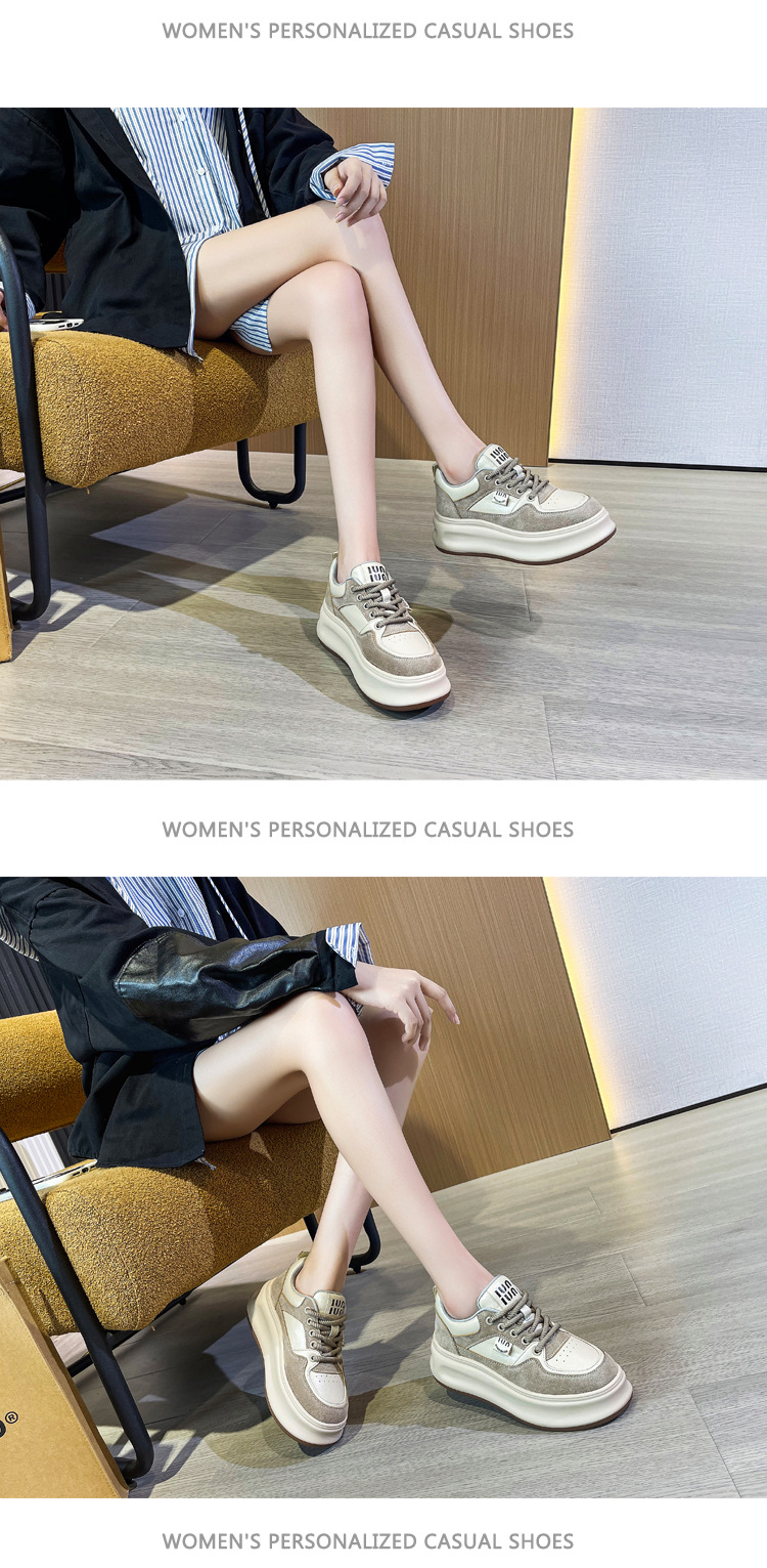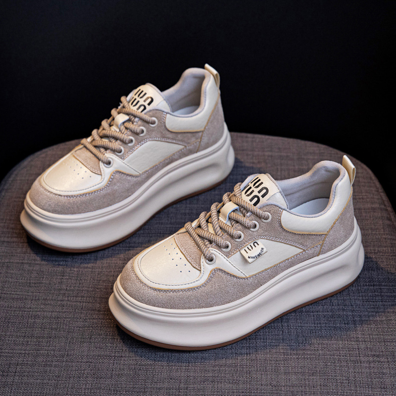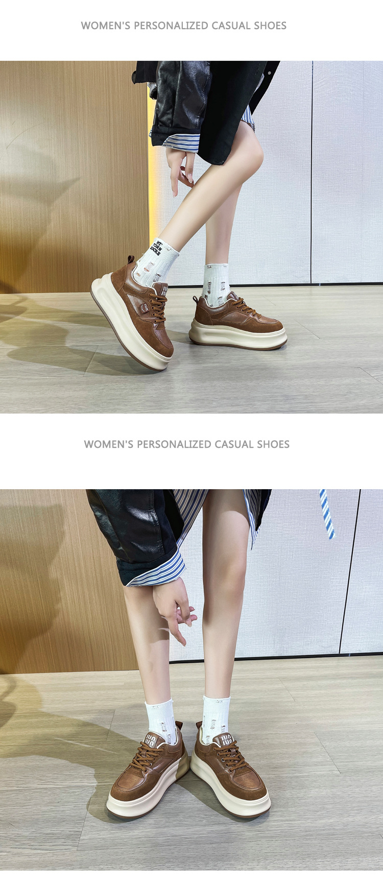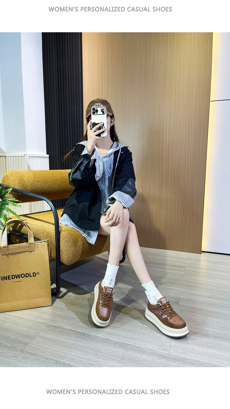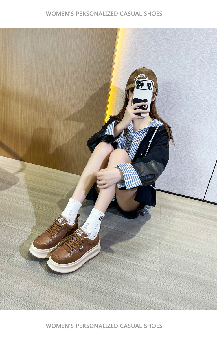 정품 가죽 빈티지 화이트 신발 여성의 가을 2024 새로운 올매치 두꺼운 밑창 증가 캐주얼 신발 플랫폼 운동화 운동화스토어 가기