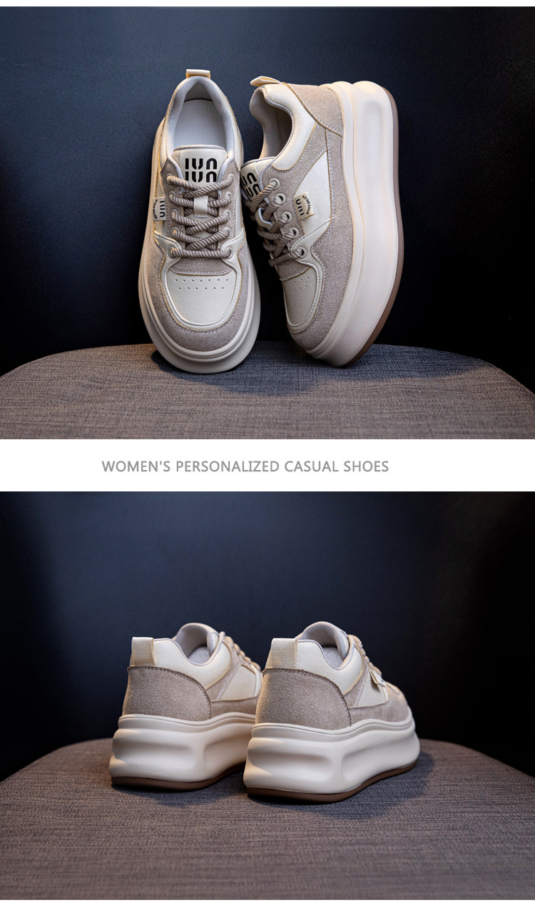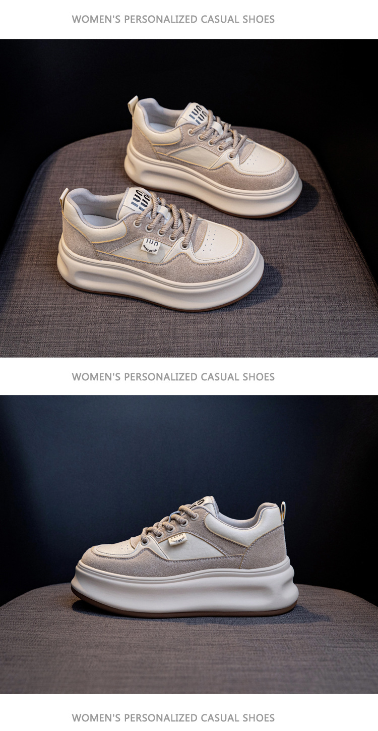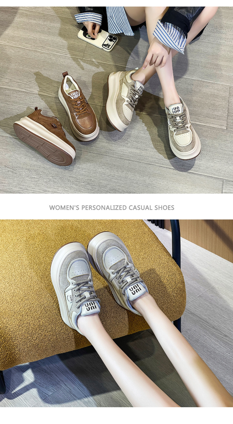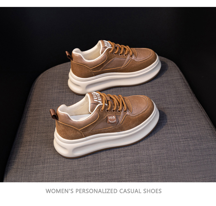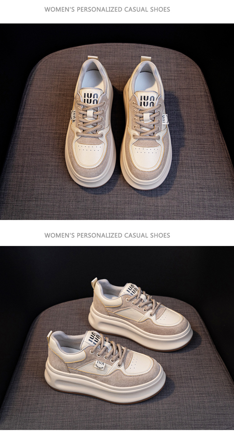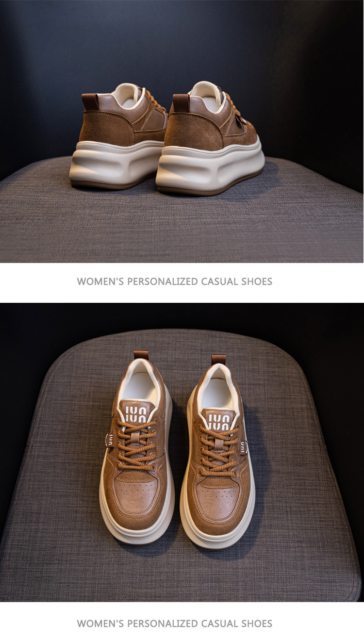 정품 가죽 빈티지 화이트 신발 여성의 가을 2024 새로운 올매치 두꺼운 밑창 증가 캐주얼 신발 플랫폼 운동화 운동화스토어 가기