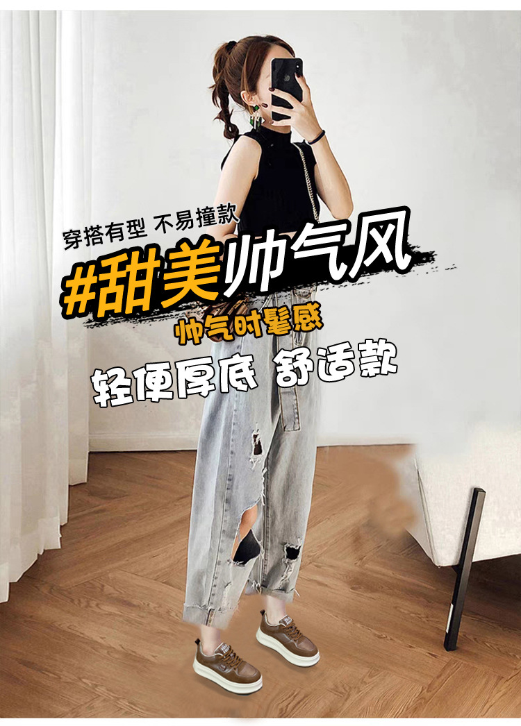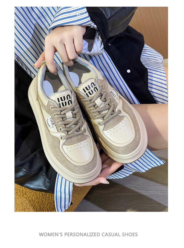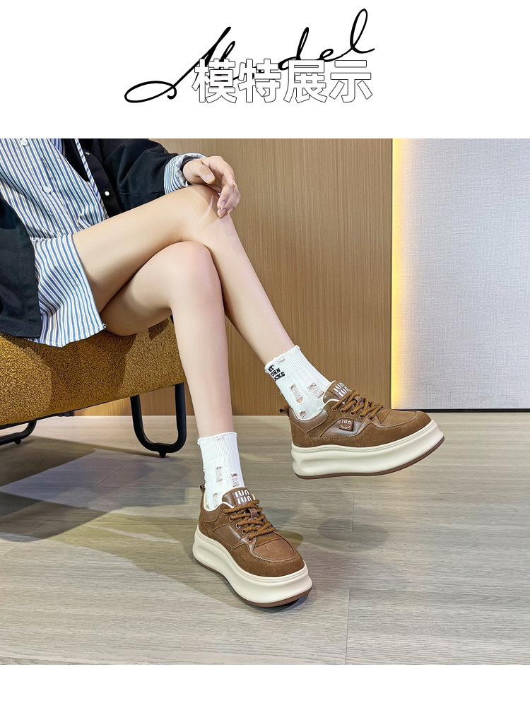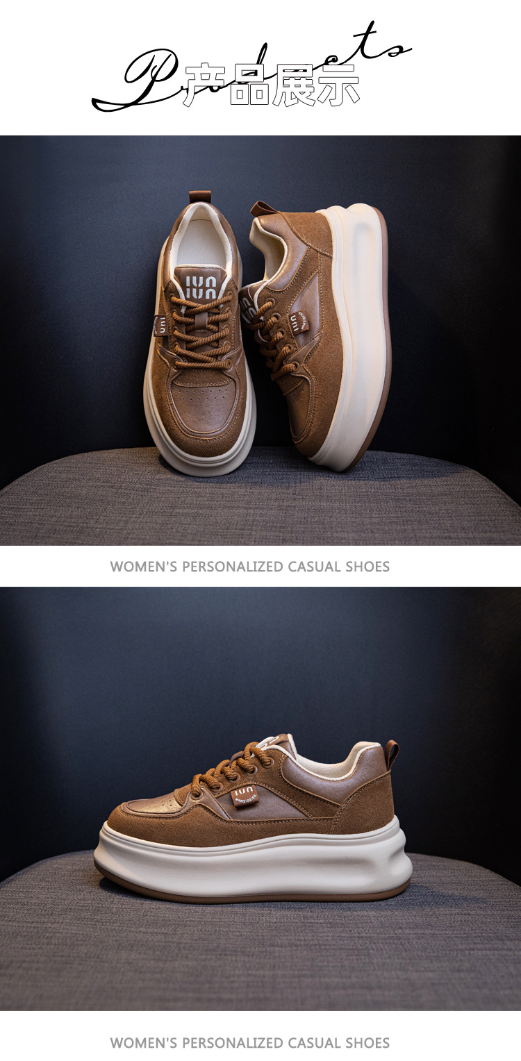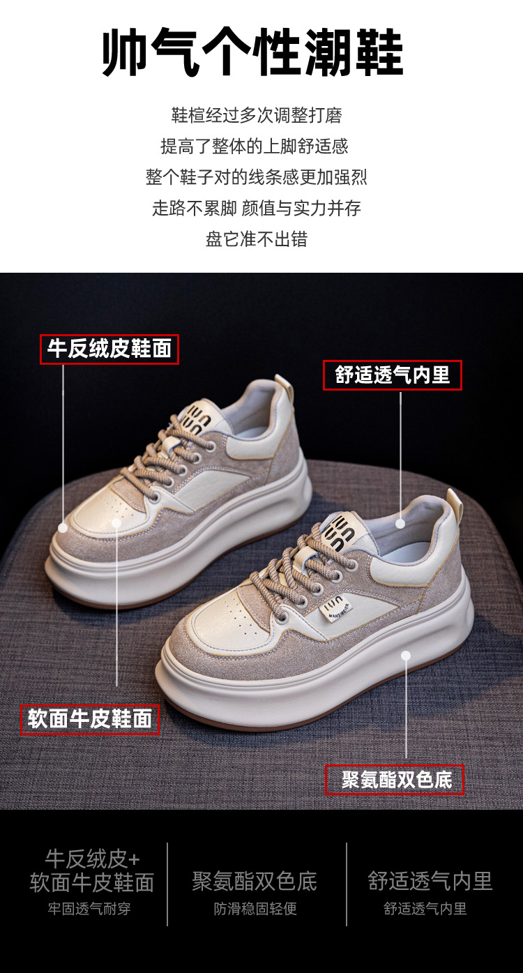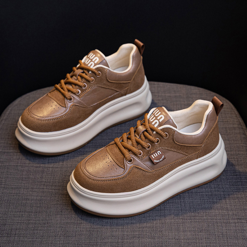 정품 가죽 빈티지 화이트 신발 여성의 가을 2024 새로운 올매치 두꺼운 밑창 증가 캐주얼 신발 플랫폼 운동화 운동화스토어 가기