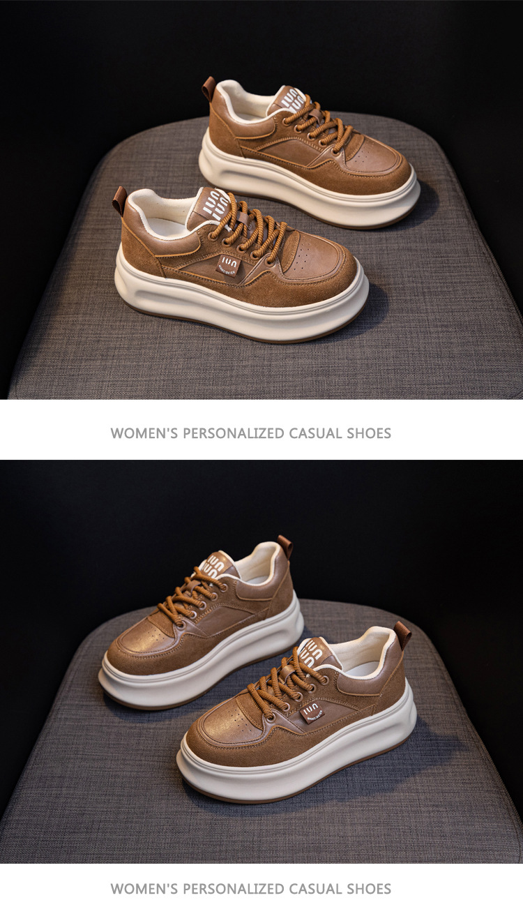 정품 가죽 빈티지 화이트 신발 여성의 가을 2024 새로운 올매치 두꺼운 밑창 증가 캐주얼 신발 플랫폼 운동화 운동화