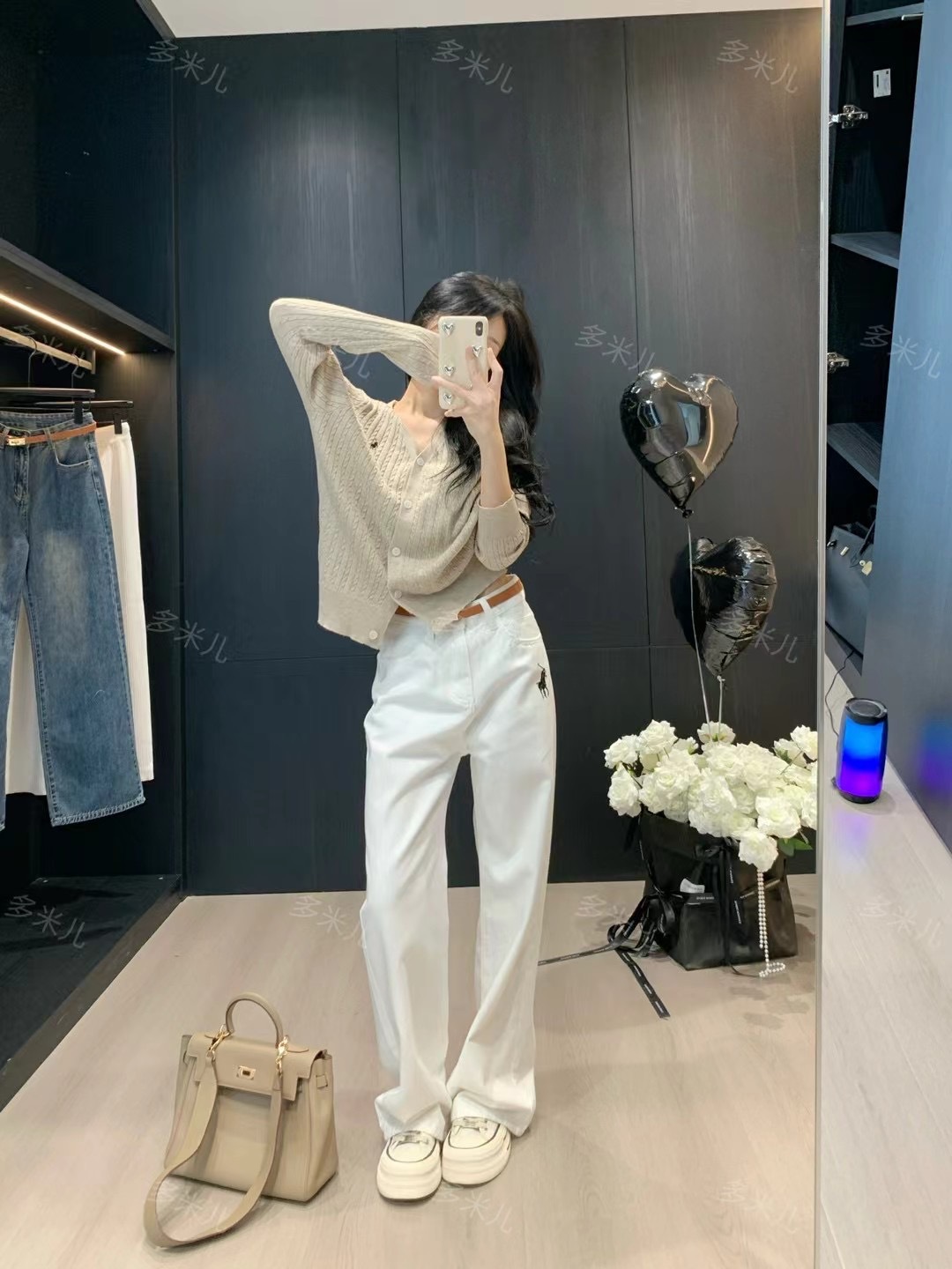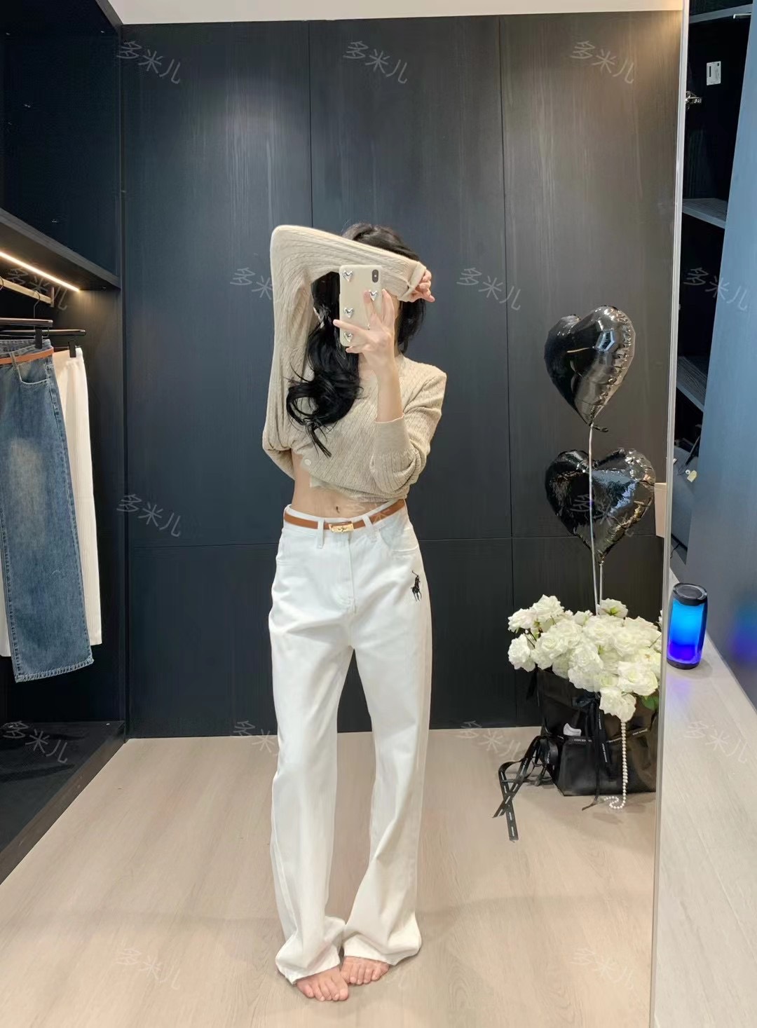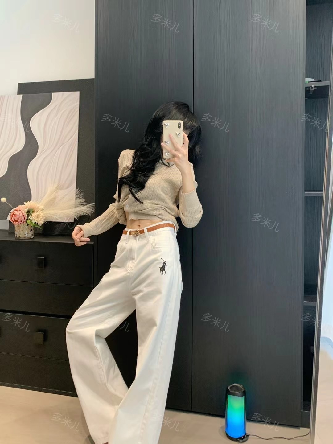 흰색 허리 청바지 여성용 래퍼 수 놓은 기모 두꺼운 높은 허리 느슨한 슬리밍 좁은 직선 다리 바지 벨트스토어 가기
