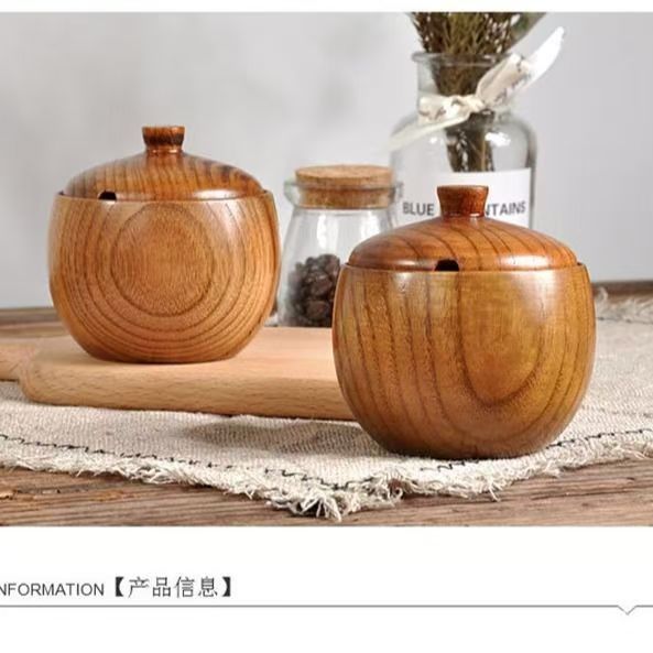 국경 간 대추 나무 조미료 항아리 일본식 조미료 병 나무 빈티지 소금 항아리 뚜껑 조미료 항아리 세트스토어 가기