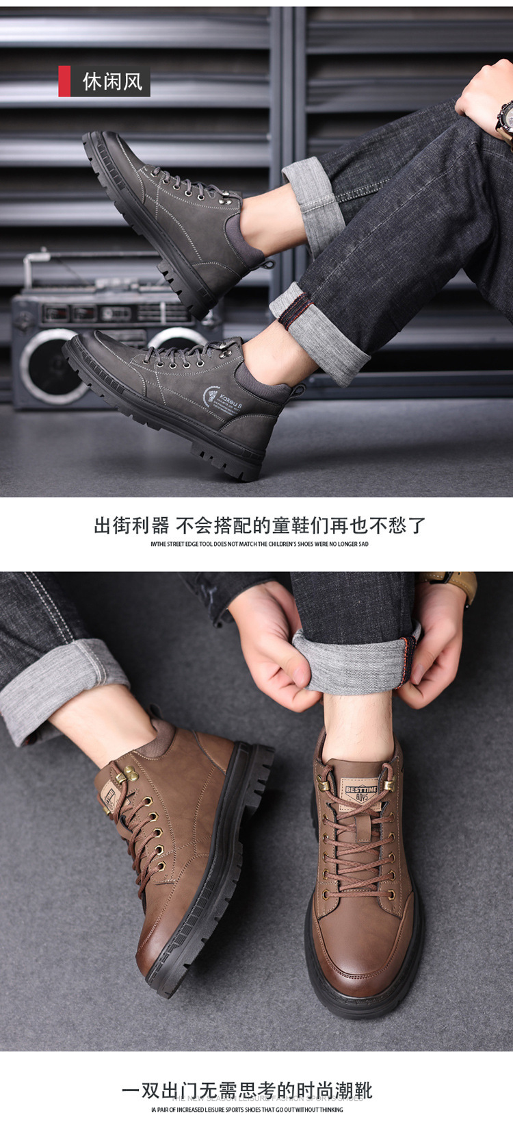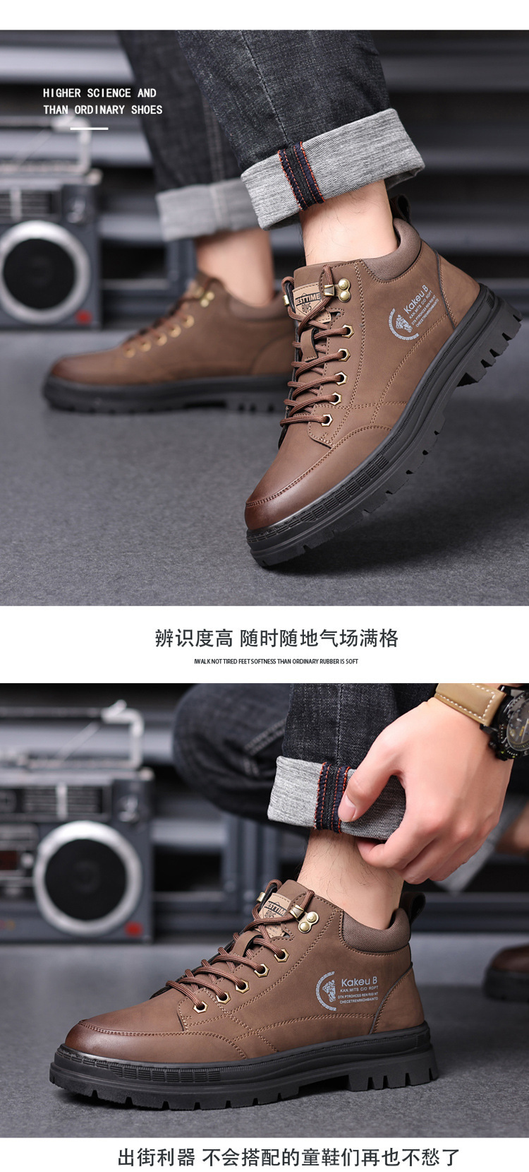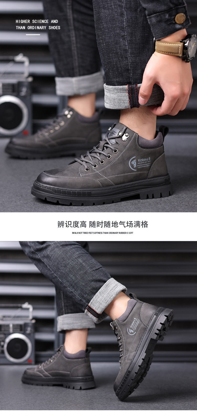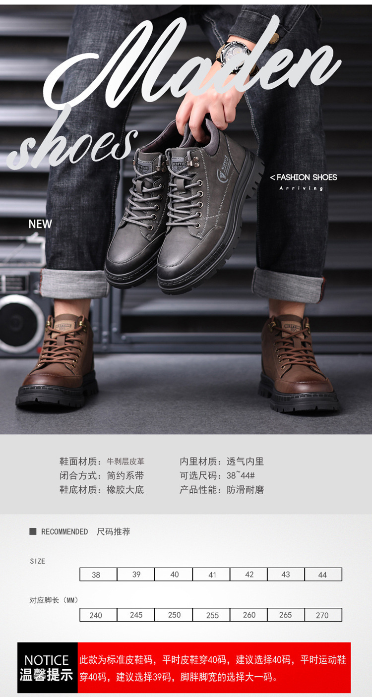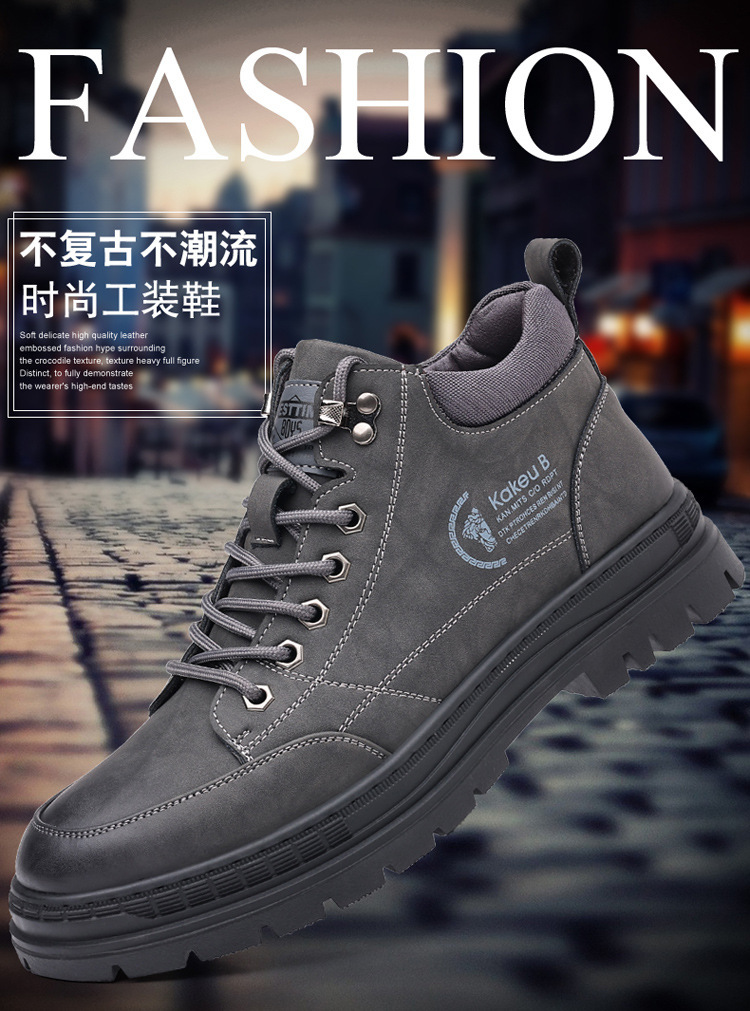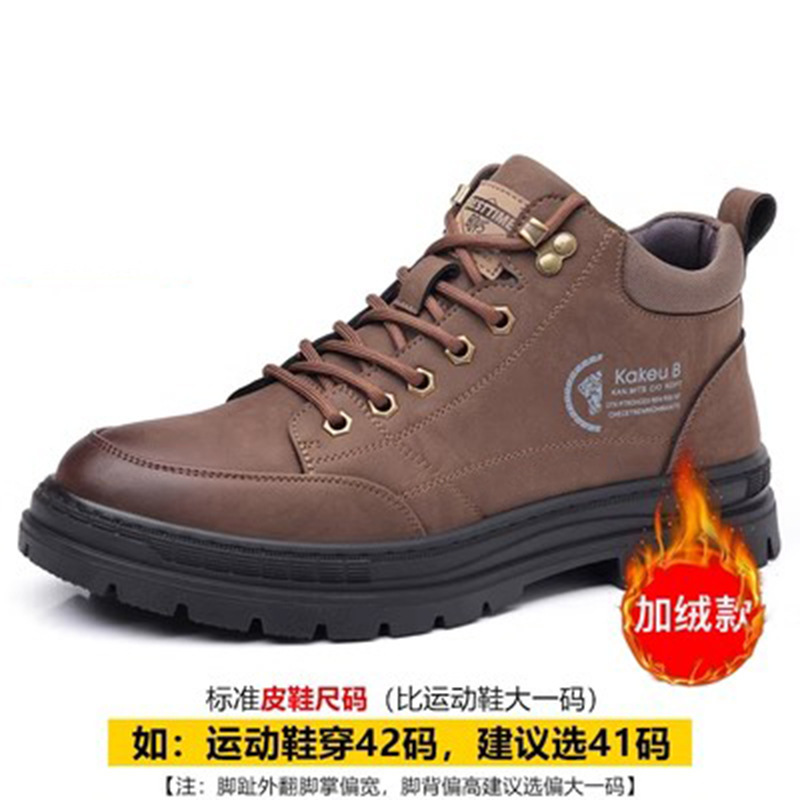 공장 직접 가을과 겨울 남성 야외 가죽 신발 하이킹 두꺼운 밑창 하이 탑 신발 조커 레트로 스포츠 캐주얼 신발스토어 가기