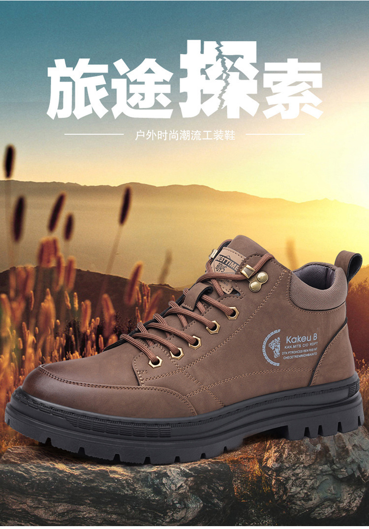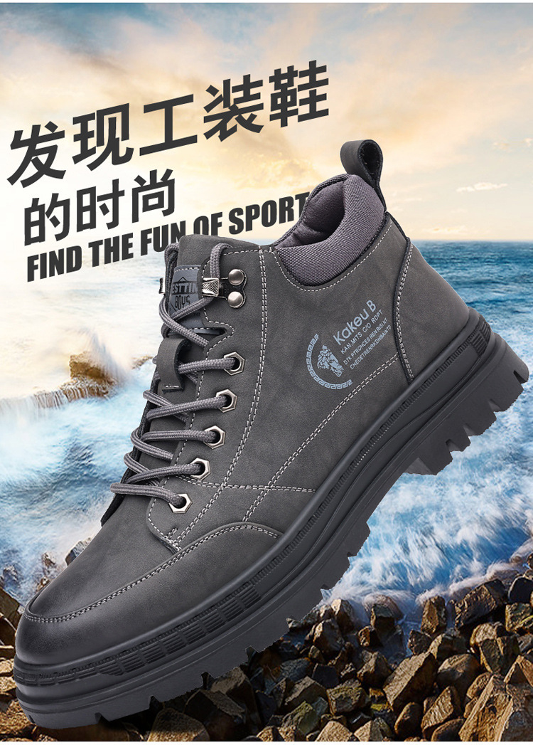 공장 직접 가을과 겨울 남성 야외 가죽 신발 하이킹 두꺼운 밑창 하이 탑 신발 조커 레트로 스포츠 캐주얼 신발