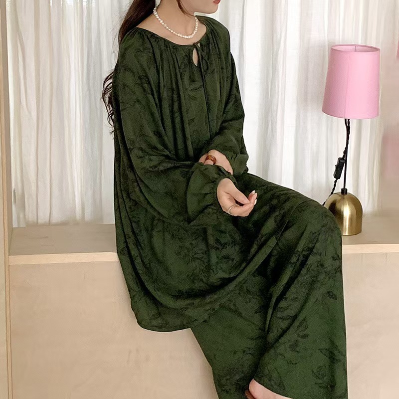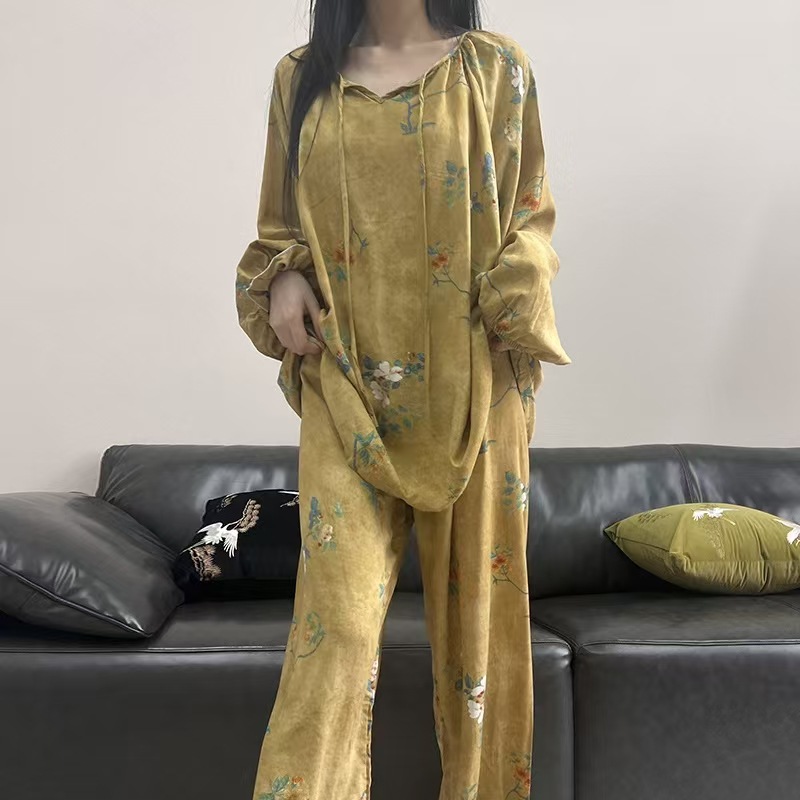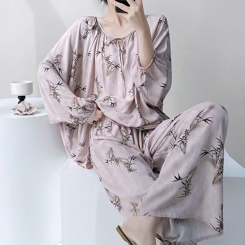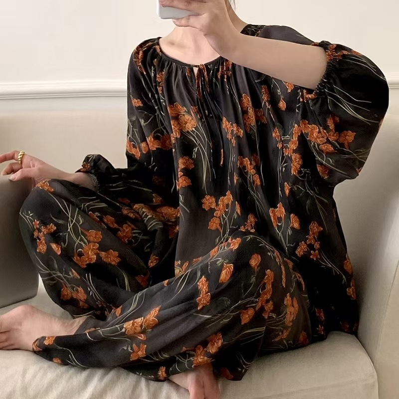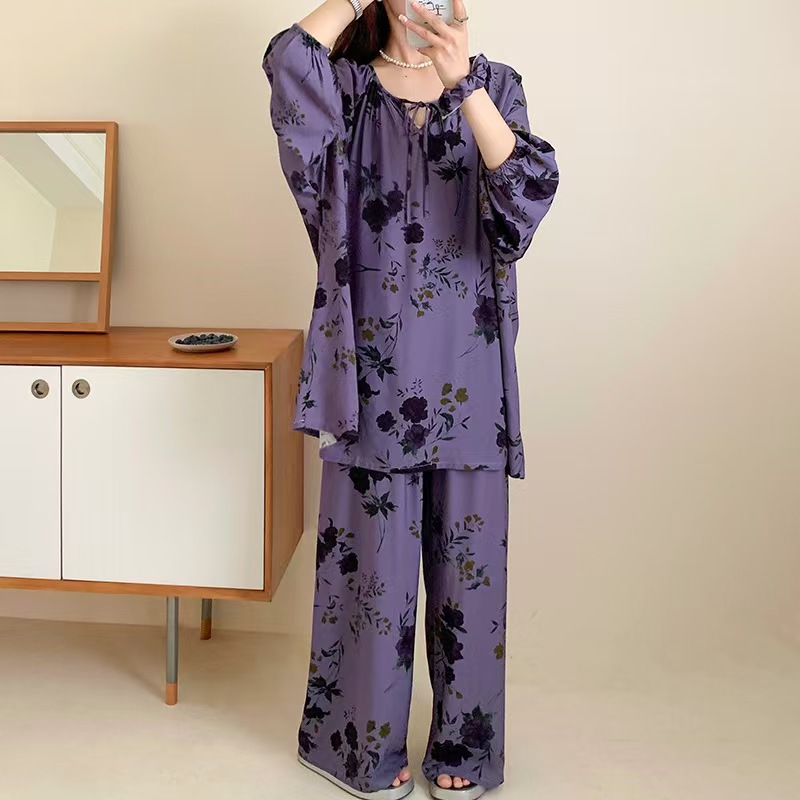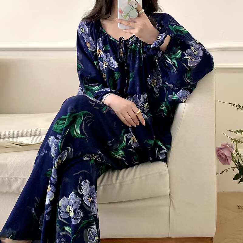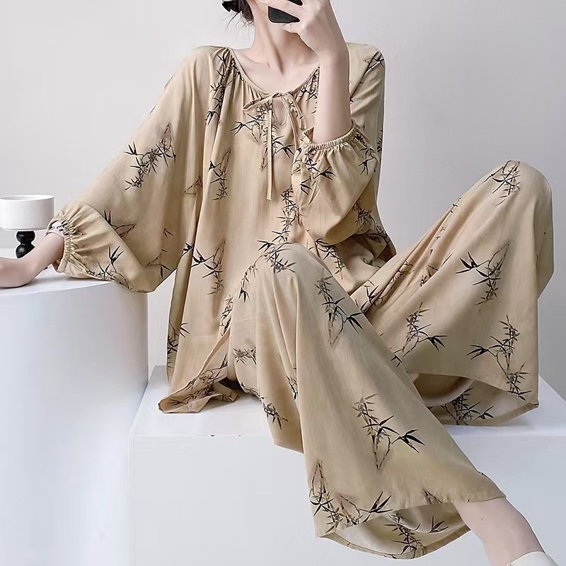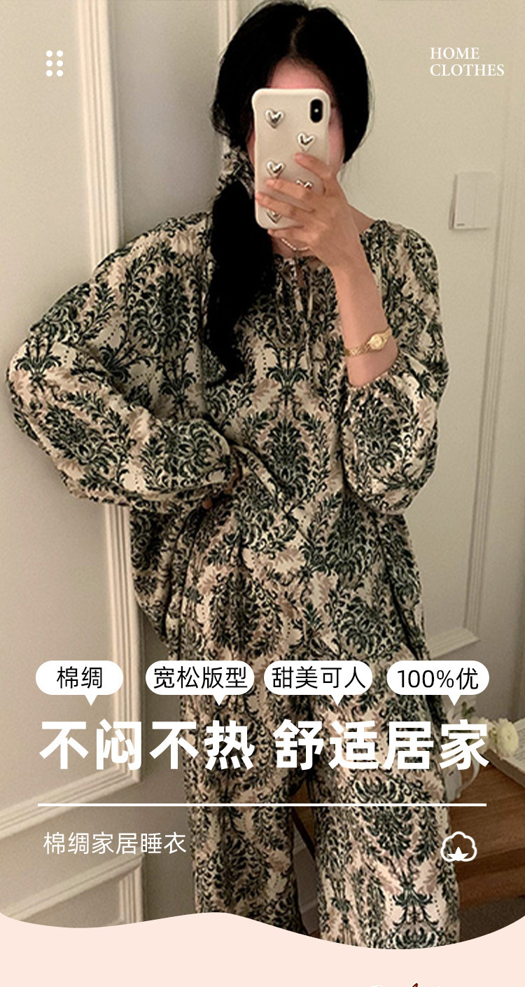 잠옷 여성의 봄, 가을, 여름 플러스 사이즈 200kg 통통녀 면 실크 홈 의류는 에어컨 의류 여성면 실크 세트 밖에서 착용 할 수 있습니다.스토어 가기