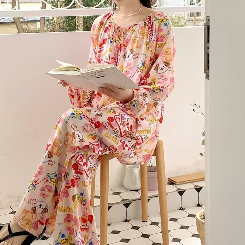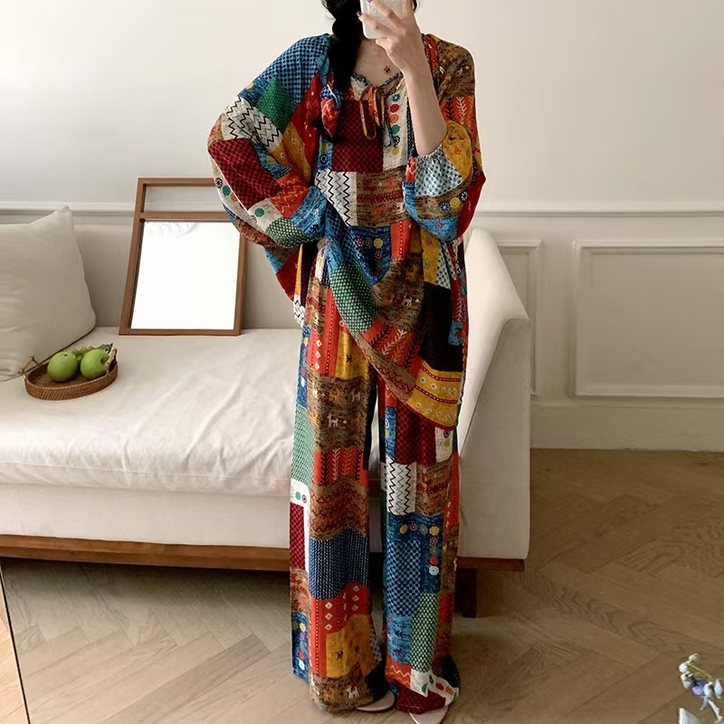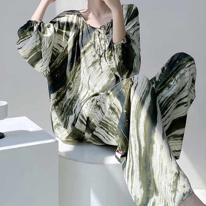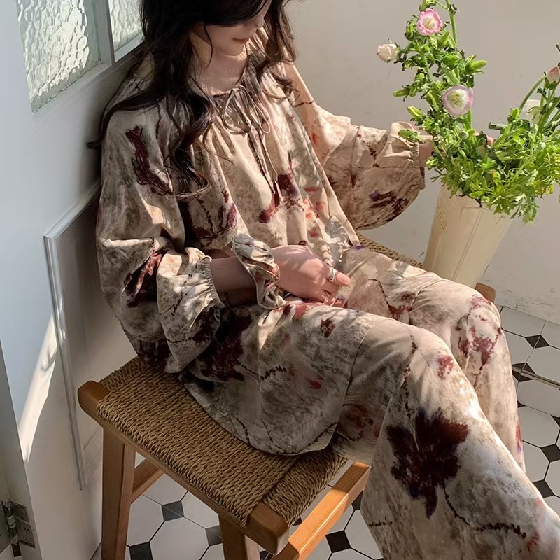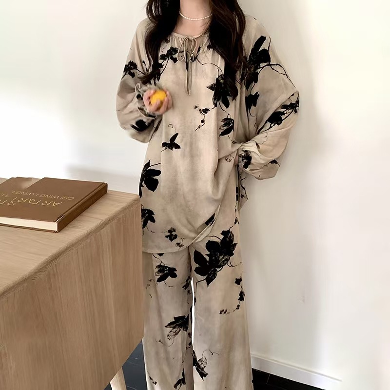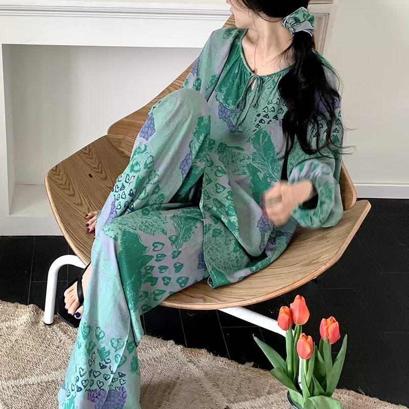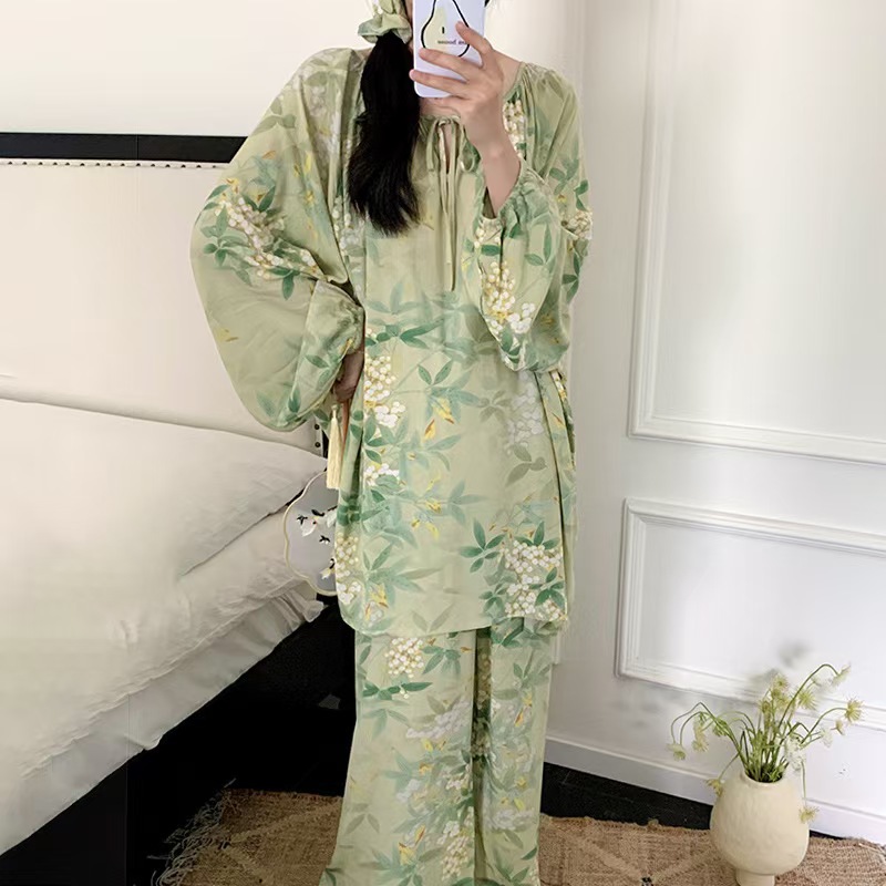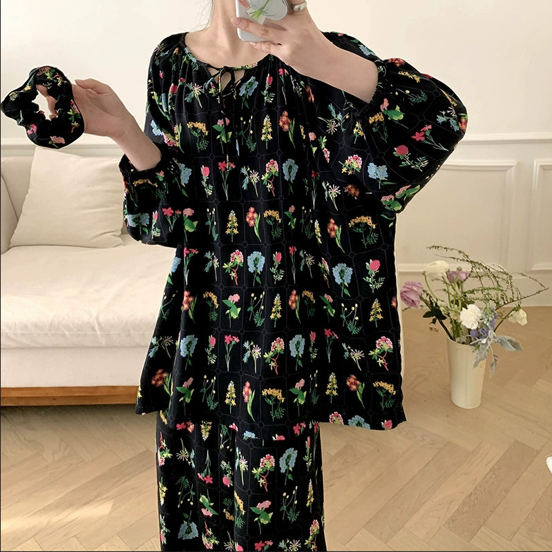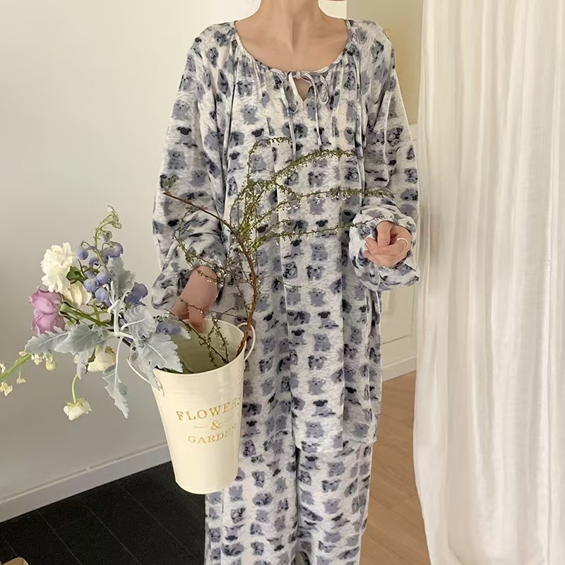 잠옷 여성의 봄, 가을, 여름 플러스 사이즈 200kg 통통녀 면 실크 홈 의류는 에어컨 의류 여성면 실크 세트 밖에서 착용 할 수 있습니다.스토어 가기