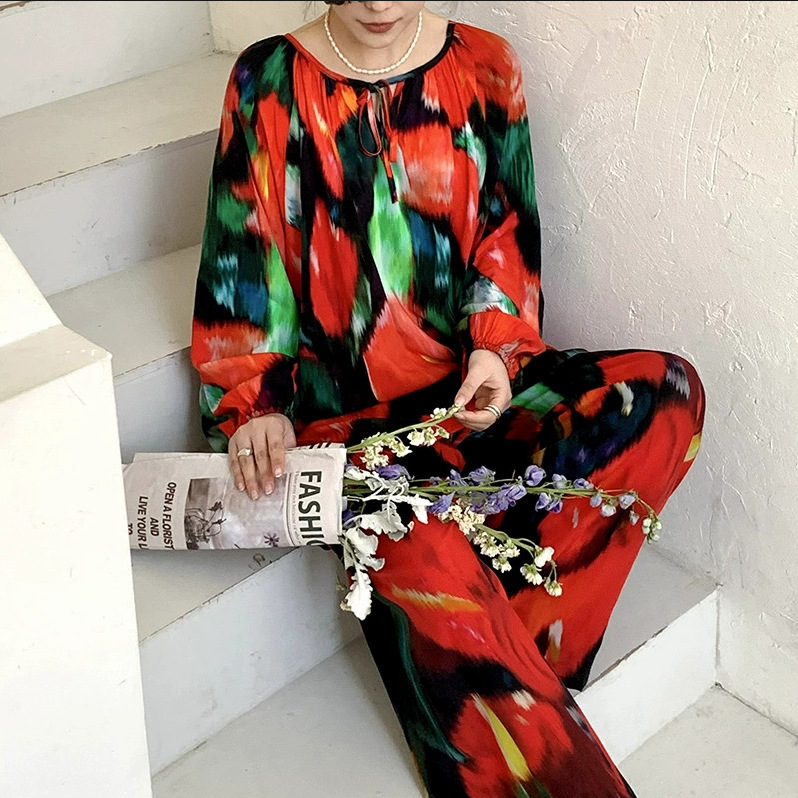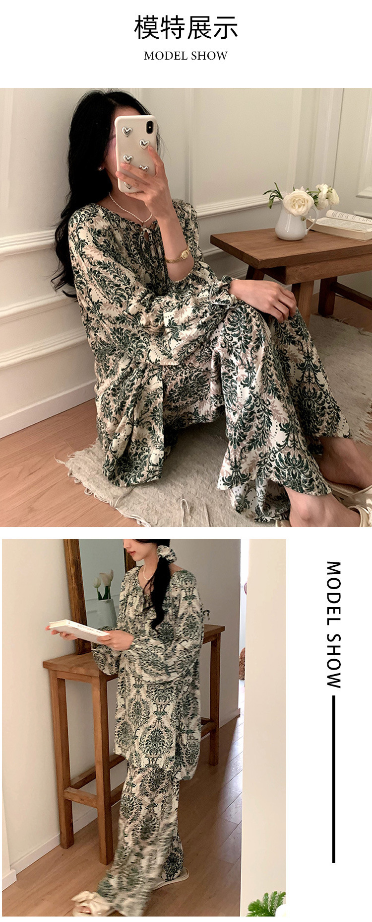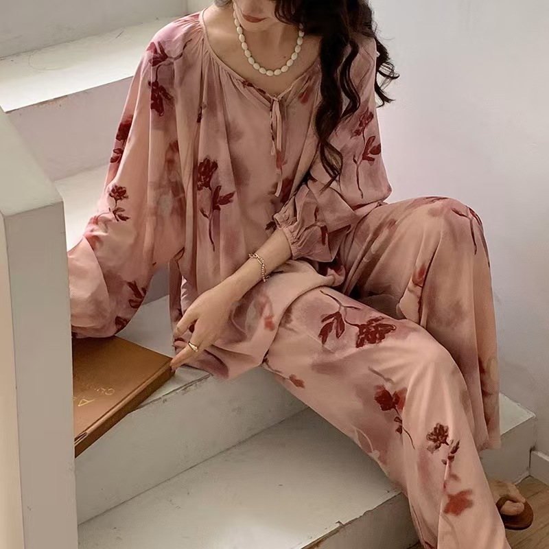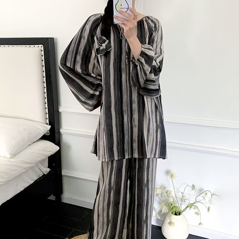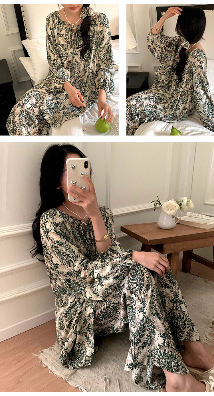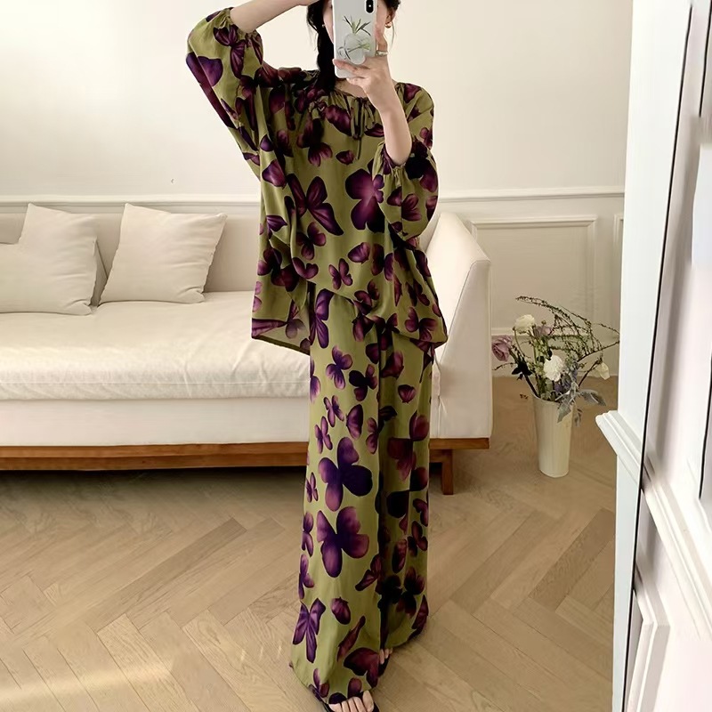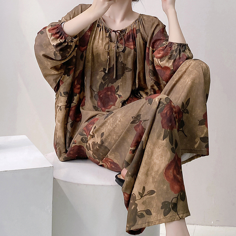 잠옷 여성의 봄, 가을, 여름 플러스 사이즈 200kg 통통녀 면 실크 홈 의류는 에어컨 의류 여성면 실크 세트 밖에서 착용 할 수 있습니다.스토어 가기