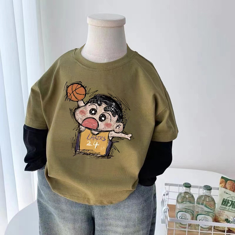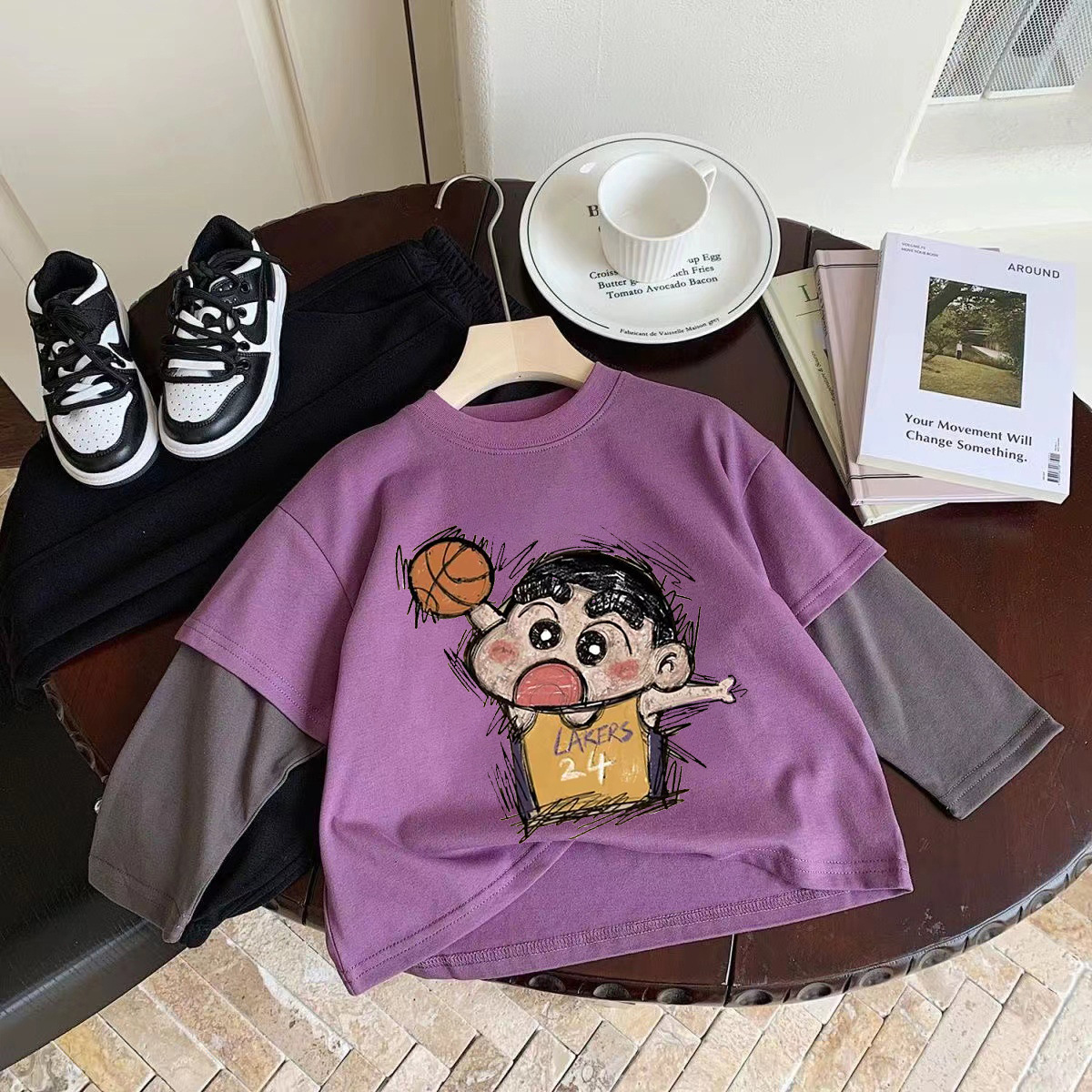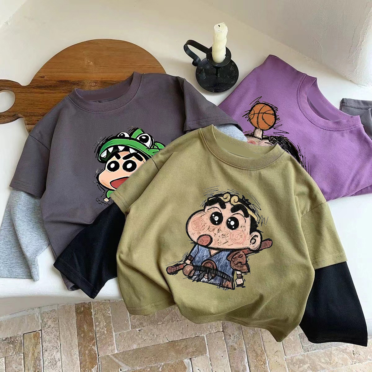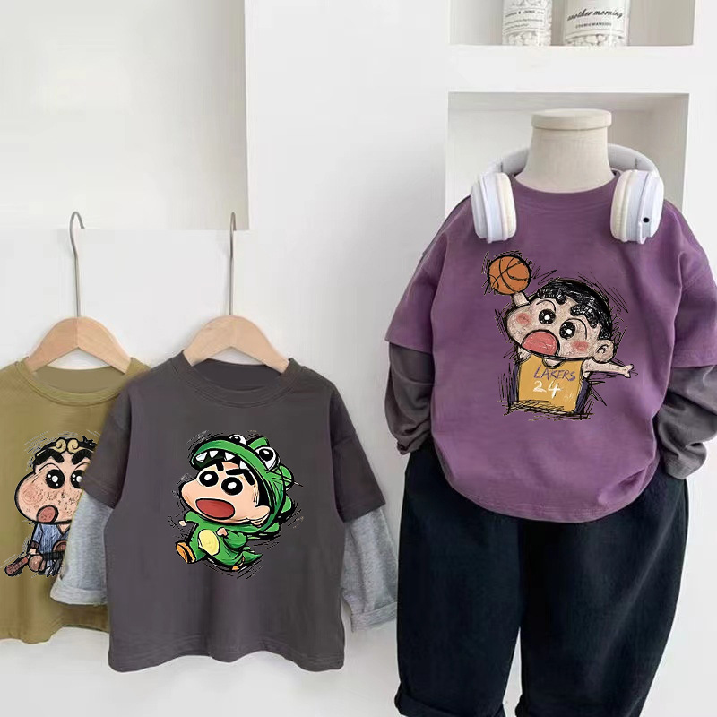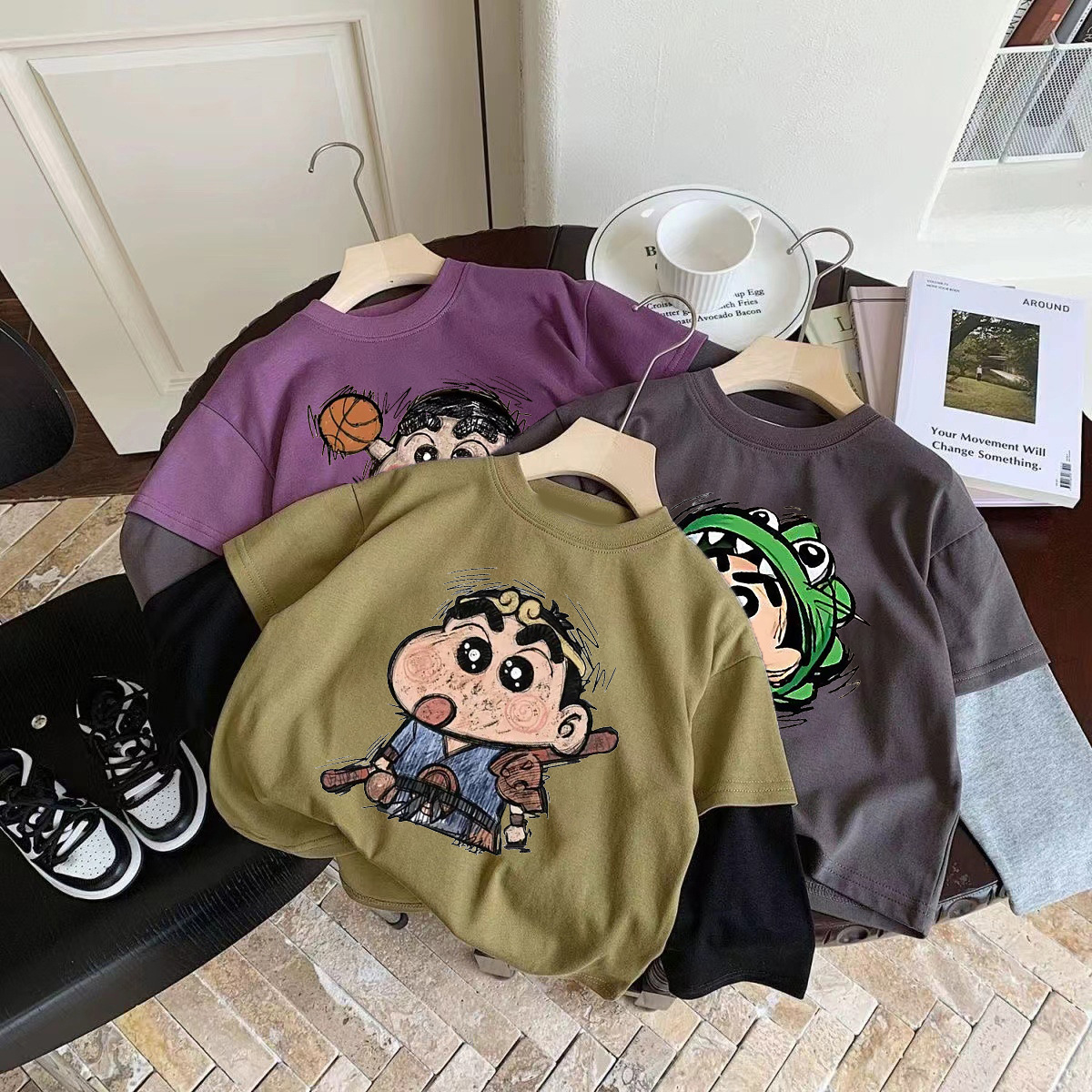 코튼 어린이 가짜 두 조각 긴팔 티셔츠 소년과 소녀 봄 가을 새로운 일본 스타일 귀여운 서양식 탑베이스 셔츠