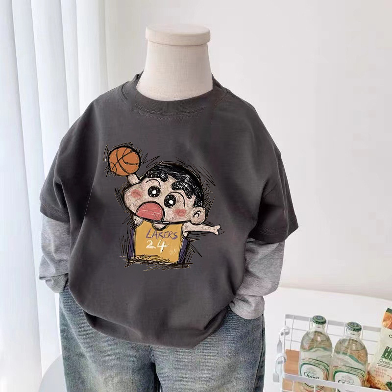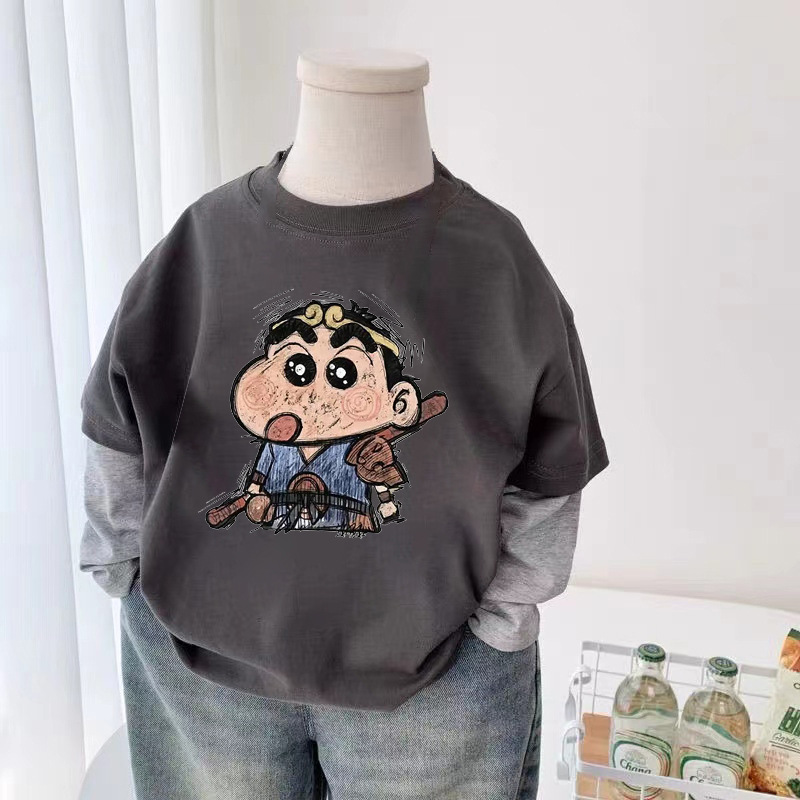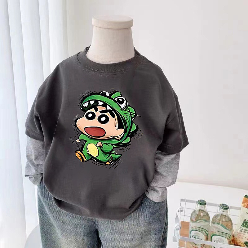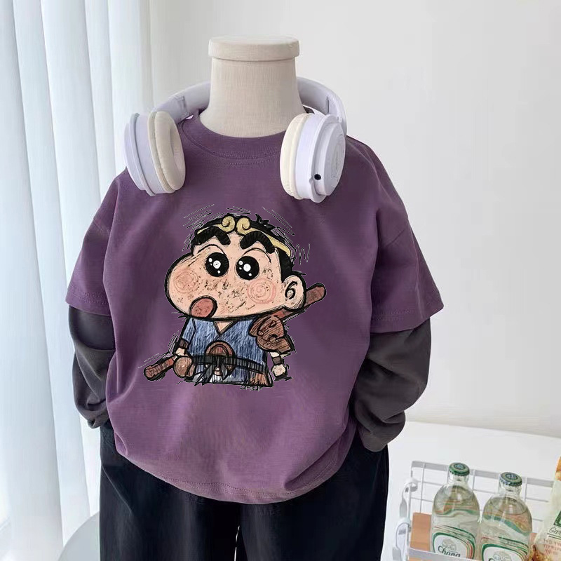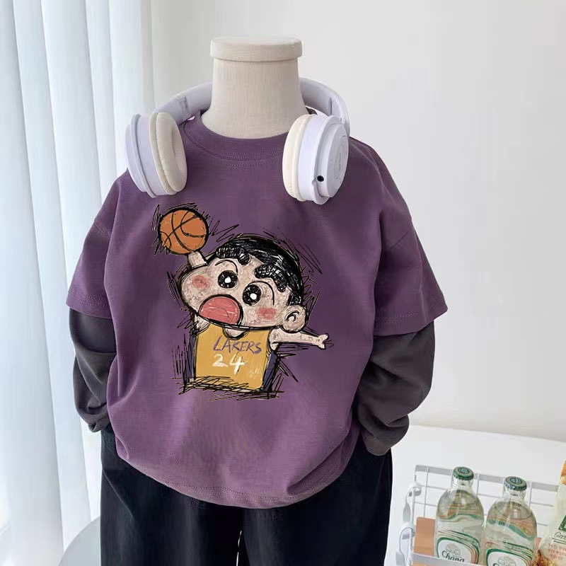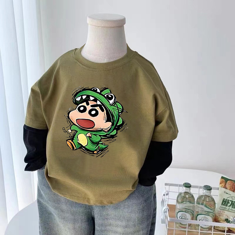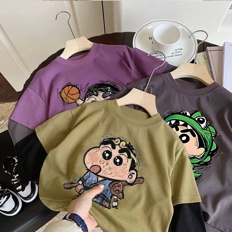 코튼 어린이 가짜 두 조각 긴팔 티셔츠 소년과 소녀 봄 가을 새로운 일본 스타일 귀여운 서양식 탑베이스 셔츠
