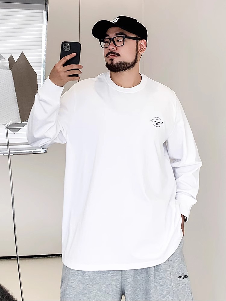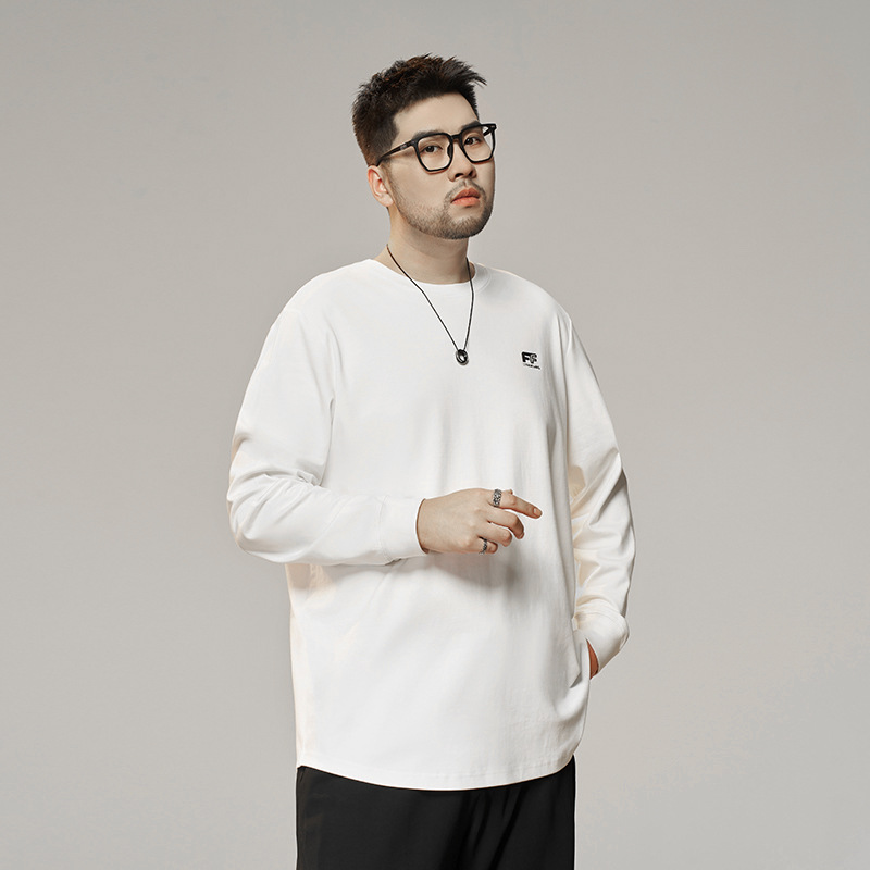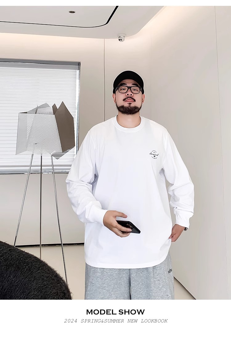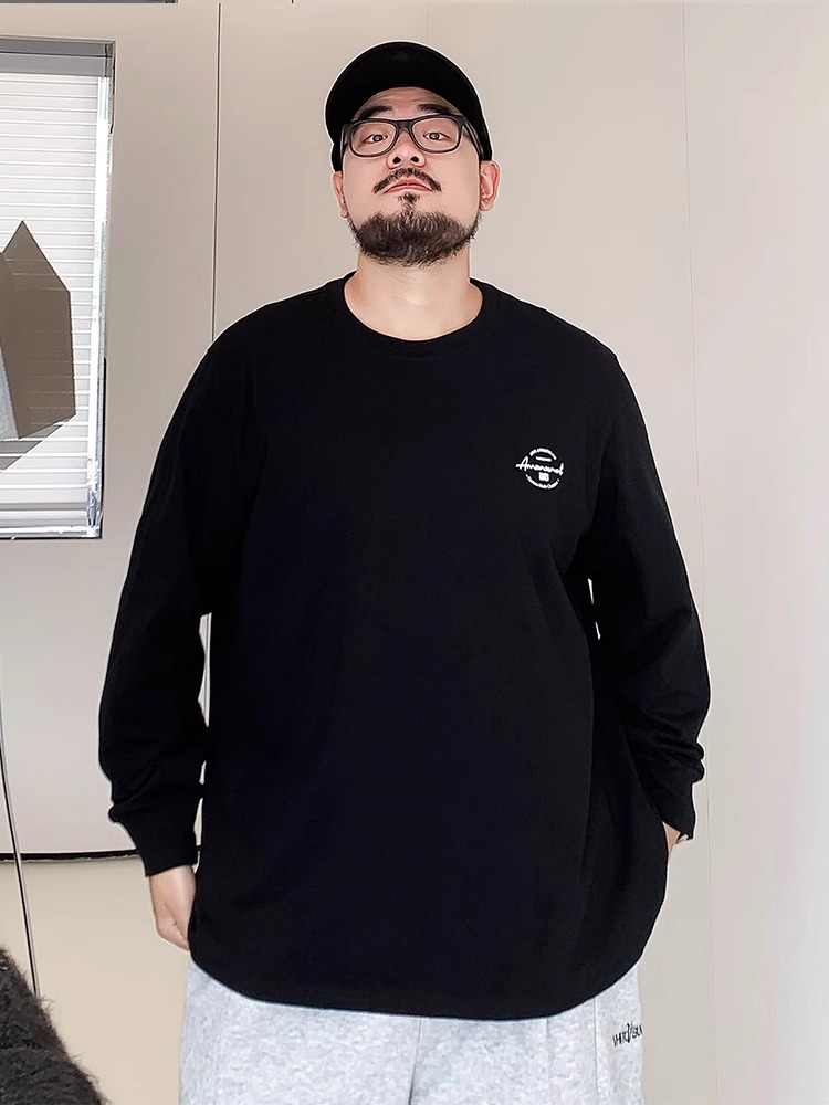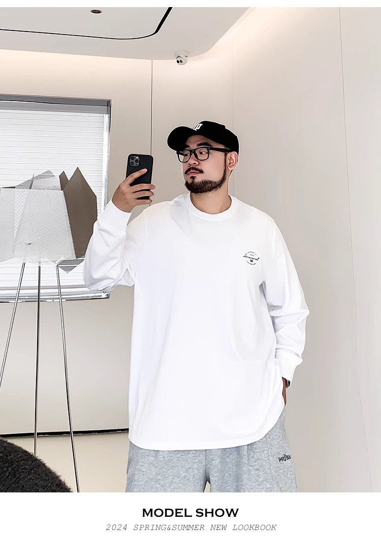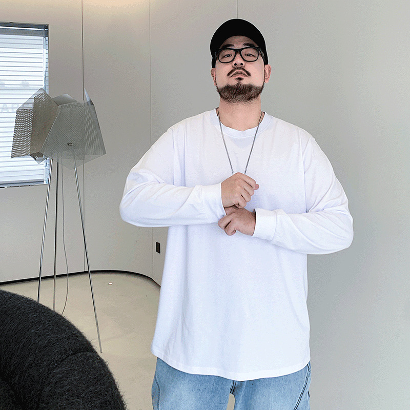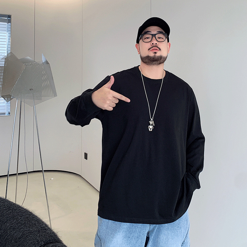 뚱뚱한 봄과 가을 캐주얼 긴 소매 티셔츠 남자의 2024 새로운 패션 브랜드 느슨한 플러스 사이즈 코튼 크루 넥베이스 셔츠스토어 가기