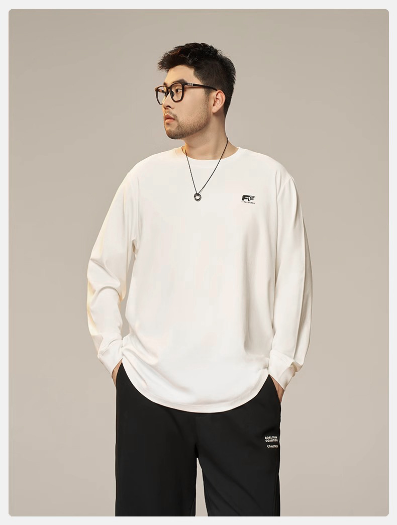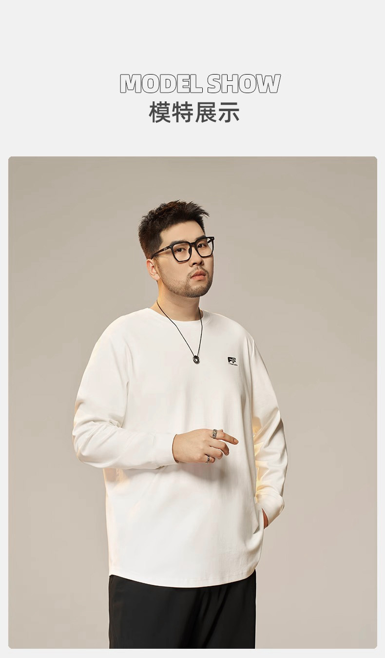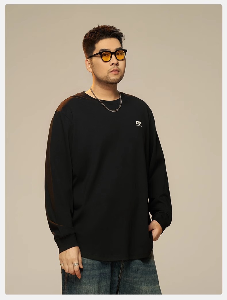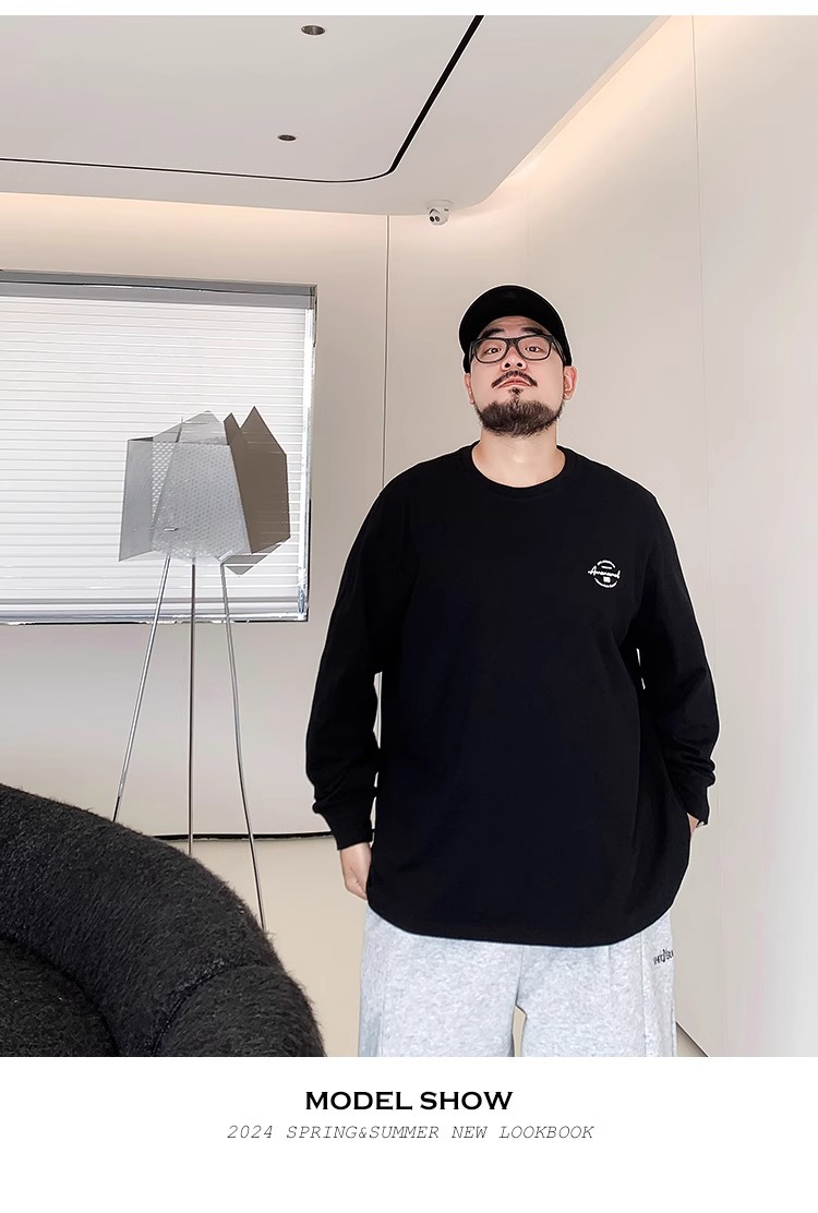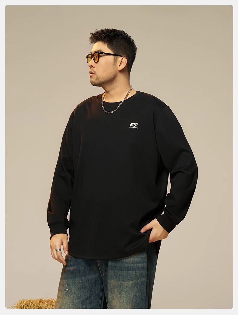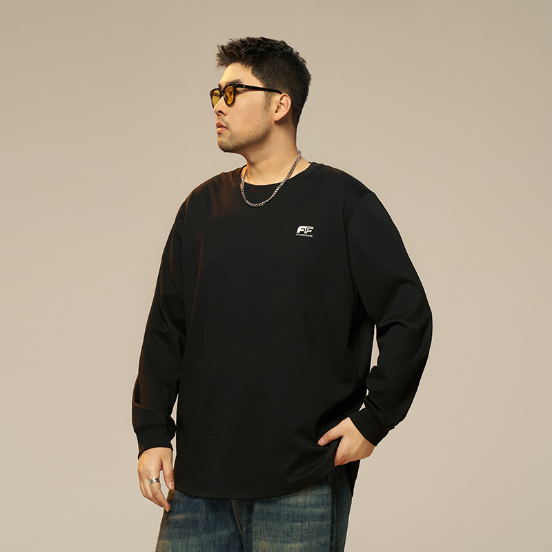 뚱뚱한 봄과 가을 캐주얼 긴 소매 티셔츠 남자의 2024 새로운 패션 브랜드 느슨한 플러스 사이즈 코튼 크루 넥베이스 셔츠스토어 가기