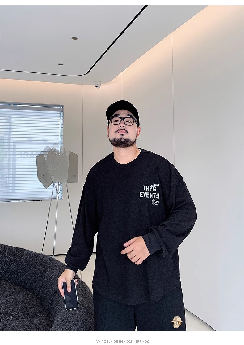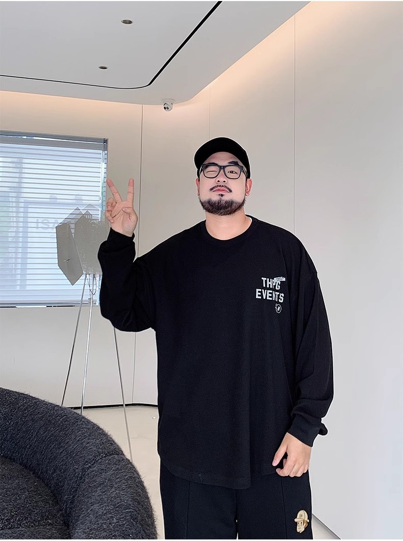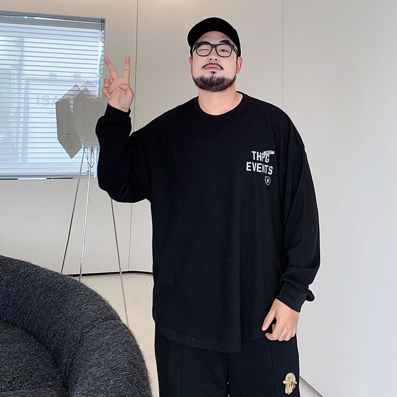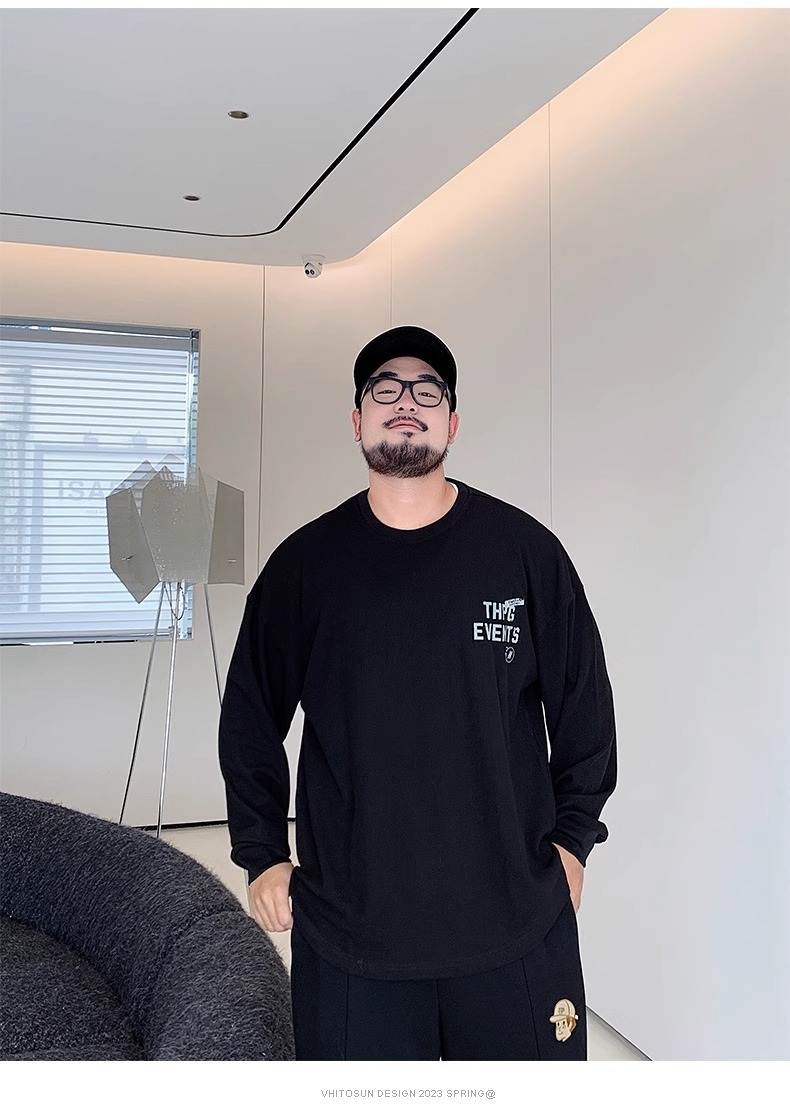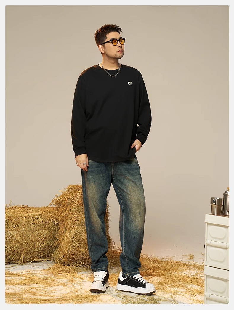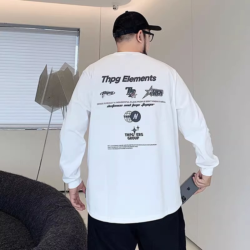 뚱뚱한 봄과 가을 캐주얼 긴 소매 티셔츠 남자의 2024 새로운 패션 브랜드 느슨한 플러스 사이즈 코튼 크루 넥베이스 셔츠스토어 가기