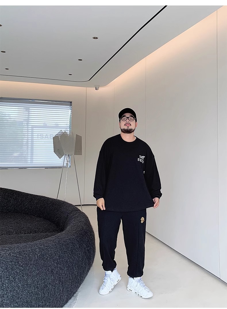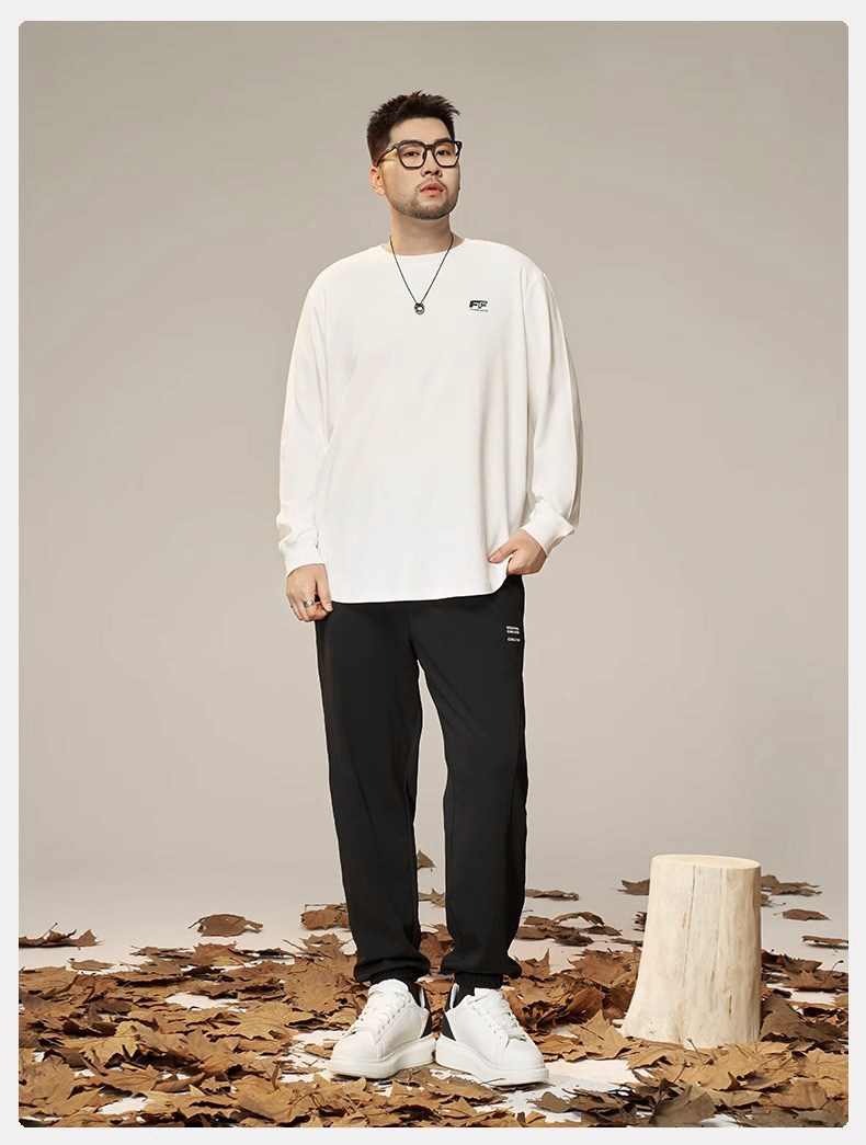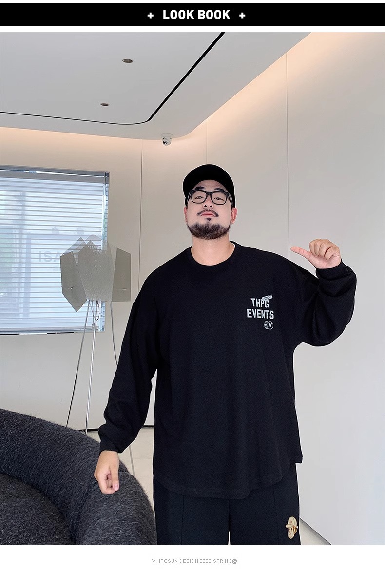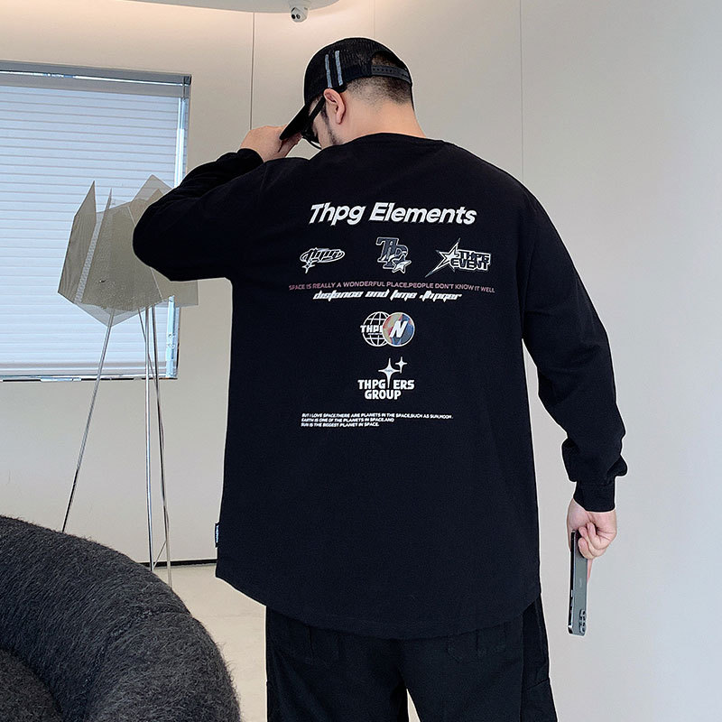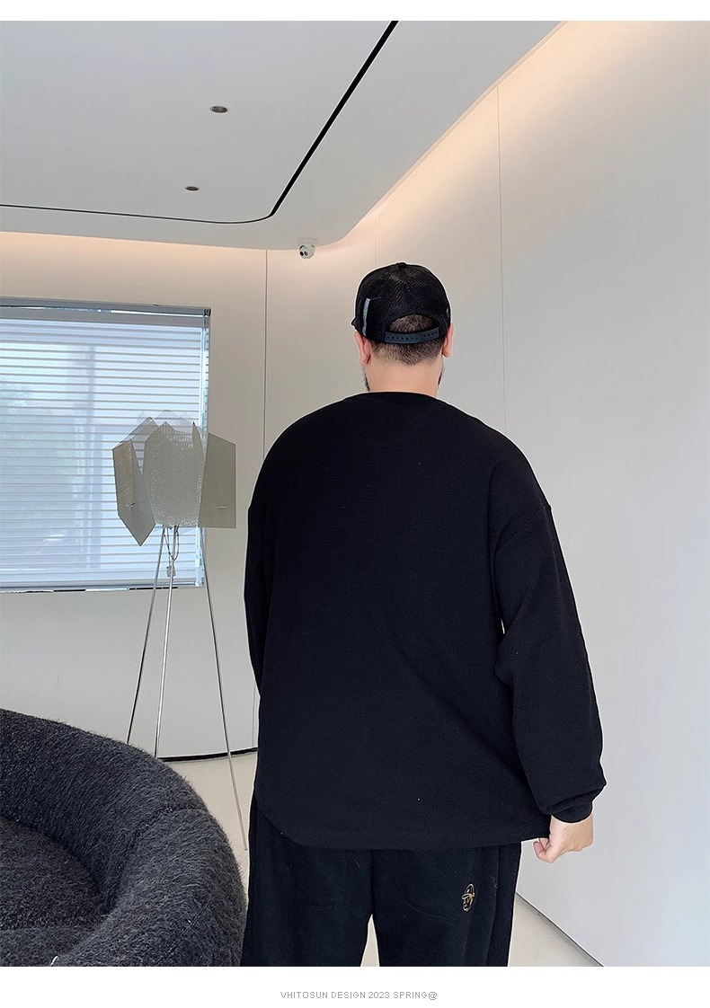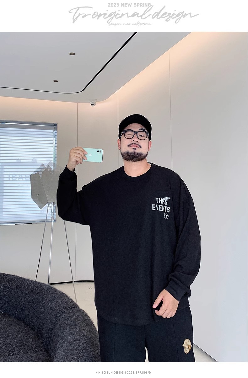 뚱뚱한 봄과 가을 캐주얼 긴 소매 티셔츠 남자의 2024 새로운 패션 브랜드 느슨한 플러스 사이즈 코튼 크루 넥베이스 셔츠스토어 가기
