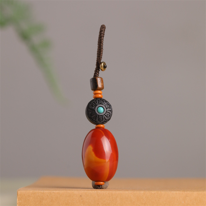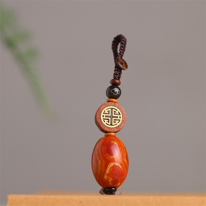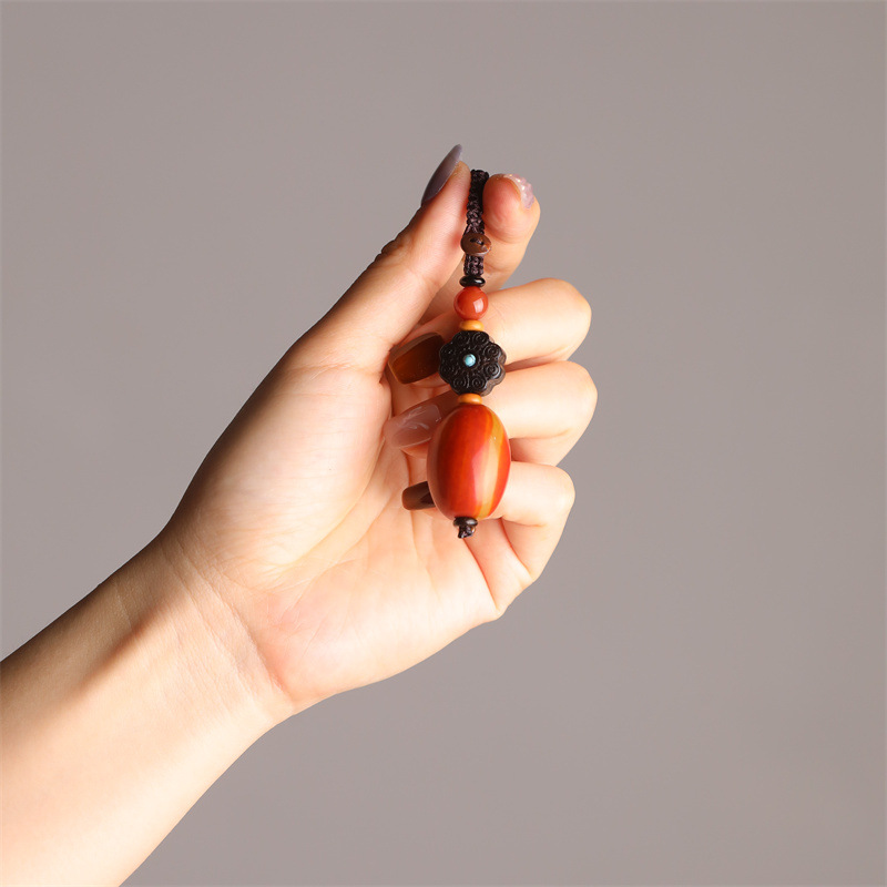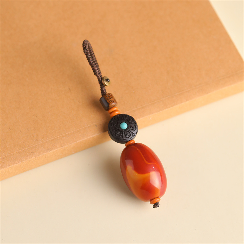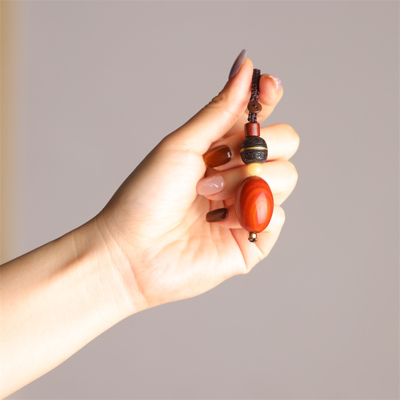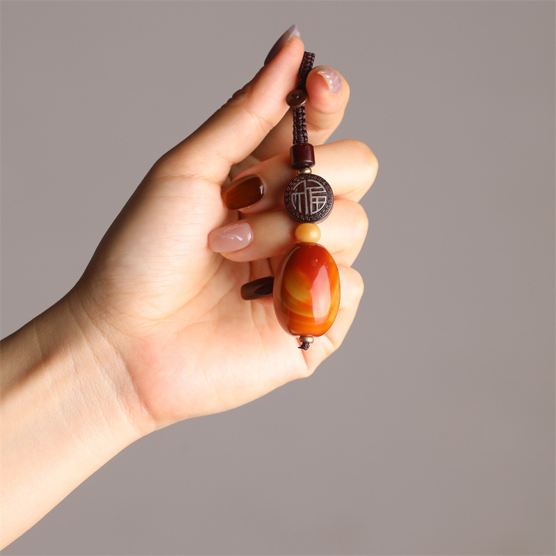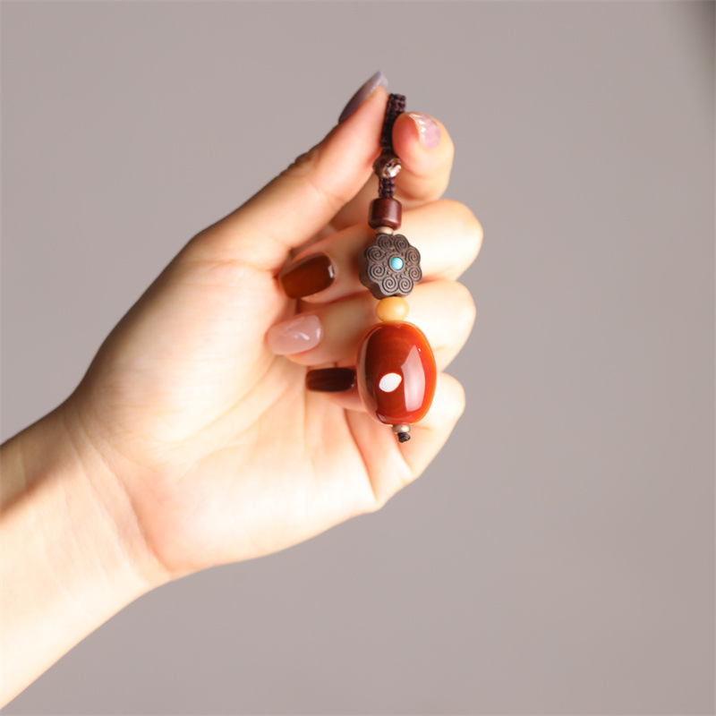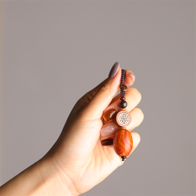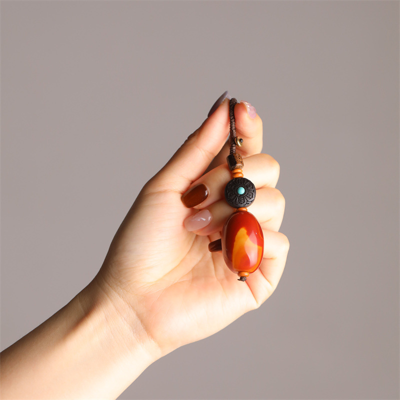 Yun Cang 오리지널 문학과 예술 전국 붉은 마노 자동차 키 체인 펜던트 남성과 여성 커플을위한 하이 엔드 선물 장식품