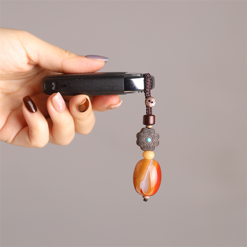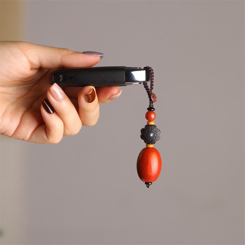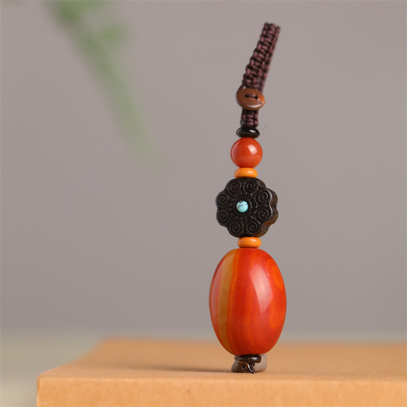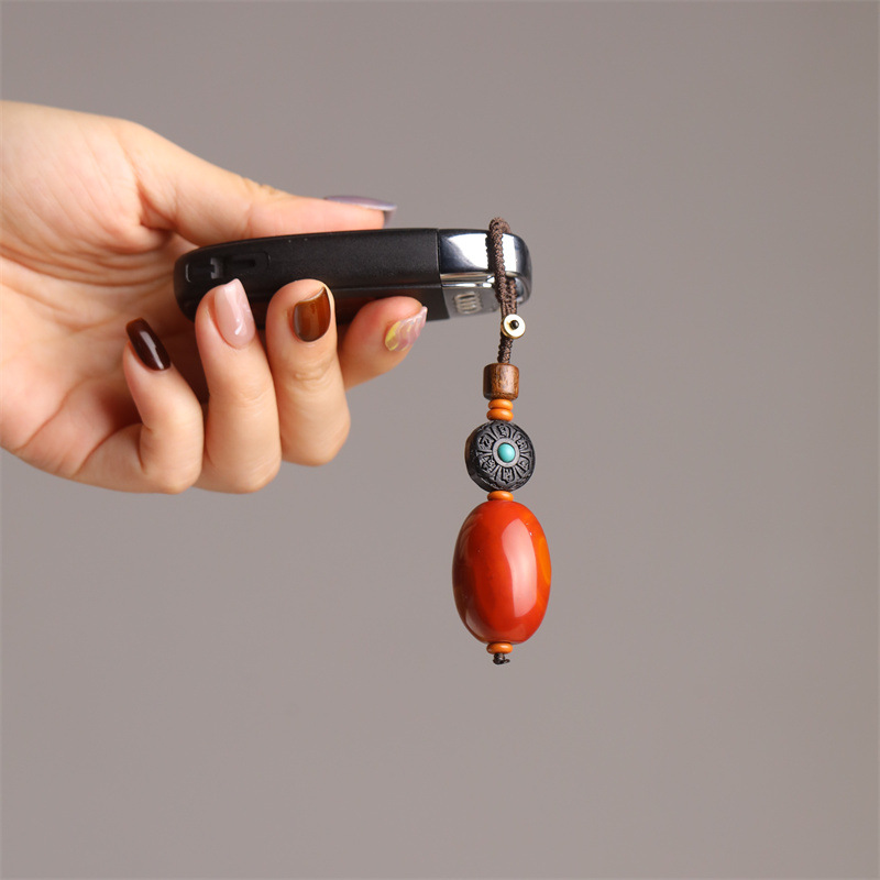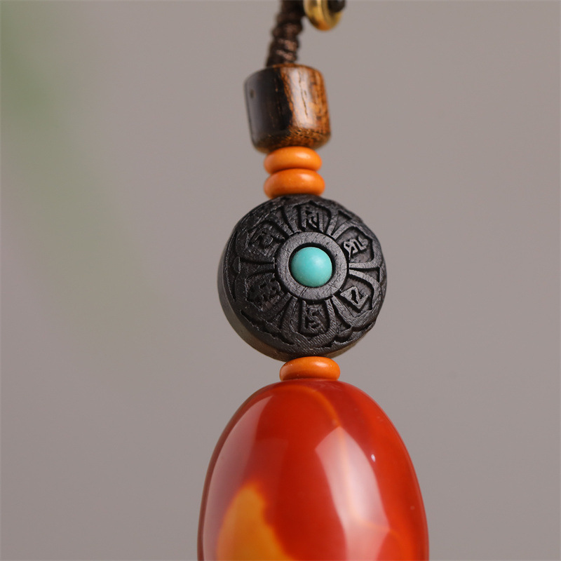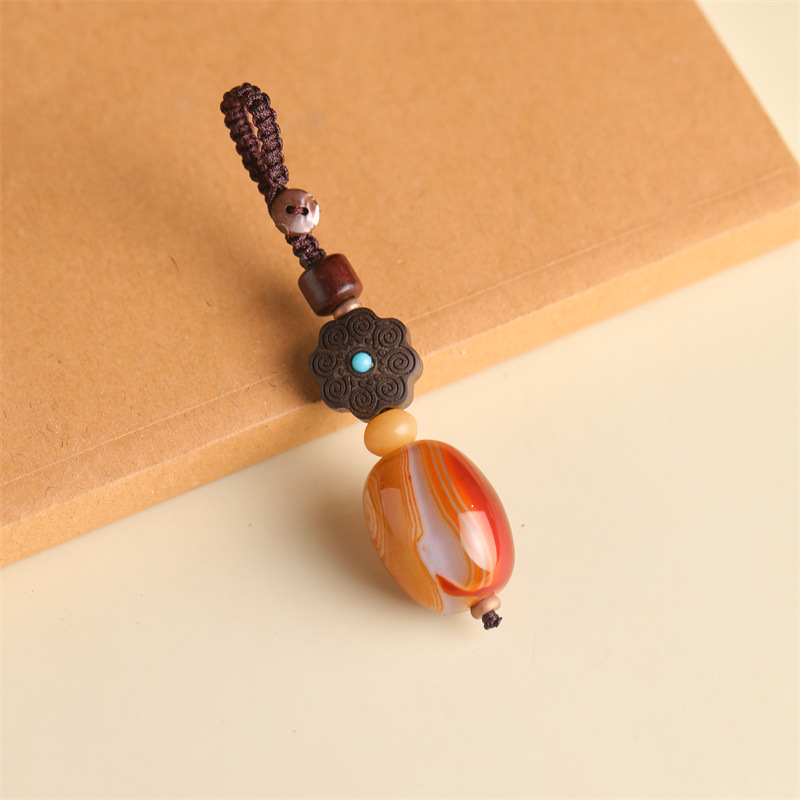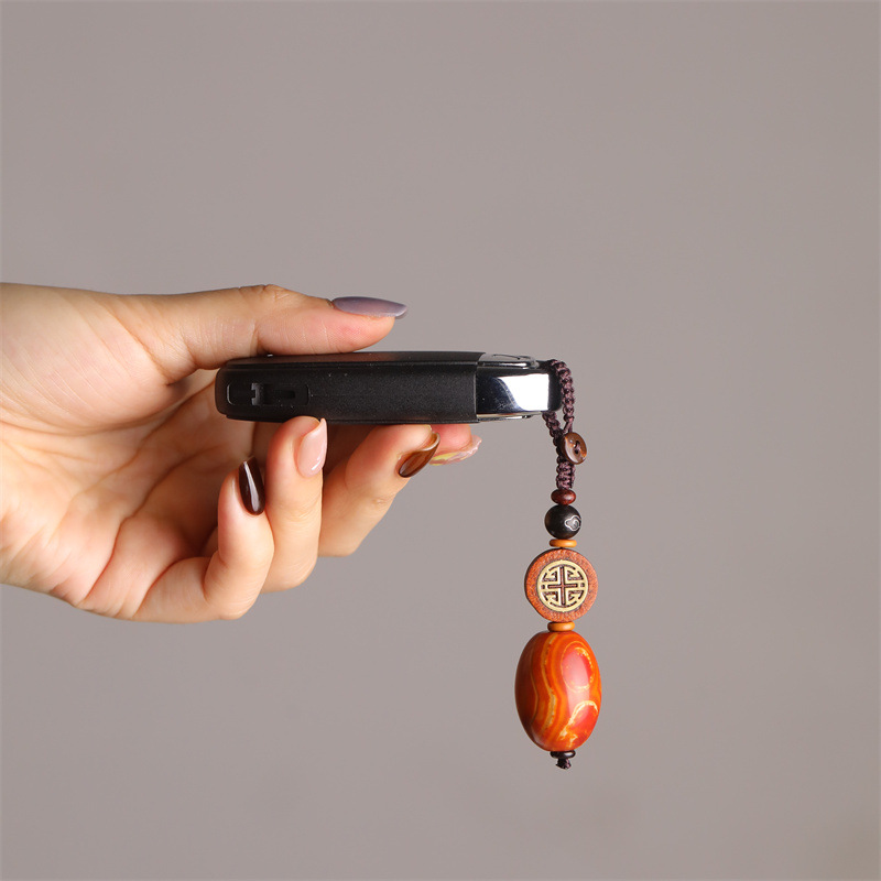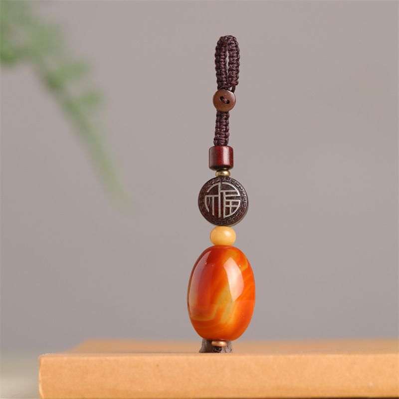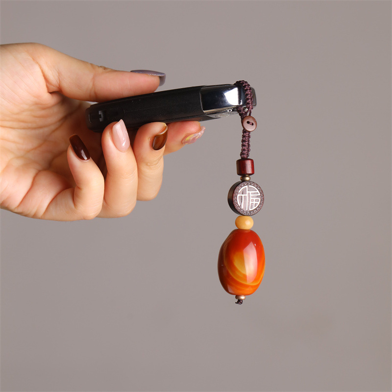 Yun Cang 오리지널 문학과 예술 전국 붉은 마노 자동차 키 체인 펜던트 남성과 여성 커플을위한 하이 엔드 선물 장식품