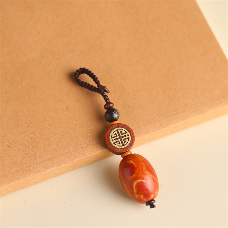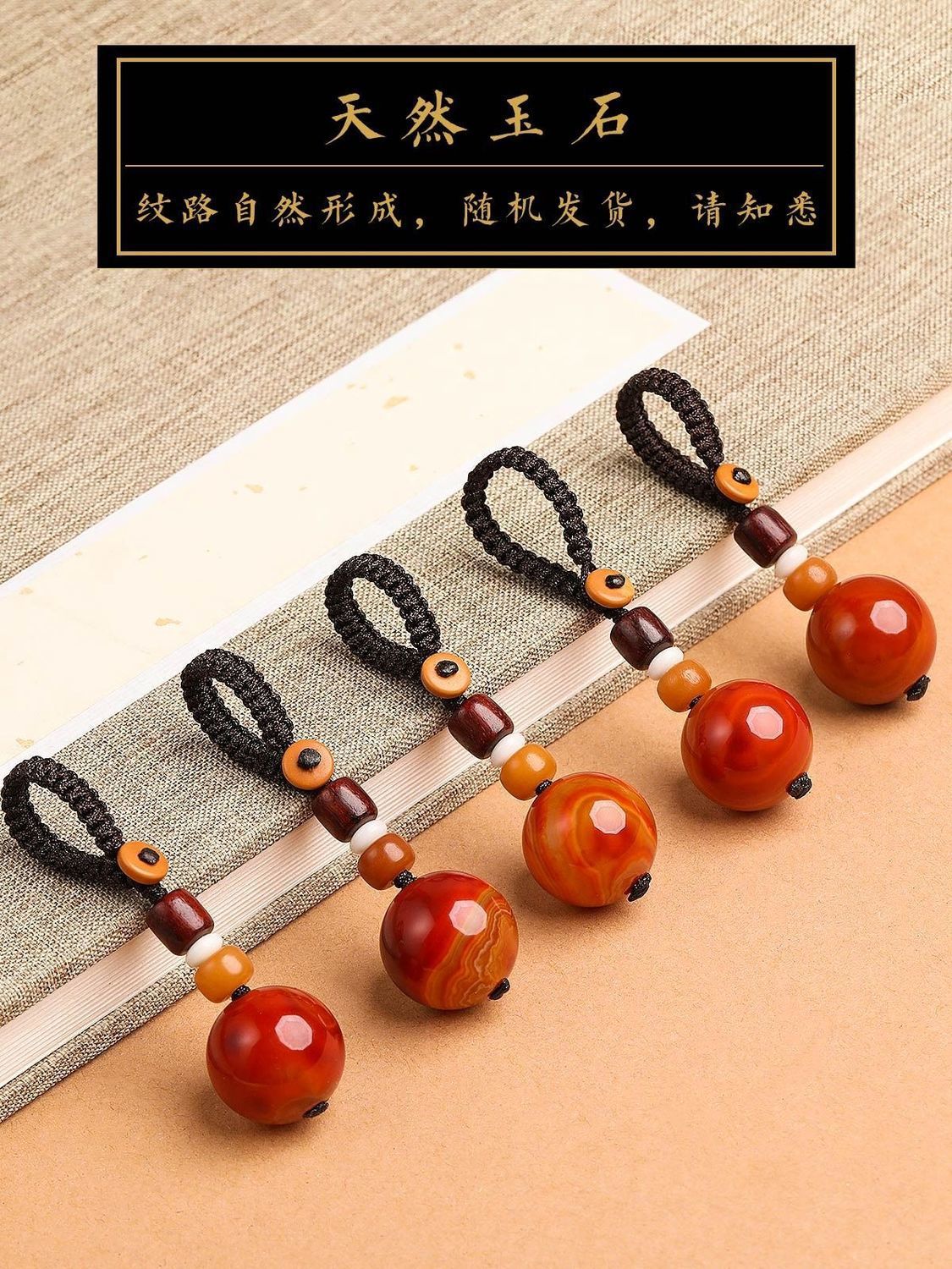 Yun Cang 오리지널 문학과 예술 전국 붉은 마노 자동차 키 체인 펜던트 남성과 여성 커플을위한 하이 엔드 선물 장식품스토어 가기