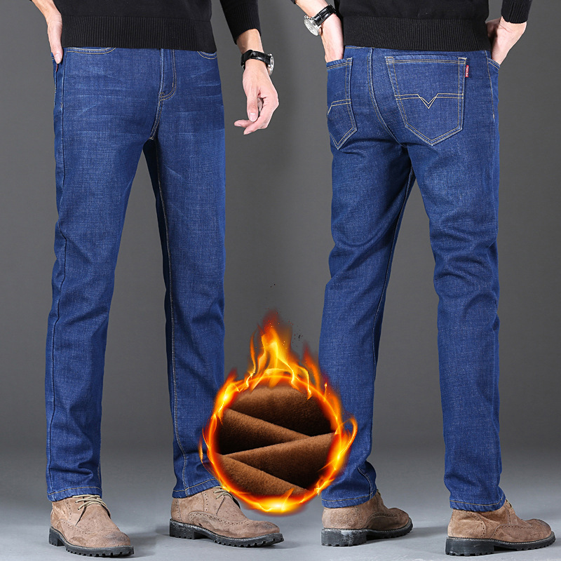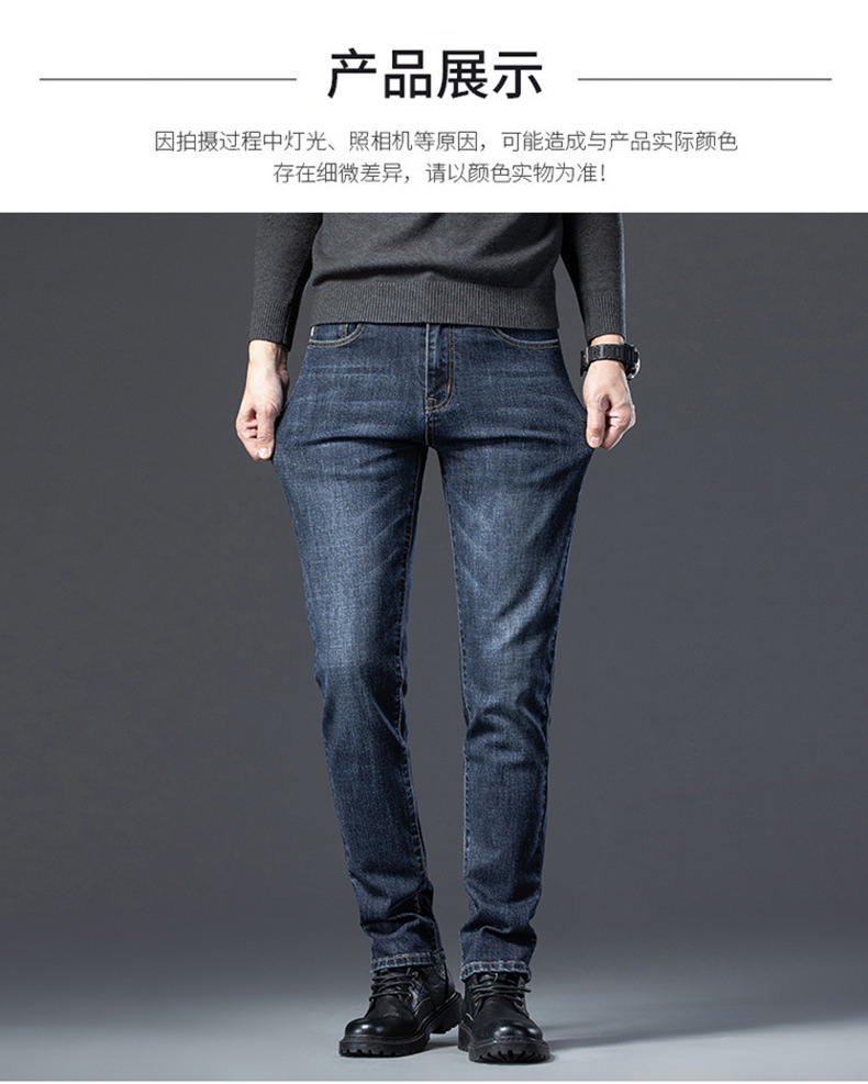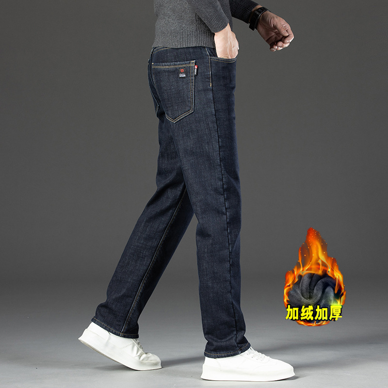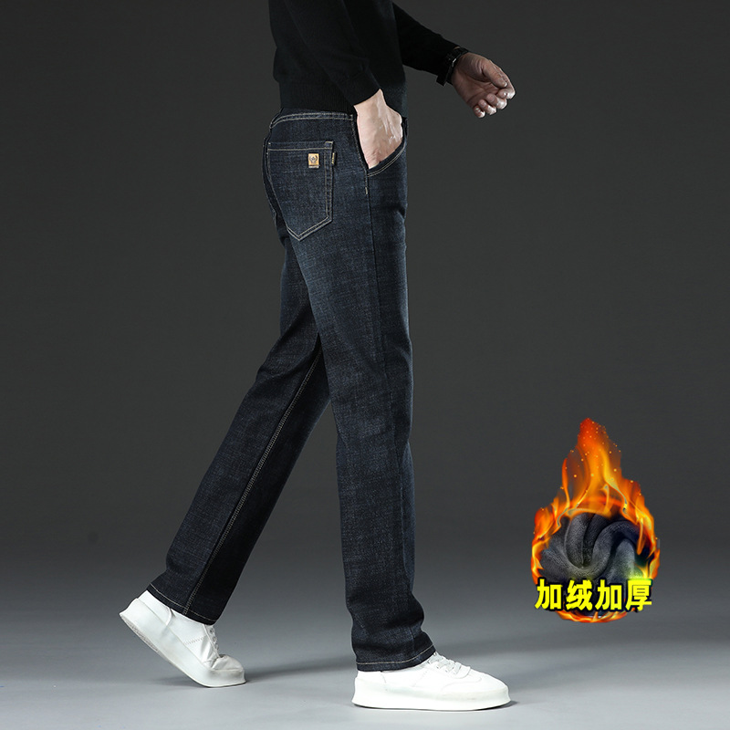 2025 가을 겨울 남성용 데님 바지 비즈니스용 신축성 캐주얼 롱 팬츠 스트레이트 레그 기모 안감 두꺼운 남성 바지 보온 데님스토어 가기