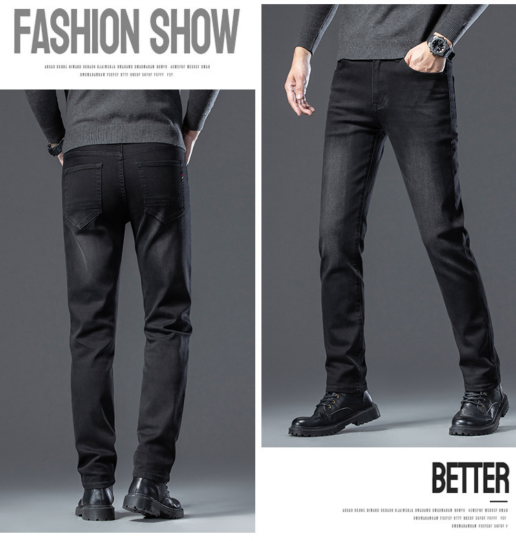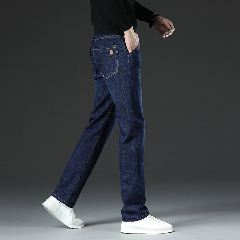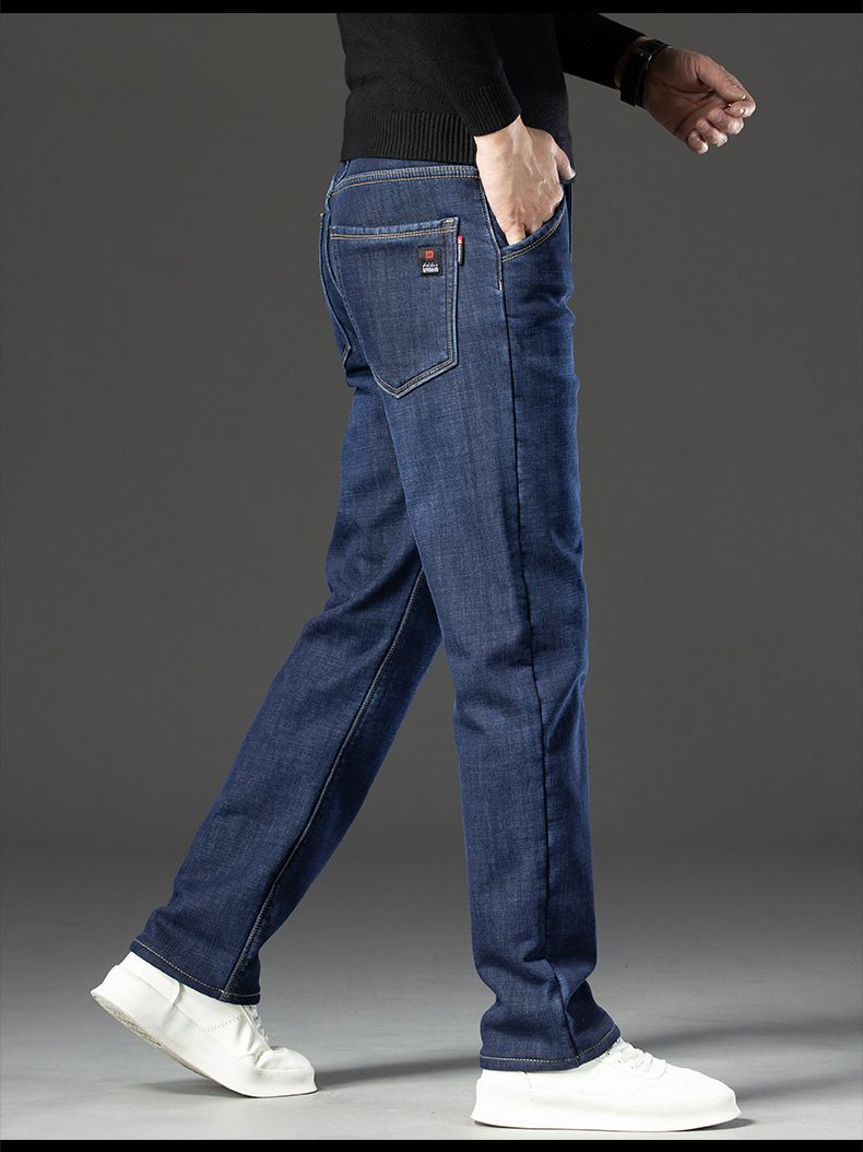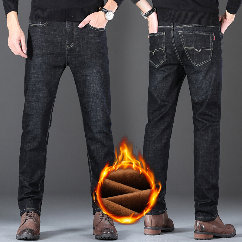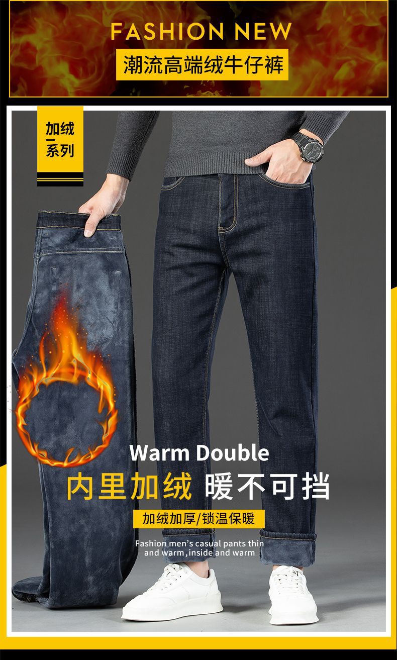 2025 가을 겨울 남성용 데님 바지 비즈니스용 신축성 캐주얼 롱 팬츠 스트레이트 레그 기모 안감 두꺼운 남성 바지 보온 데님스토어 가기