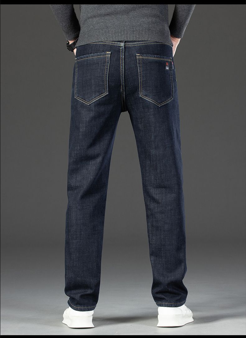 2025 가을 겨울 남성용 데님 바지 비즈니스용 신축성 캐주얼 롱 팬츠 스트레이트 레그 기모 안감 두꺼운 남성 바지 보온 데님