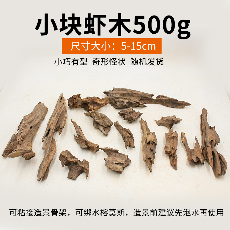 • 작은 새우 나무 조각 500g, 무작위 모양, 모스수 반얀 식물과 묶을 수 있음
