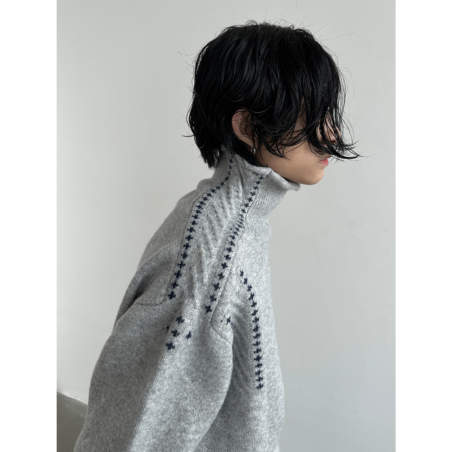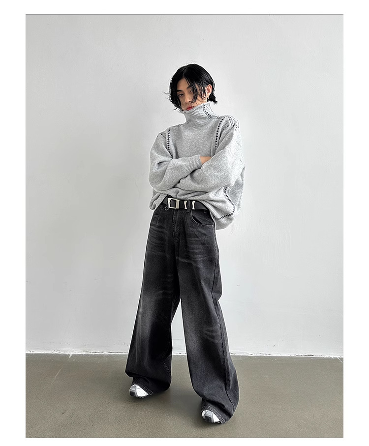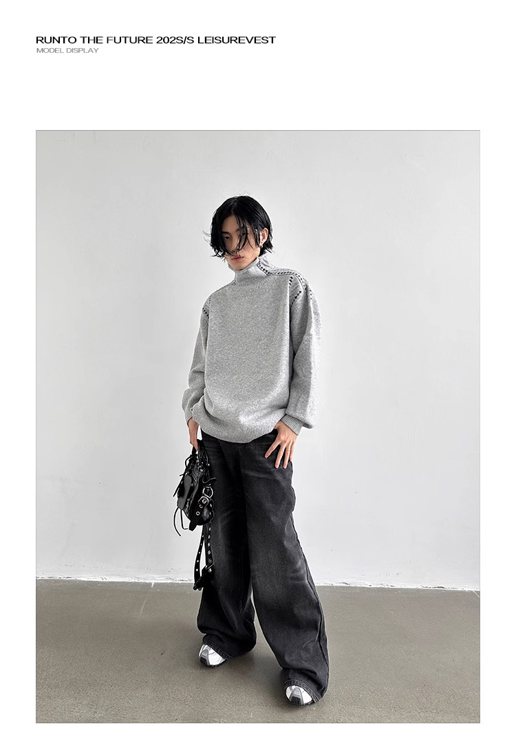 하이 엔드 동시 컬러 장식 높은 목 긴 소매 스웨터 남성 가을 및 겨울 새로운 틈새 디자인 스웨터베이스 셔츠 탑스토어 가기