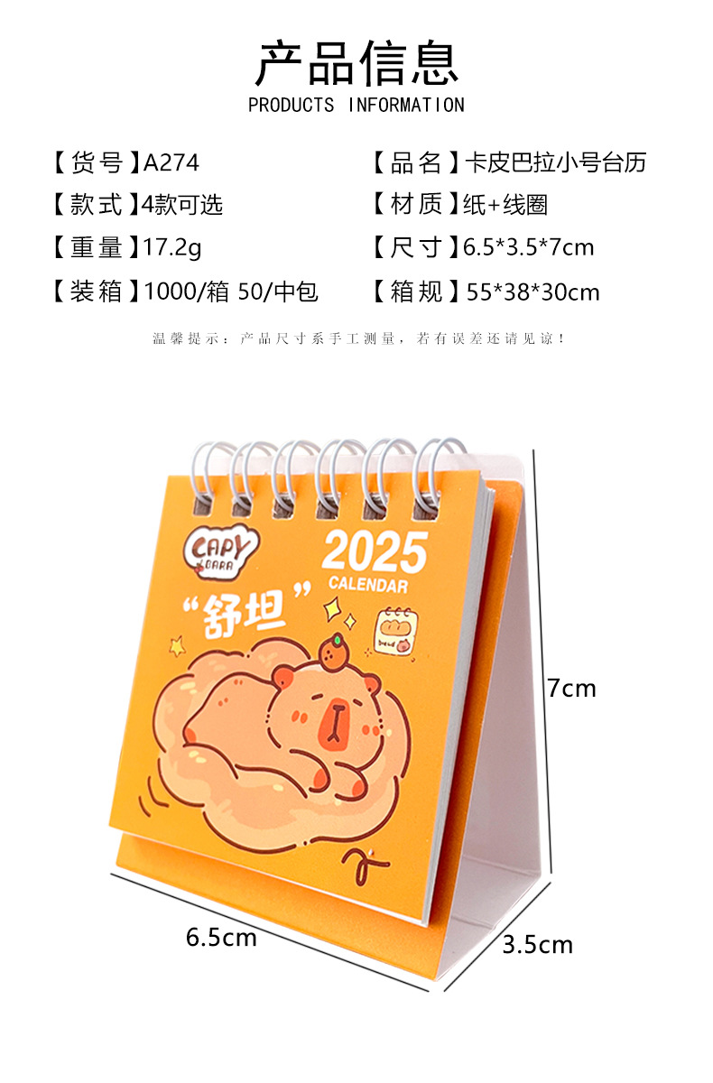 2025 달력 작은 책상 달력 카피 발라 미니 음력 책상 달력 데스크탑 장식 학생 일일 계획