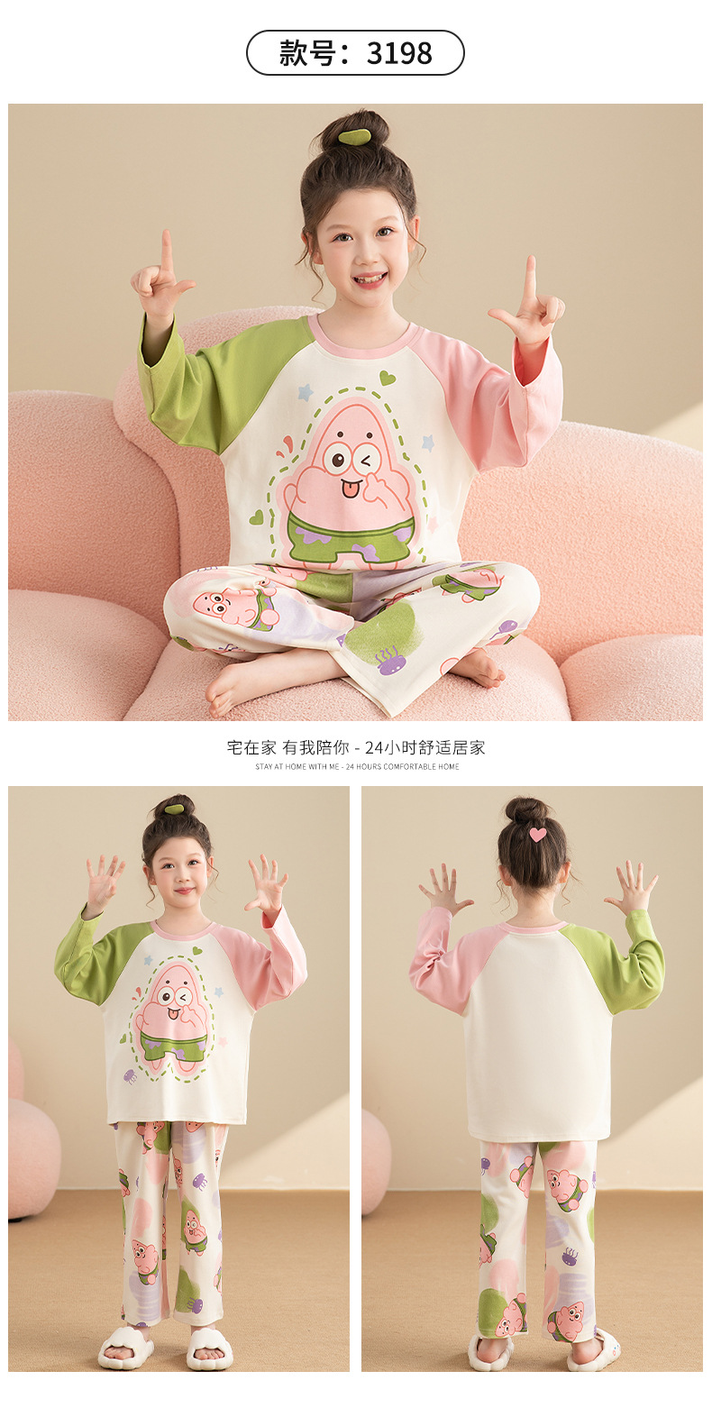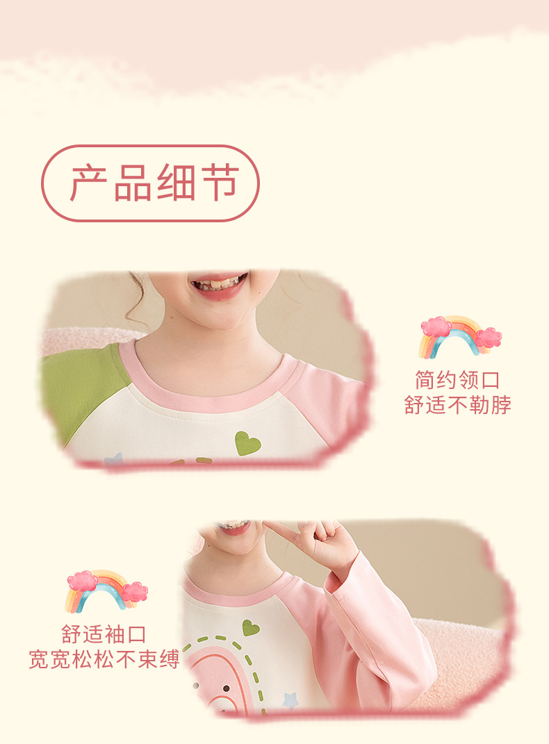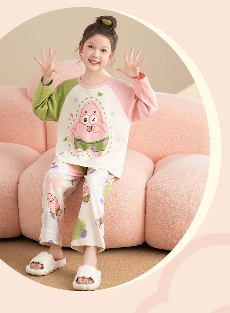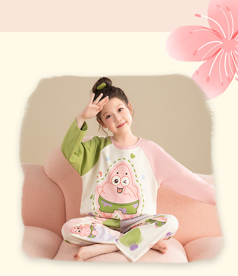 면 어린이 잠옷 봄과 가을 귀여운 만화 느슨한 캐주얼 소녀 2024 새로운 둥근 목 긴 소매 세트스토어 가기