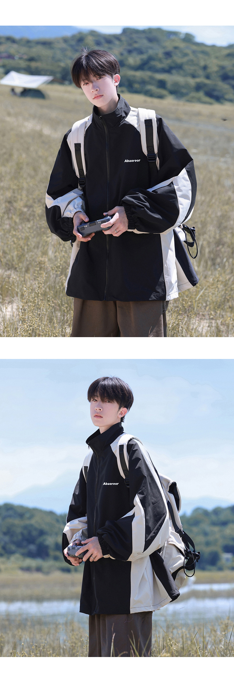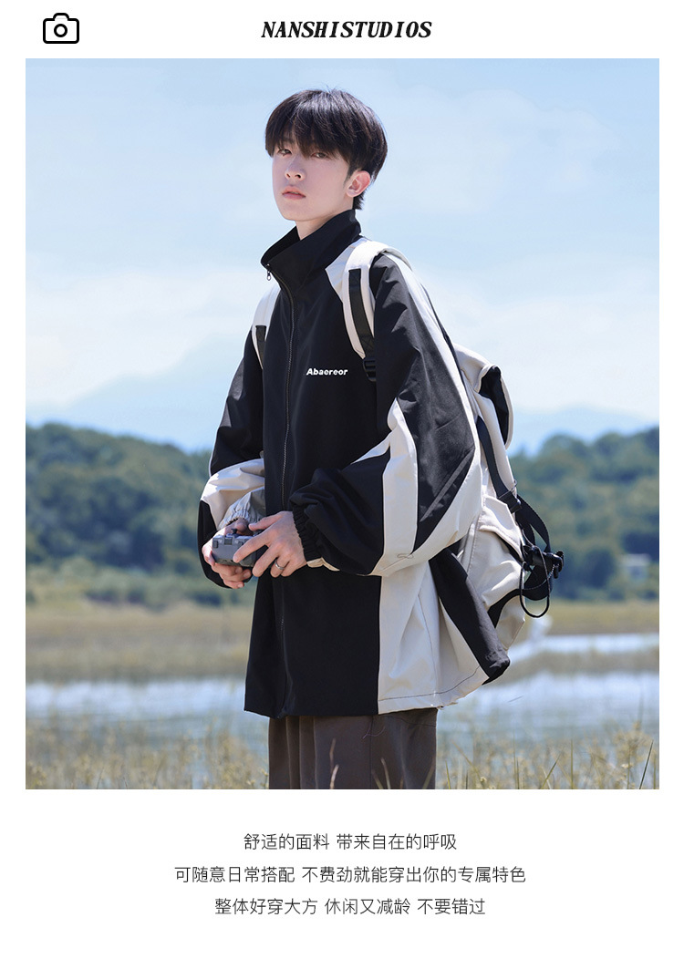 남성 봄과 가을 미국 스타일 야외 대비 컬러 스티칭 하이 엔드 패션 브랜드 루즈 캐주얼 재킷스토어 가기