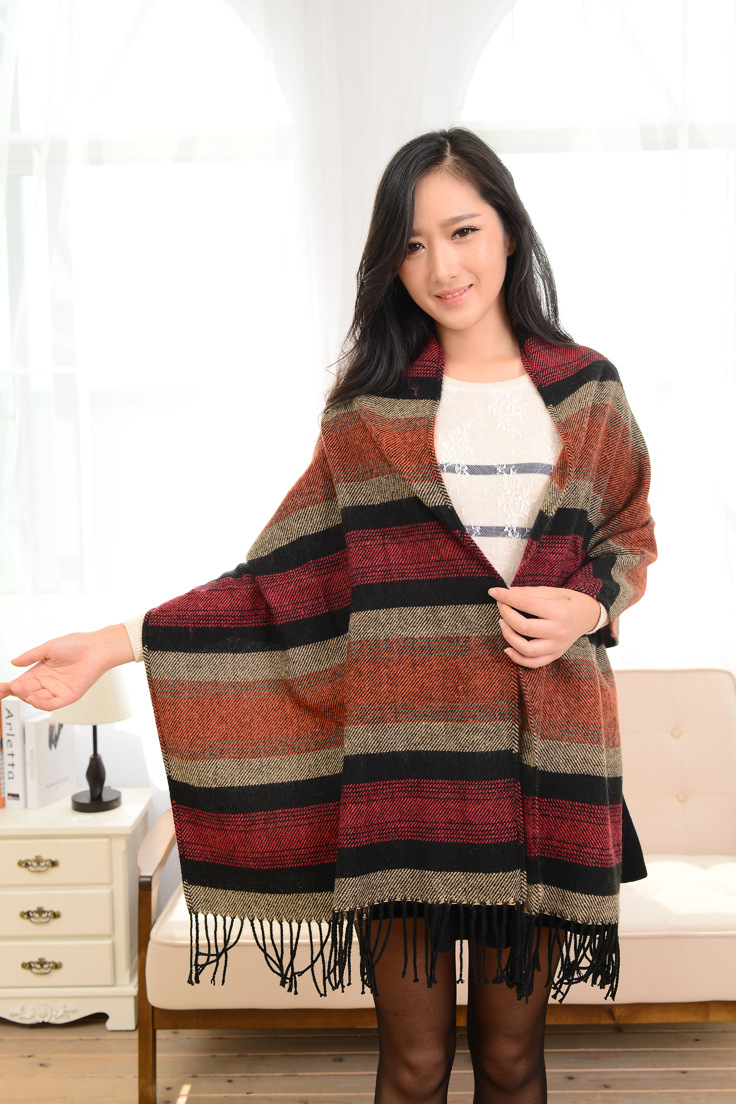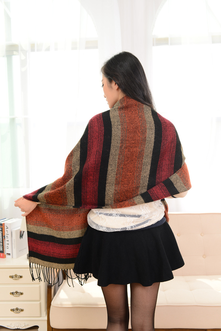 새로운 인터넷 연예인 민족 스타일 줄무늬 대조 색 목도리 여성 분위기 올 매치 스카프 가을과 겨울 따뜻한 스카프 국경스토어 가기