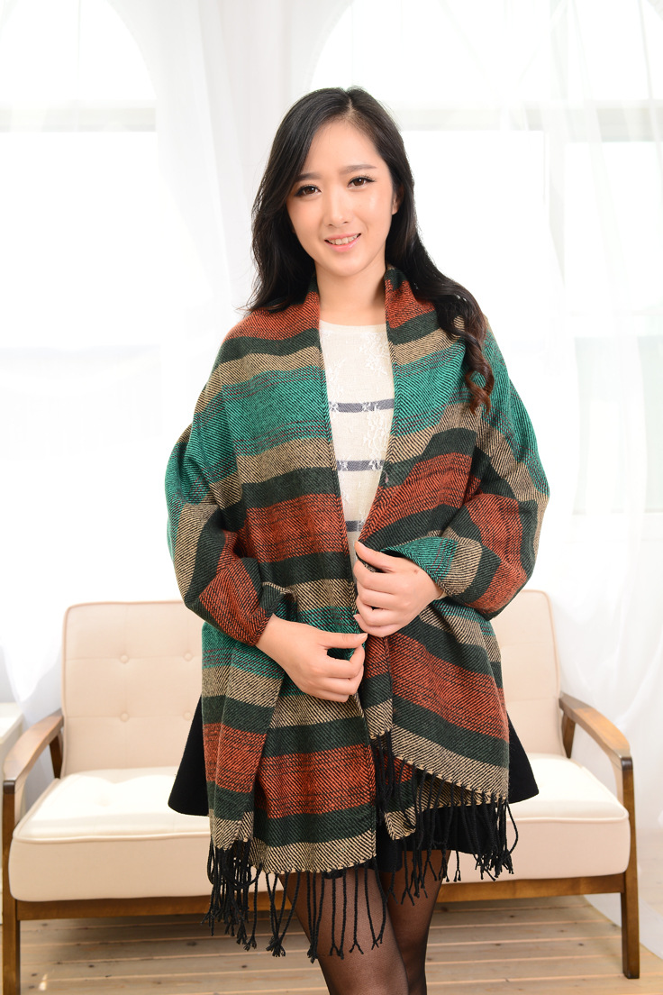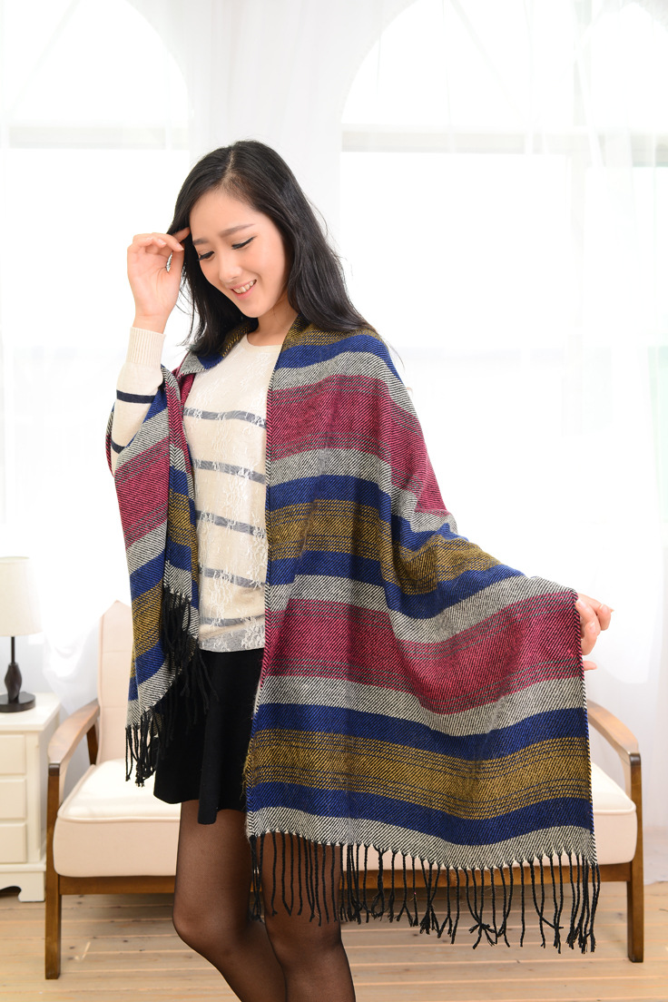 새로운 인터넷 연예인 민족 스타일 줄무늬 대조 색 목도리 여성 분위기 올 매치 스카프 가을과 겨울 따뜻한 스카프 국경