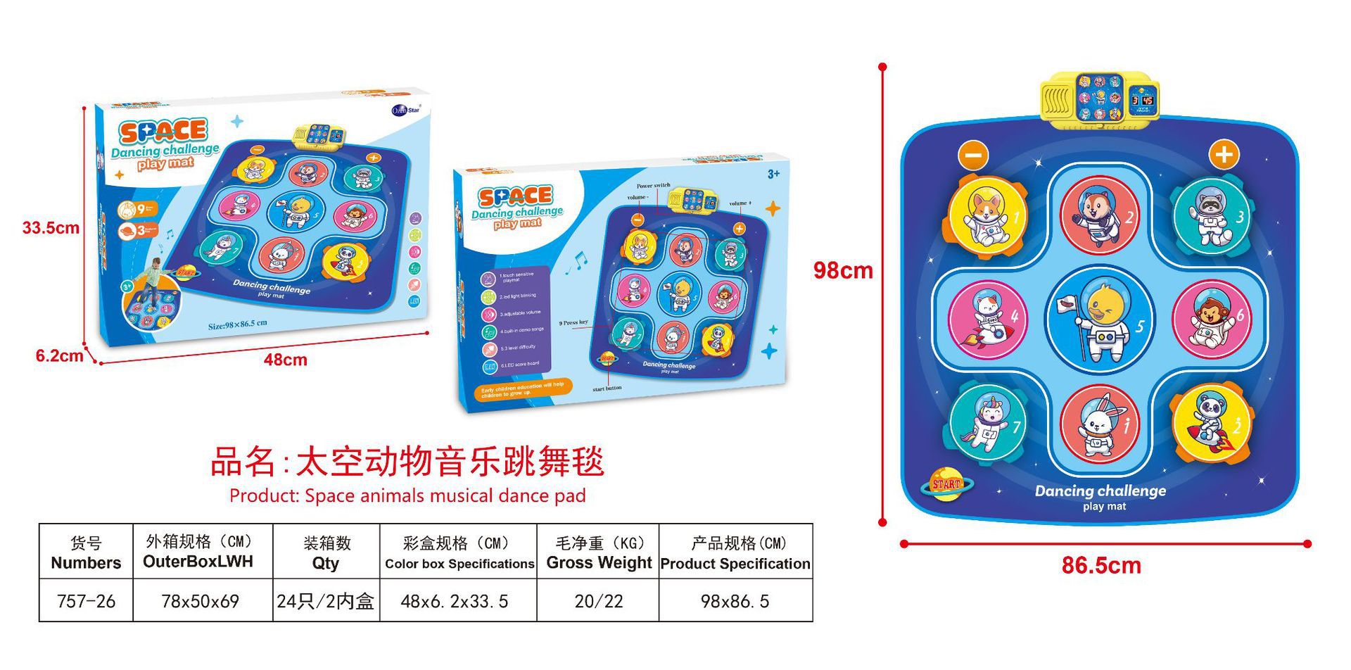 • 우주동물 뮤지컬 댄스매트 (757-26)