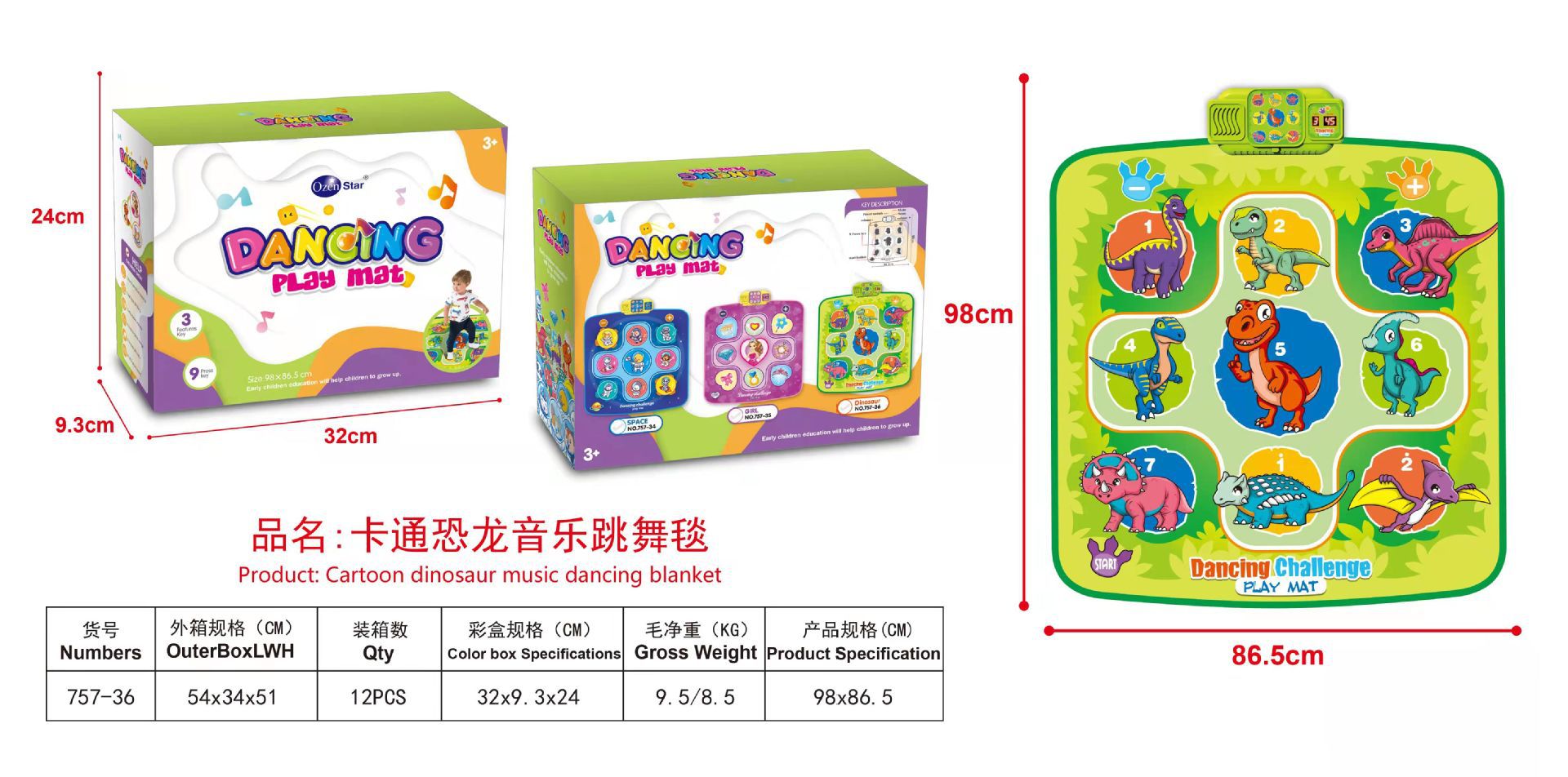 • 만화 공룡 음악 댄스 매트 (757-24)