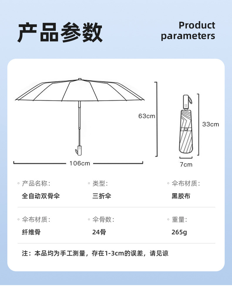 24-뼈 가득 차있는 자동적인 우산 큰 접히는 검은 고무 맑고 비 이중 사용 학생 태양 우산 선 스크린 UV 보호 우산