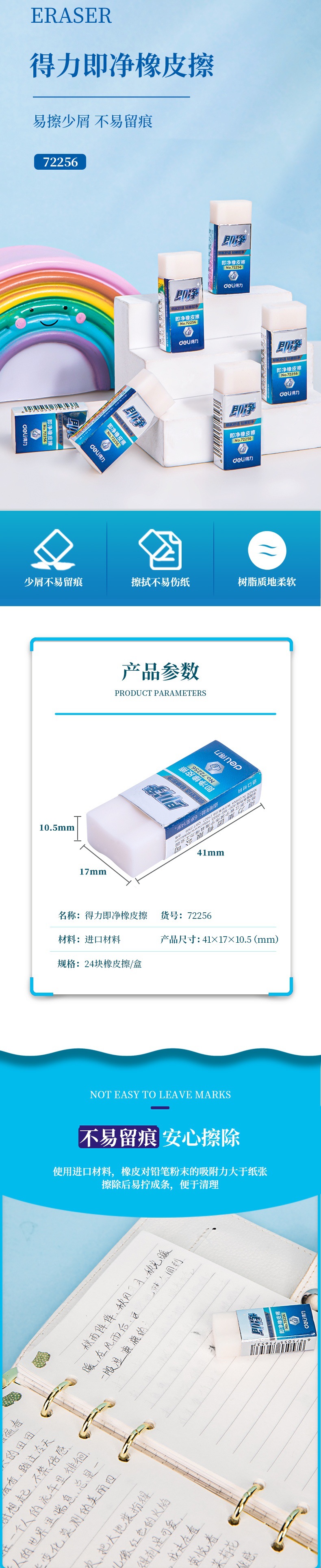 델리 72256 스몰 사이즈 지우개 깨끗한 지우개 덜 스크랩 깨끗한 학생 고무 문구 도매