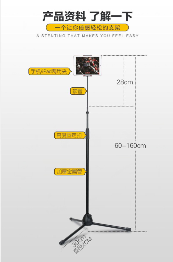 휴대용 침대 옆 스마트폰 거치대, 접이식 삼각대, 드라마 시청 및 라이브 방송용, 태블릿 호환, 드라마 시청 필수품