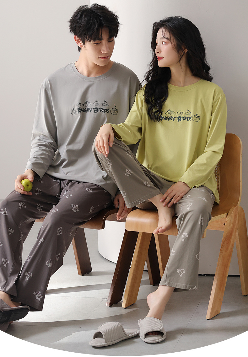 이슈 베이 순면 커플 홈 의류 가을 새 여성 긴 소매 라이크라 면 파자마 남성 가을과 겨울 플러스 사이즈 세트스토어 가기