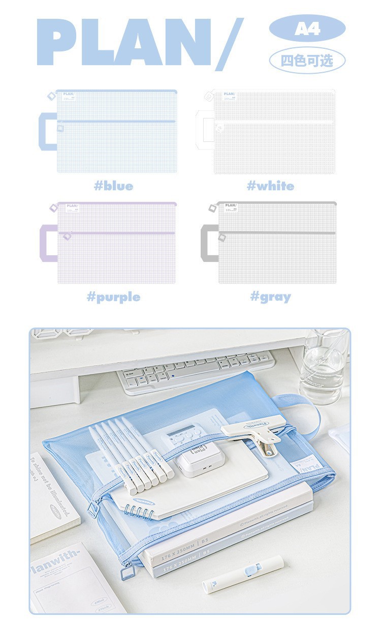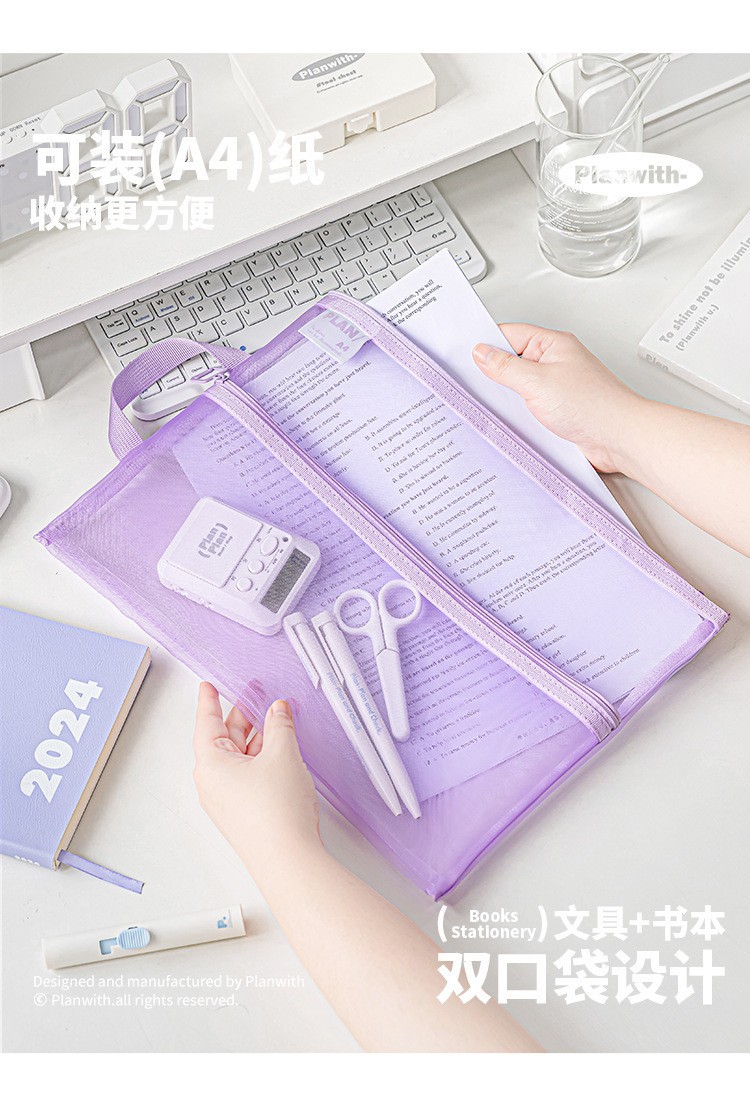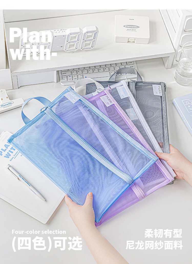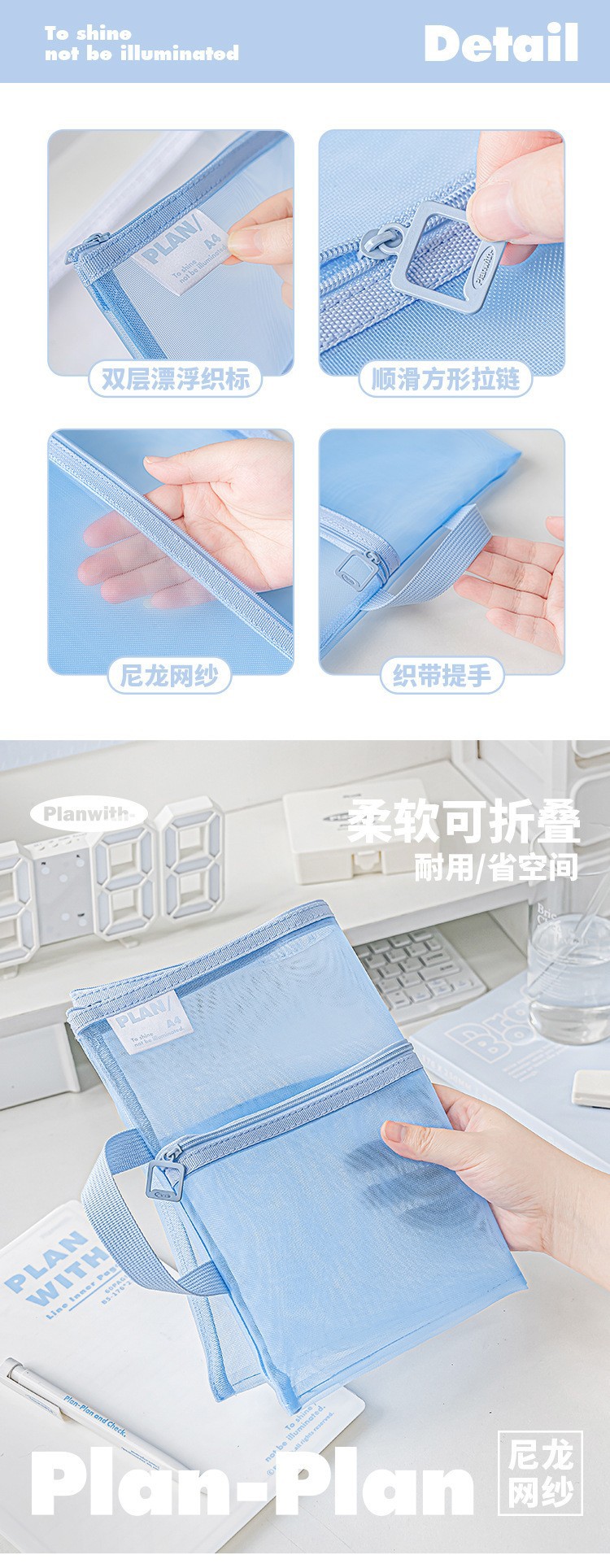 Planwith 원사 메쉬 파일 가방 A4 테스트 종이 저장 대용량 소프트 접이식 나일론 파일 가방스토어 가기