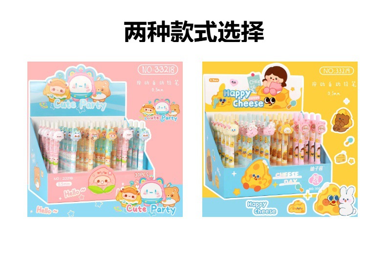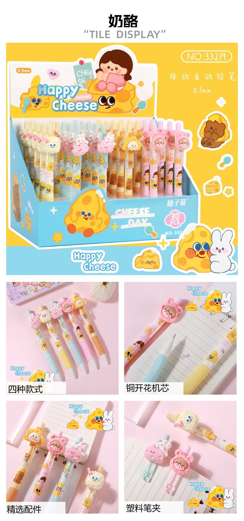 플라스틱 도매 식품 모양 치즈 만화 학생용 구리심 자동 연필 0.5mm 귀엽고 재미있는 지울 수 있는 연필스토어 가기