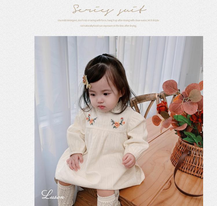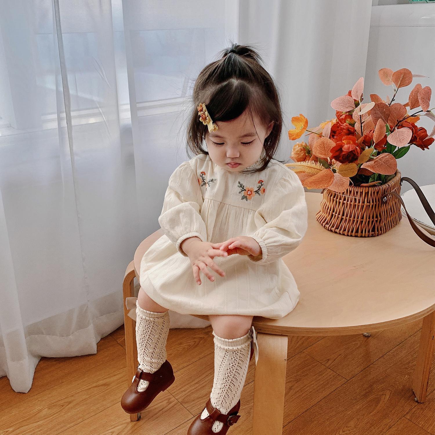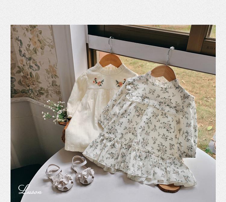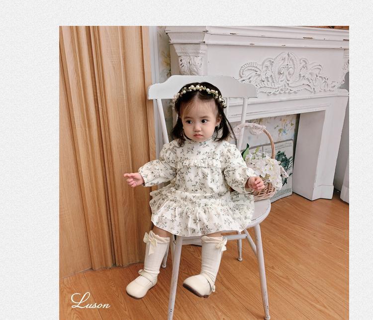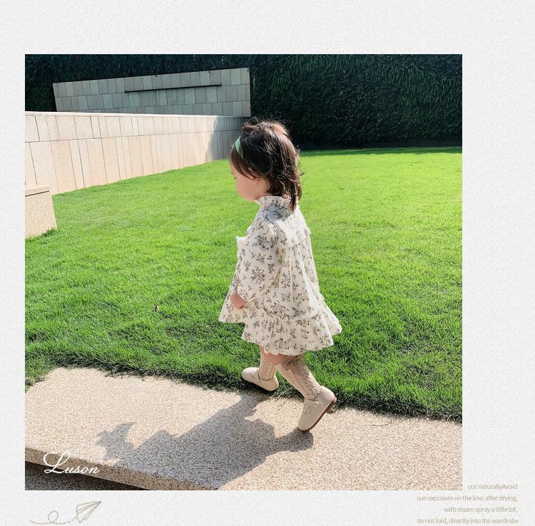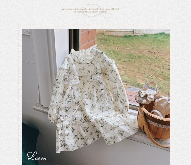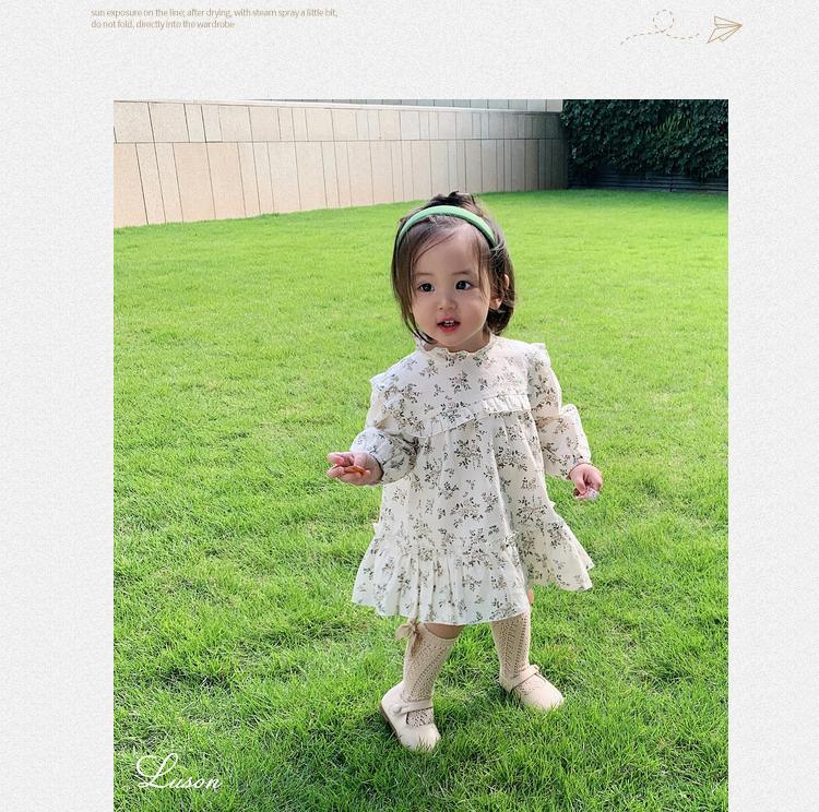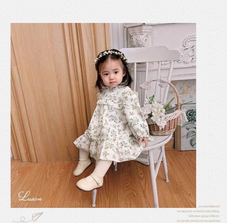 소녀들의 가을 원피스 모리 스타일 아기 소녀 꽃 긴팔 치마 유아 및 어린 아이들의 봄 중간 길이 스커트스토어 가기