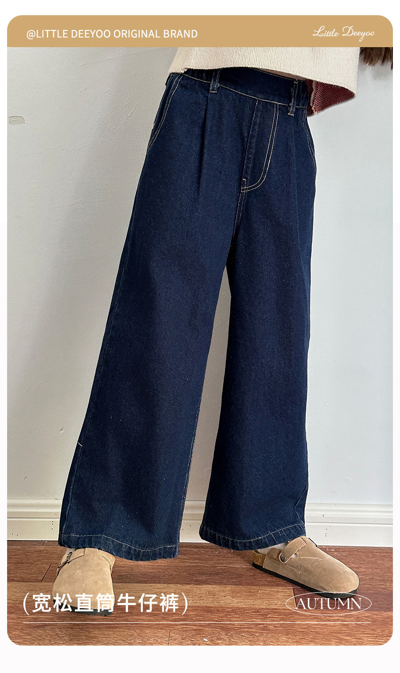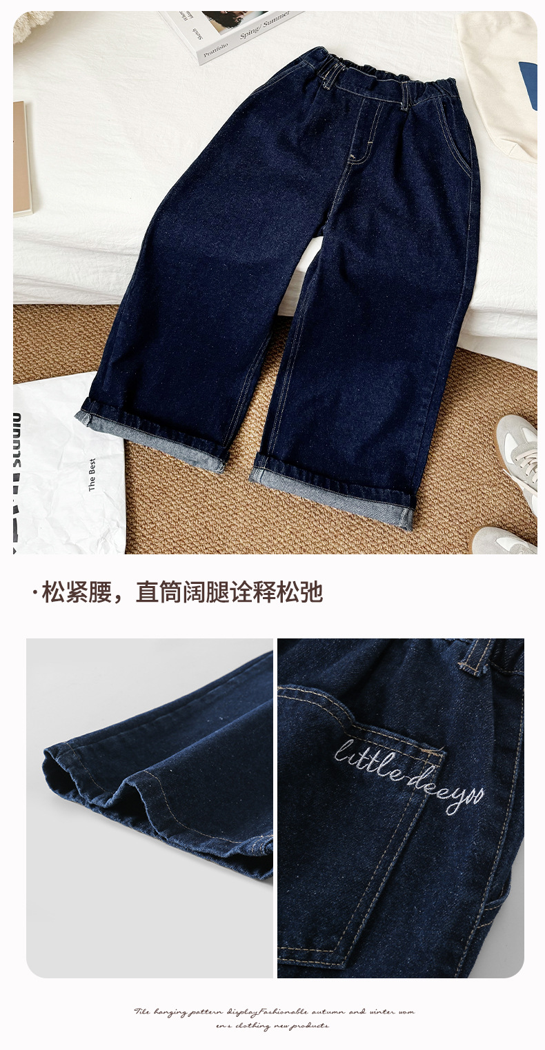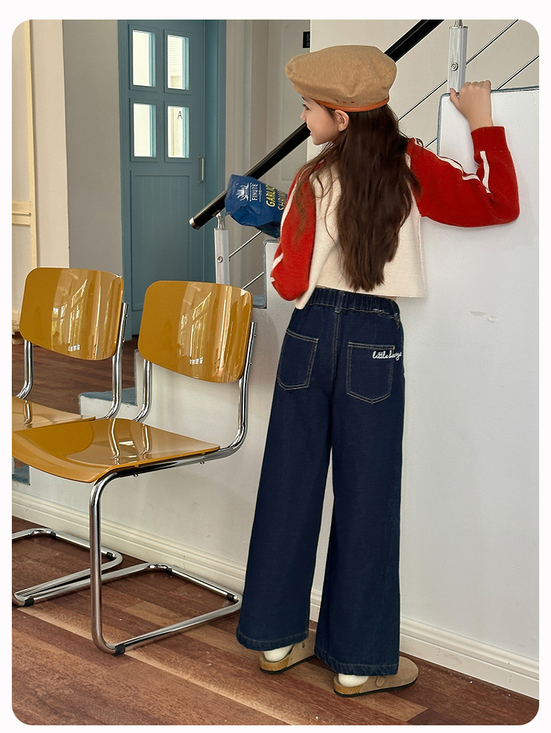 Sangluo 아동복 소녀 청바지 2024 가을 새로운 스타일 중대형 어린이 클래식 느슨한 어린이 올매치 와이드 다리 바지스토어 가기