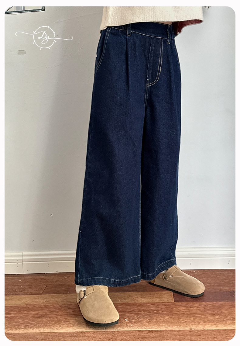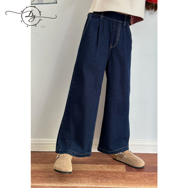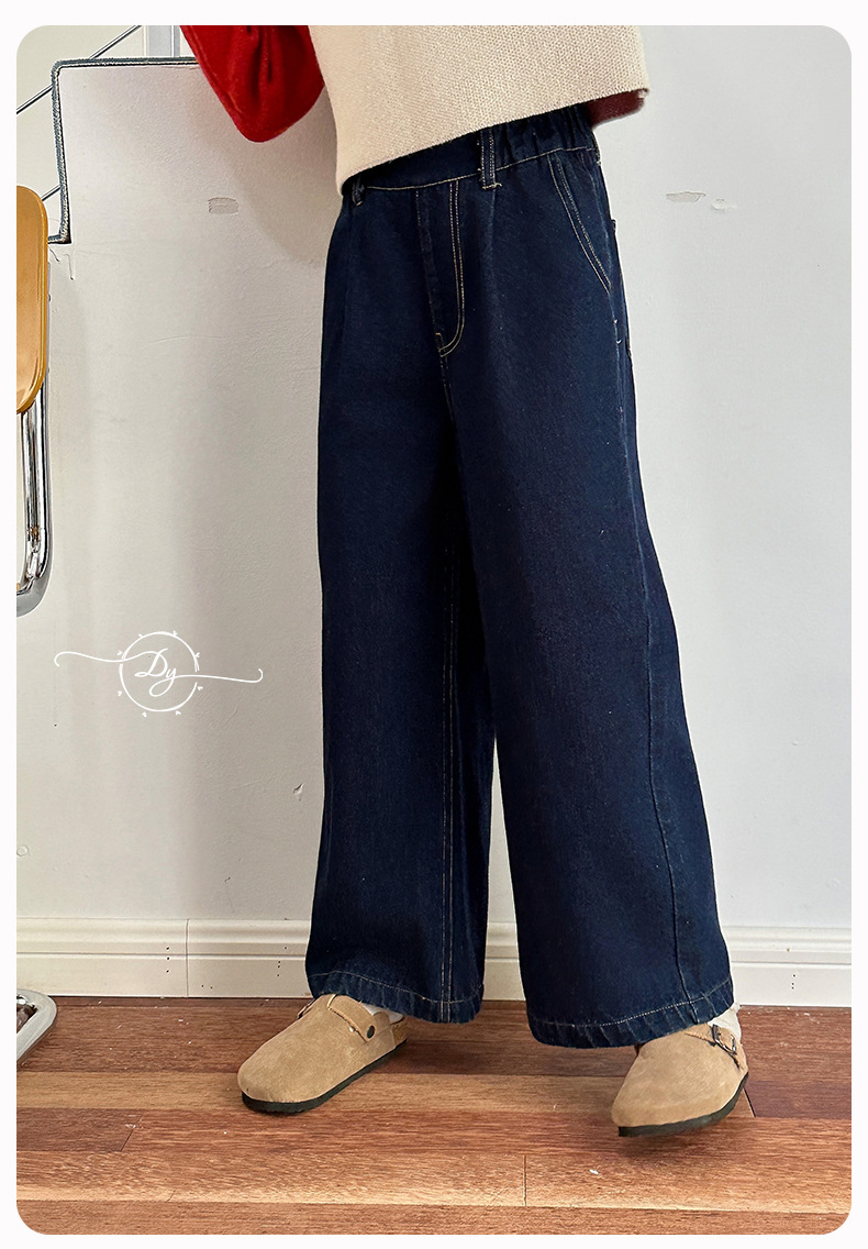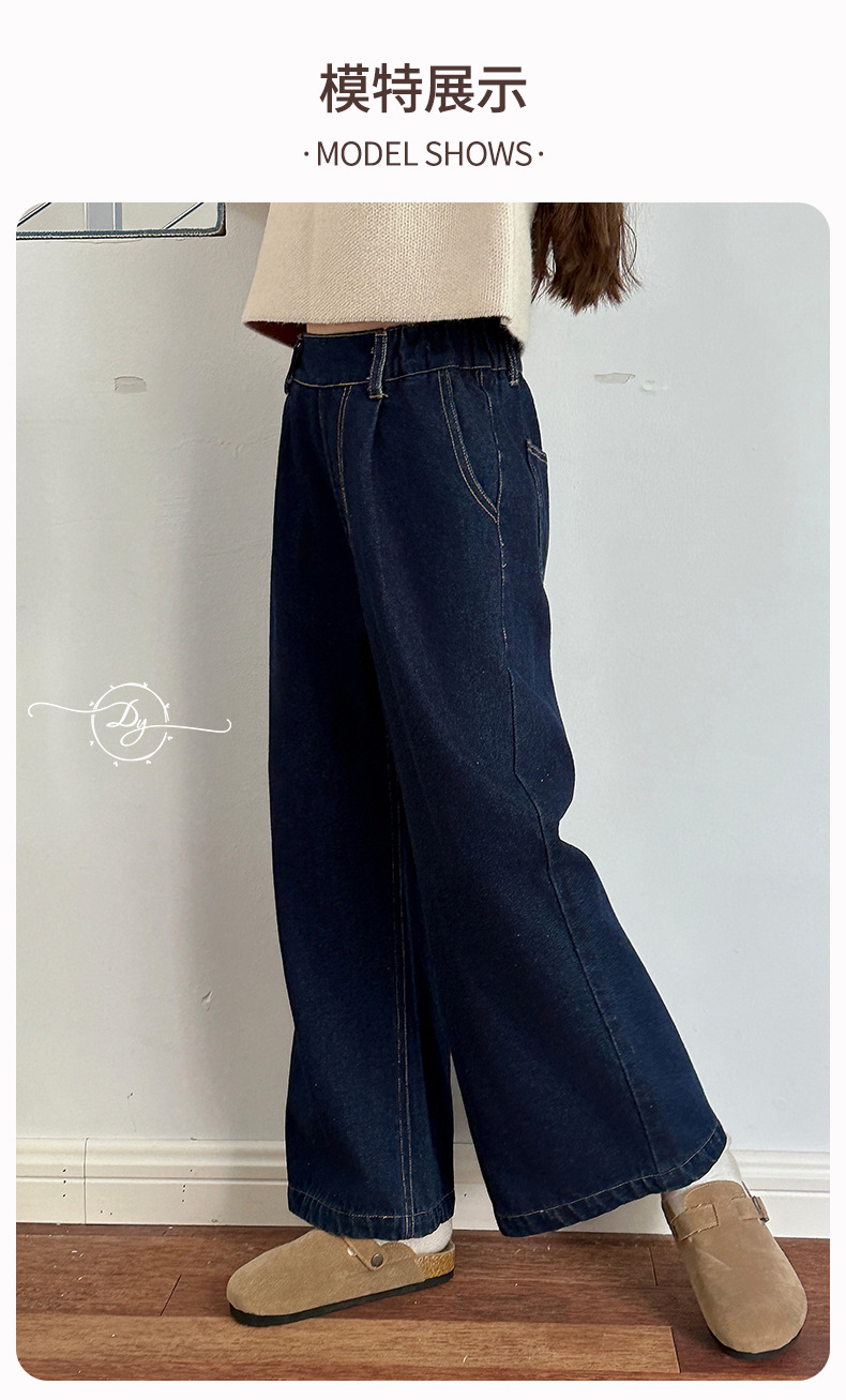 Sangluo 아동복 소녀 청바지 2024 가을 새로운 스타일 중대형 어린이 클래식 느슨한 어린이 올매치 와이드 다리 바지스토어 가기