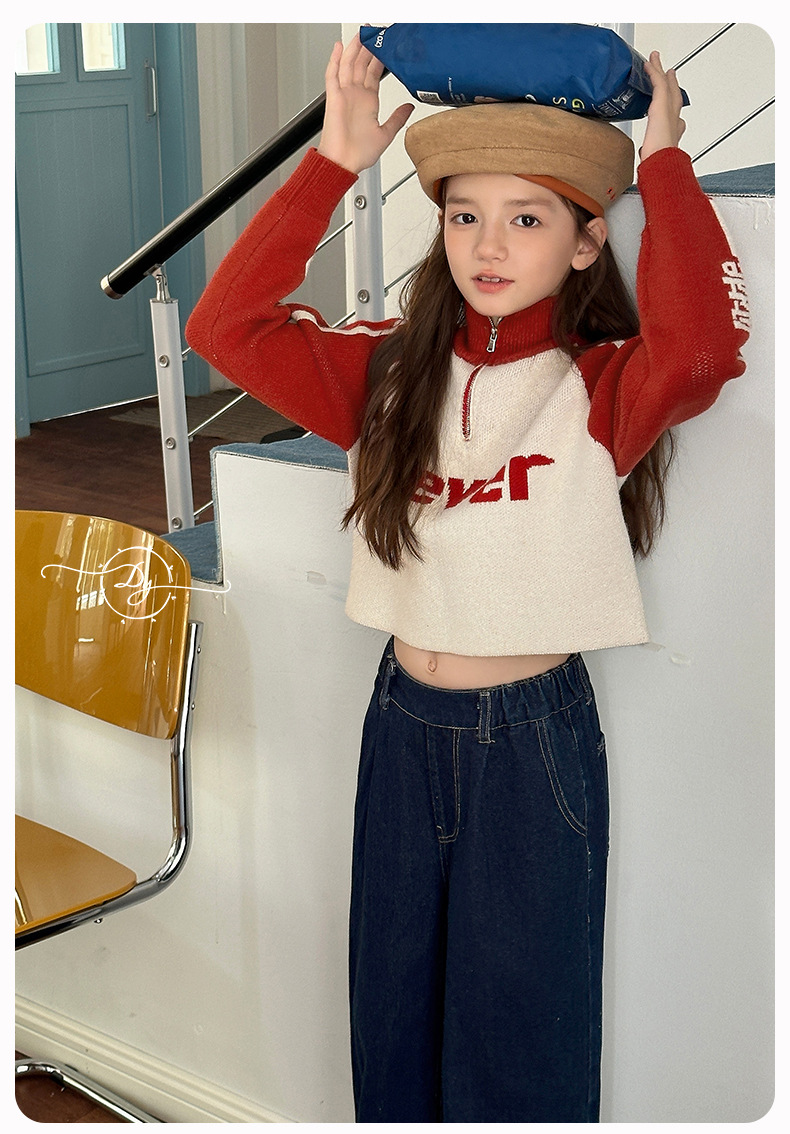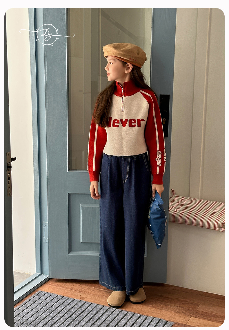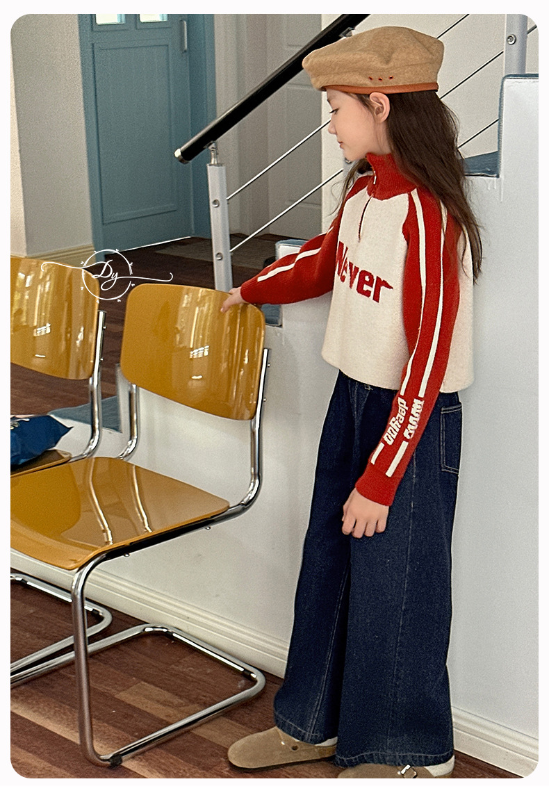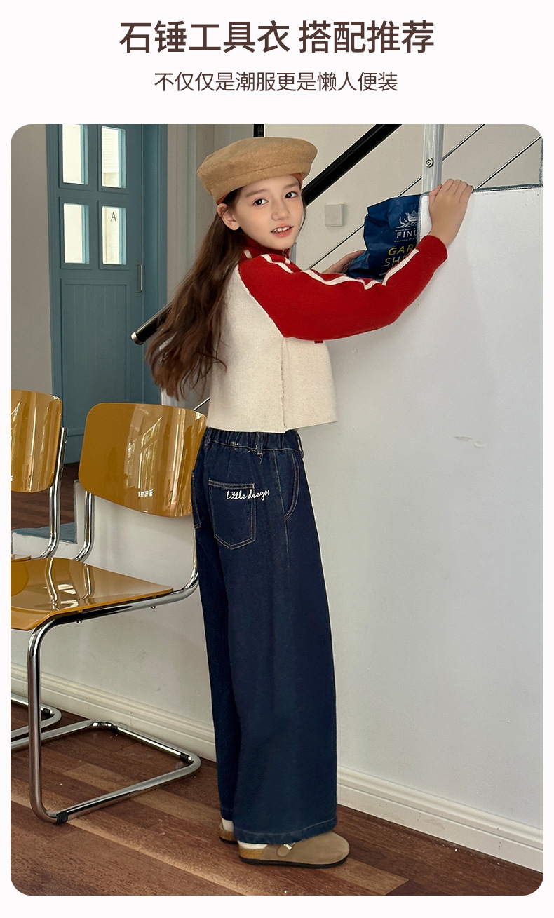 Sangluo 아동복 소녀 청바지 2024 가을 새로운 스타일 중대형 어린이 클래식 느슨한 어린이 올매치 와이드 다리 바지