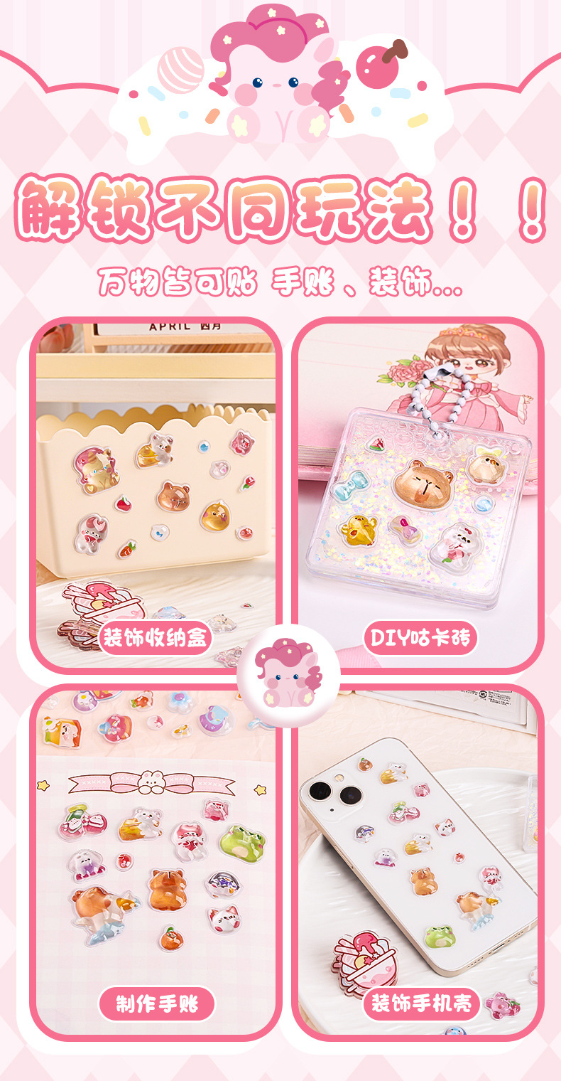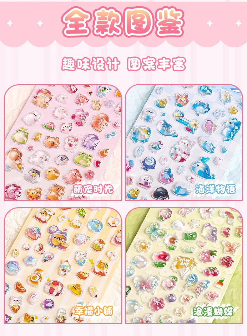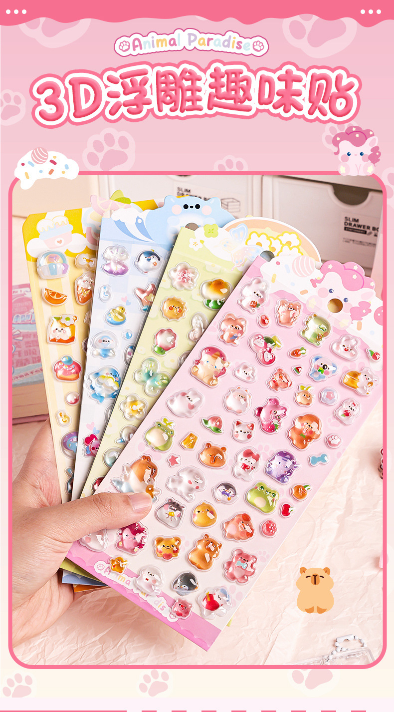 3D 입체 구호 스티커 어린이 재미 장식 스티커 방수 투명 만화 크리스탈 스티커 diy 페이스트 소재스토어 가기